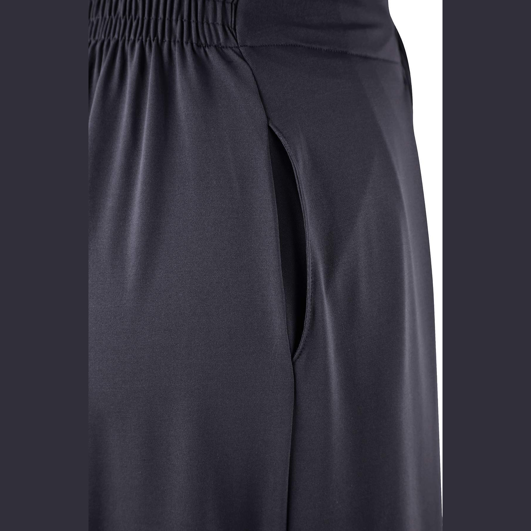 بنطال رياضي نسائي بلون رمادي فحمي (أنثراسيت)، مصنوع من قماش دالغيت/سكوبا محبوك بنسبة 94% بوليستر و6% إيلاستان، يتميز بقصة مستقيمة مع طيات أمامية، خصر عادي، وخامة مرنة تمنح مظهرًا أنيقًا وثباتًا في القوام. تصميم مثالي للإطلالات اليومية أو الكاجوال بلمسة عصرية محتشمة.