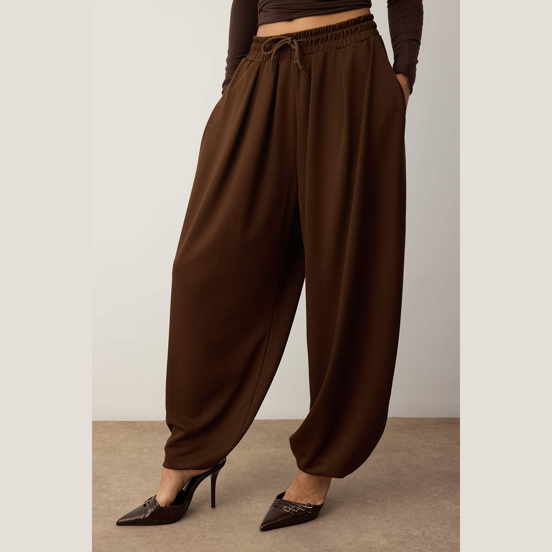بنطال رياضي نسائي – بني بلمسة ناعمة، قصة هافوش وأرجل ضيقة بحواف مطاطية (Soft Touch Harem Fit)