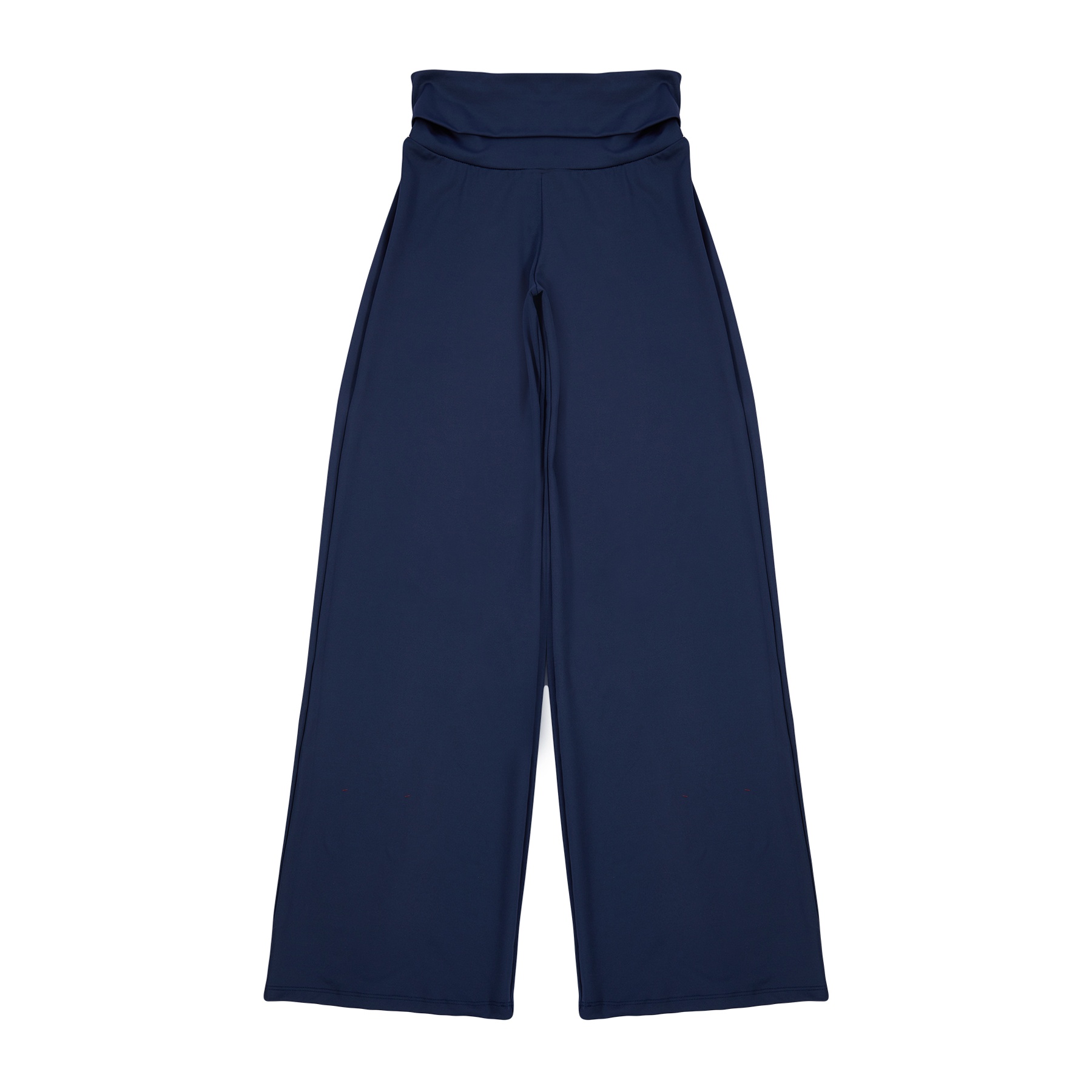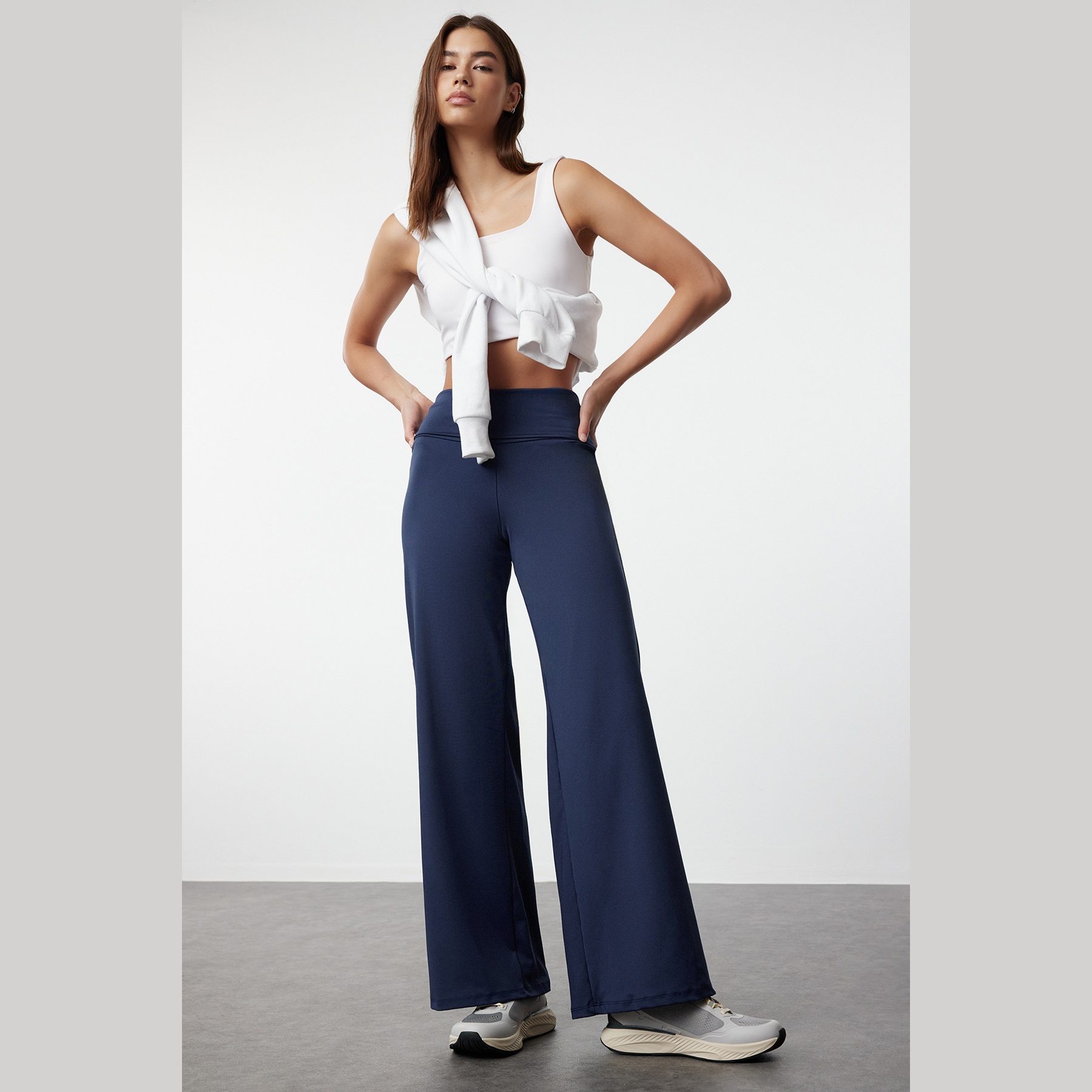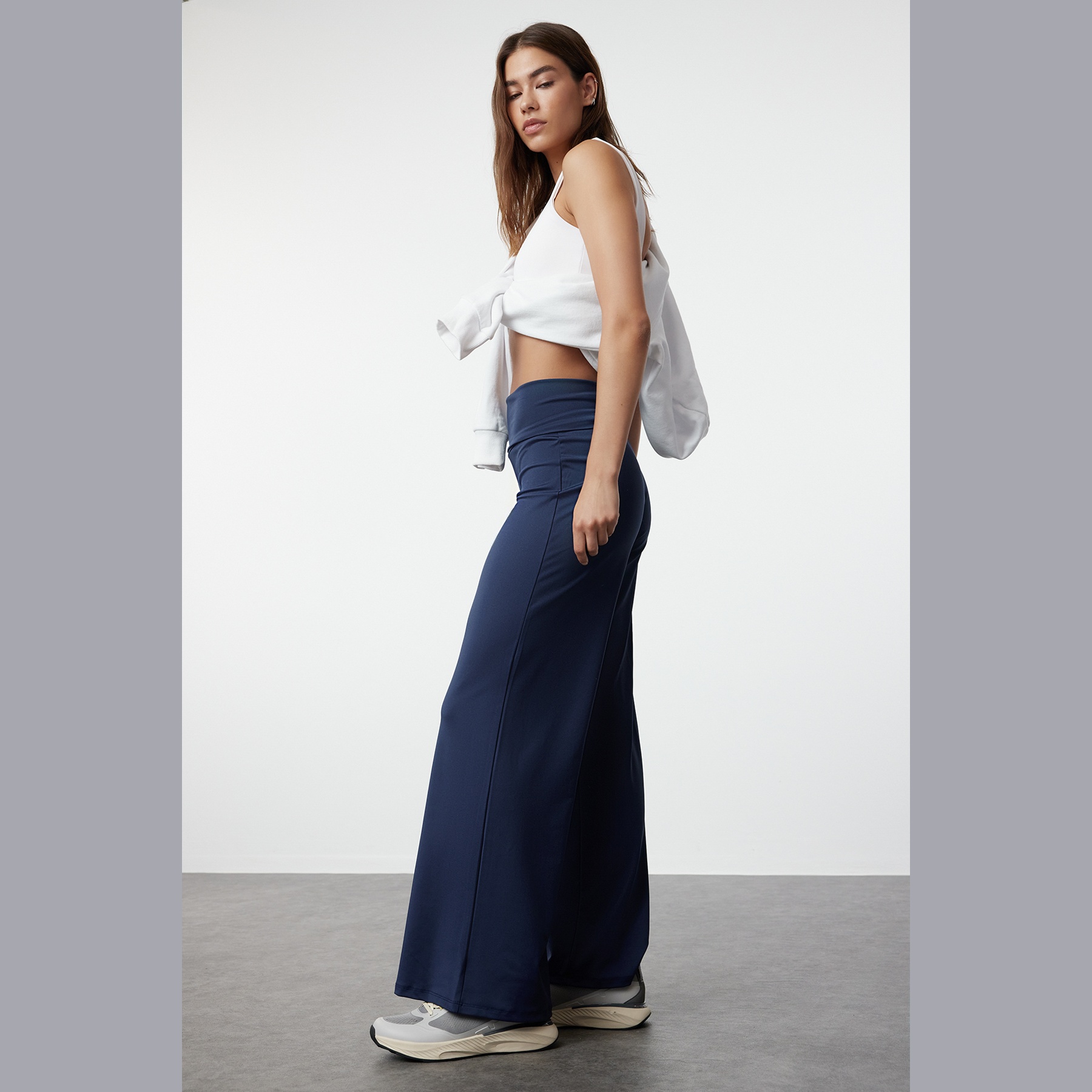 بنطال رياضي نسائي – كحلي داكن بخصر قابل للطي، قصة واسعة وخامة سكوبا مرنة (Foldable Waist Scuba Wide-Leg)