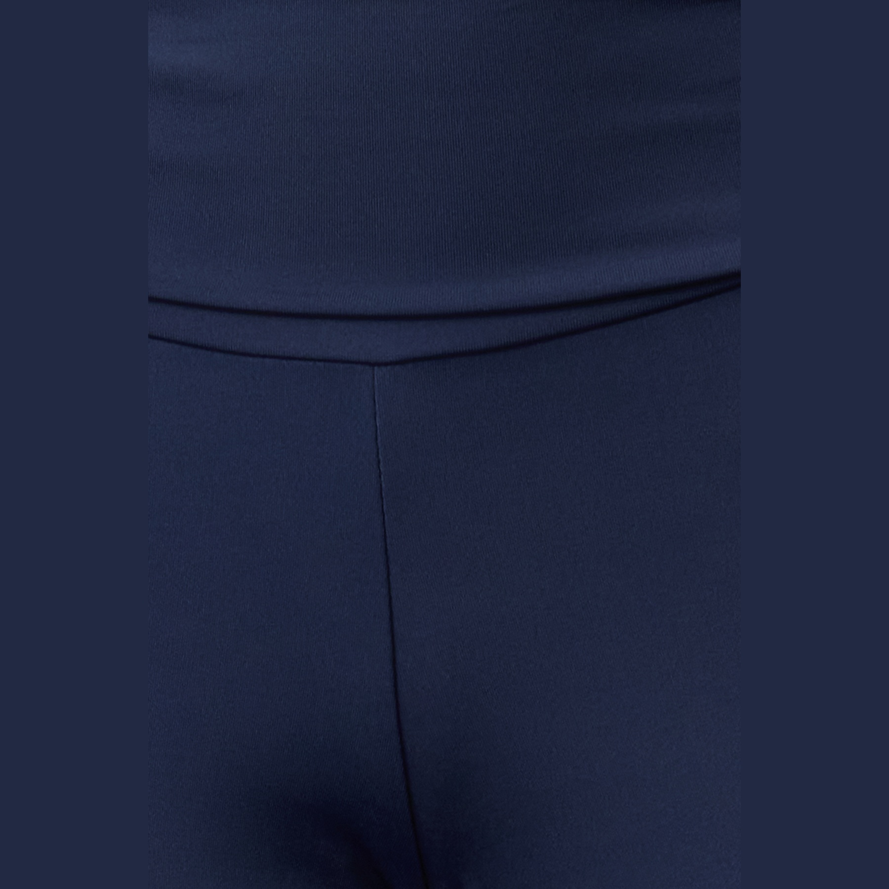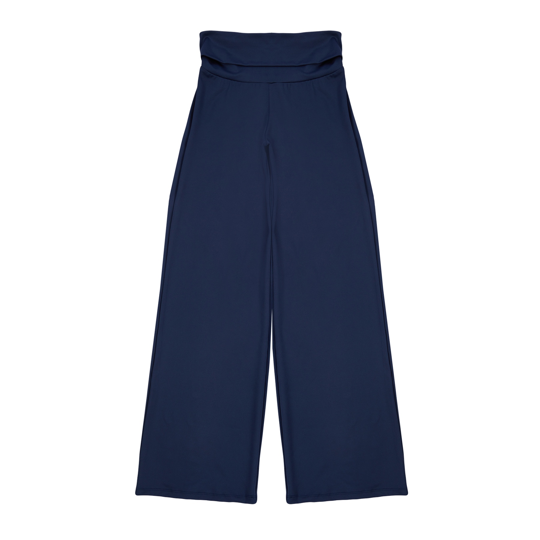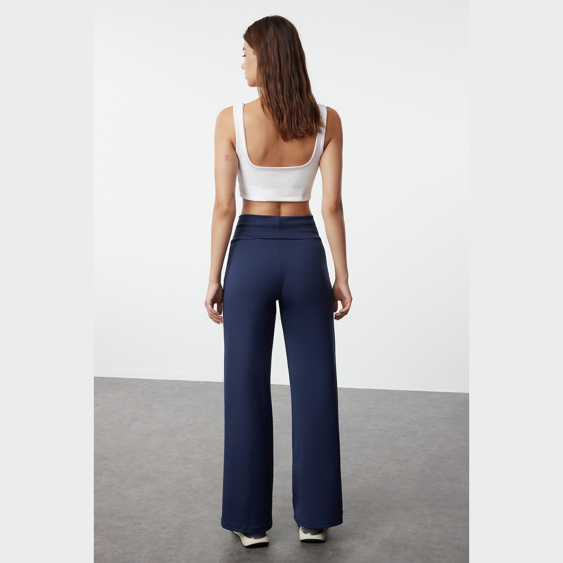 بنطال رياضي نسائي – كحلي داكن بخصر قابل للطي، قصة واسعة وخامة سكوبا مرنة (Foldable Waist Scuba Wide-Leg)