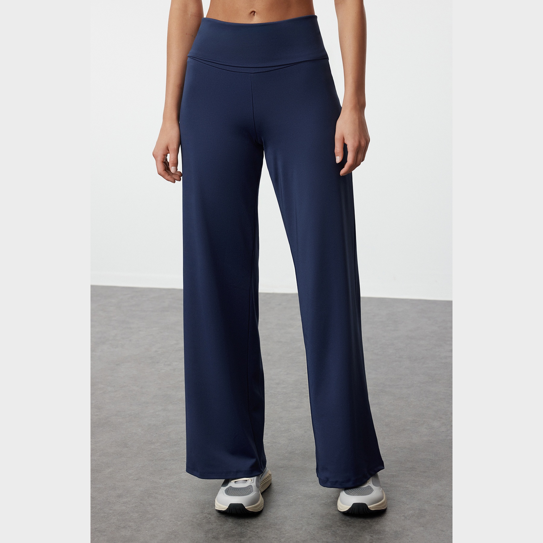 بنطال رياضي نسائي بلون كحلي داكن، مصنوع من قماش محبوك مرن بنسبة 92% بوليستر و8% إيلاستان، يتميز بقصة واسعة من الأرجل (Wide-Leg)، خصر مزدوج قابل للطي، وخامة سكوبا تمنح ثباتًا في القوام ومظهرًا مصقولًا. تصميم عملي وأنيق يناسب الإطلالات اليومية أو الكاجوال بلمسة محتشمة.