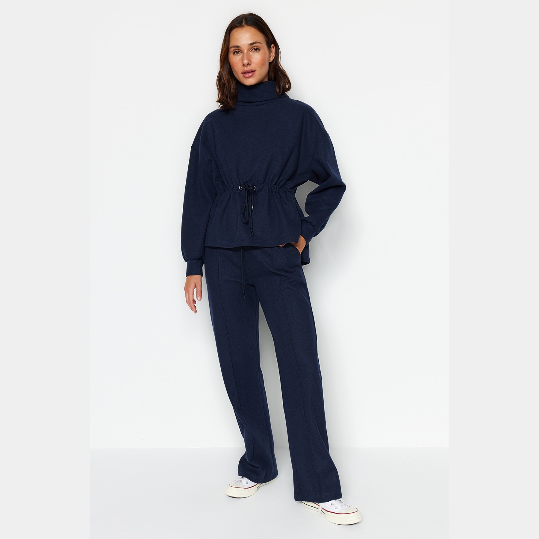 بنطال رياضي نسائي – كحلي بخامة سيلانيك نيرفور، قصة مستقيمة وجيوب عملية (Selanik Straight Fit)