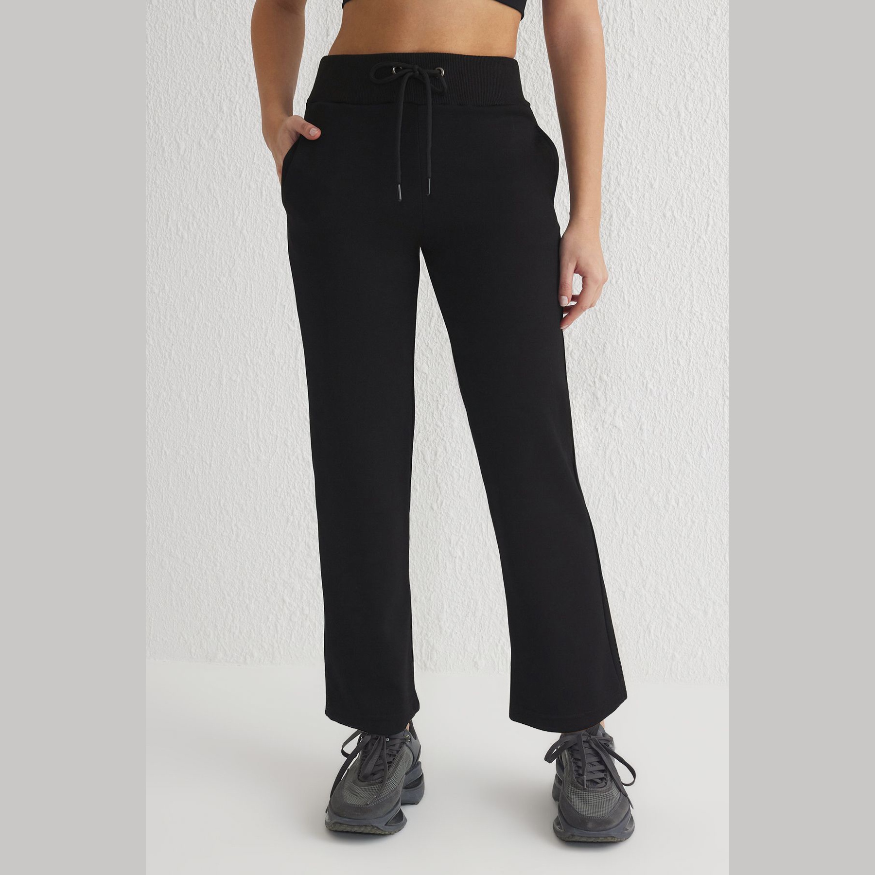 بنطال رياضي نسائي – أسود بخامة سكوبا، جيوب ورباط خارجي (Scuba Straight Fit with Drawstring)