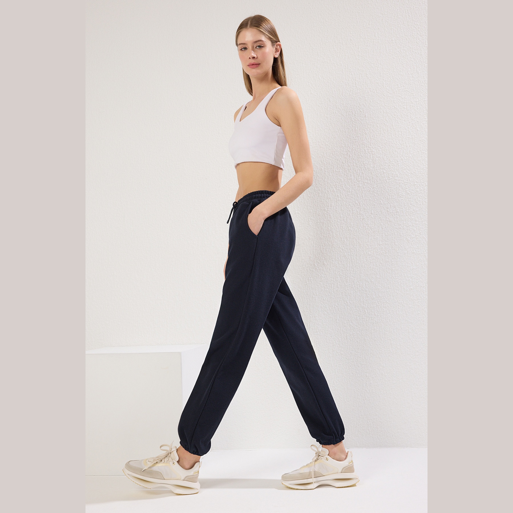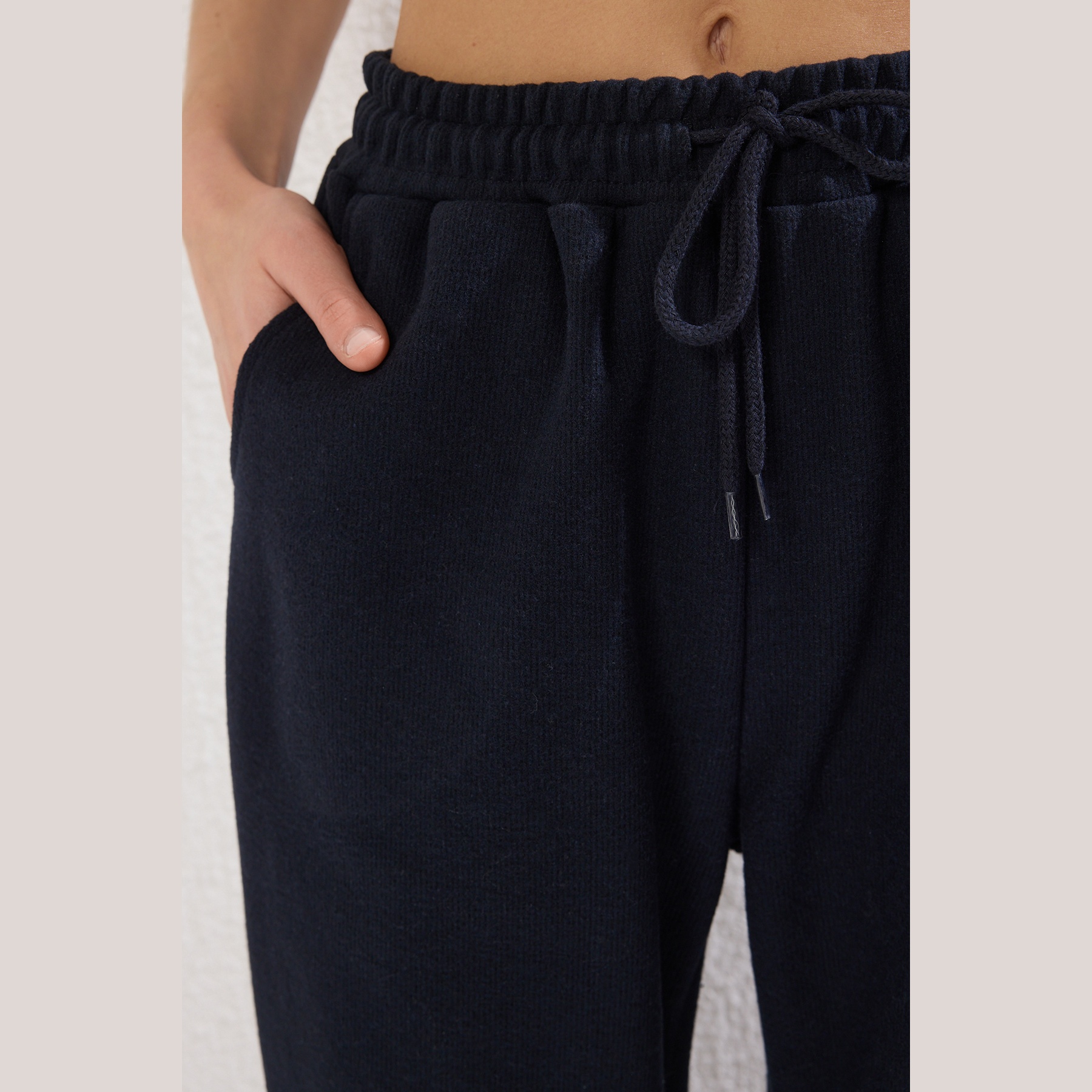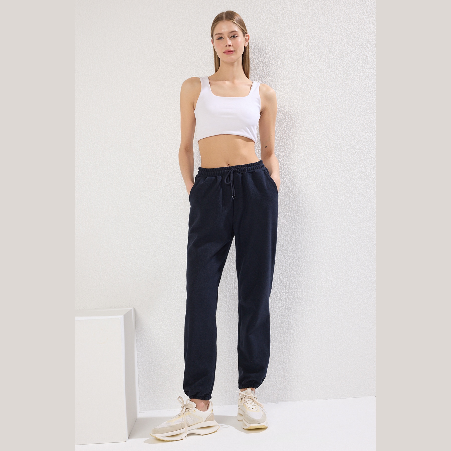 بنطال رياضي نسائي – كحلي داكن بخامة سيلانيك، قصة مريحة وجيوب عملية (Selanik Relaxed Fit)