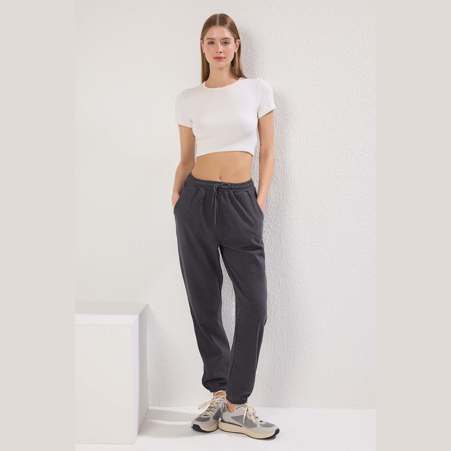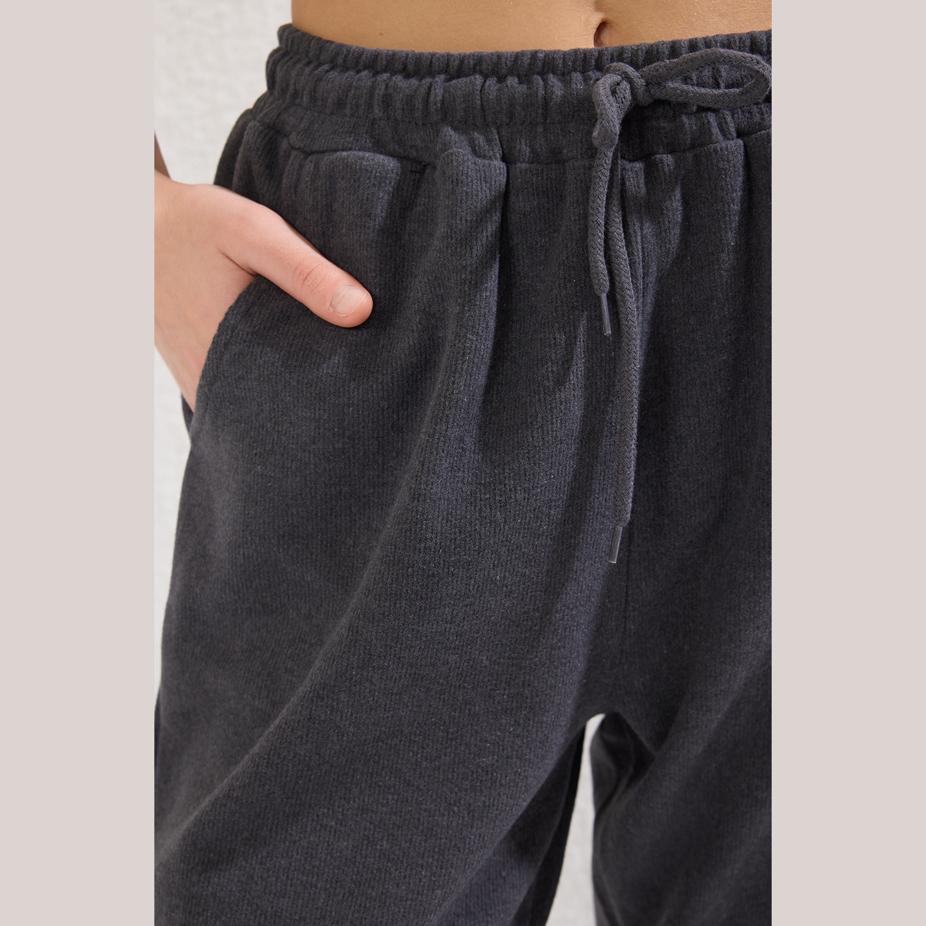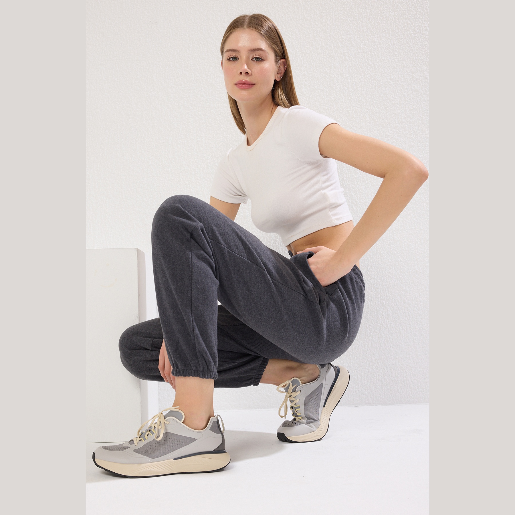 بنطال رياضي نسائي – أنثراسيت بخامة سيلانيك، قصة مريحة وجيوب عملية (Selanik Relaxed Fit)