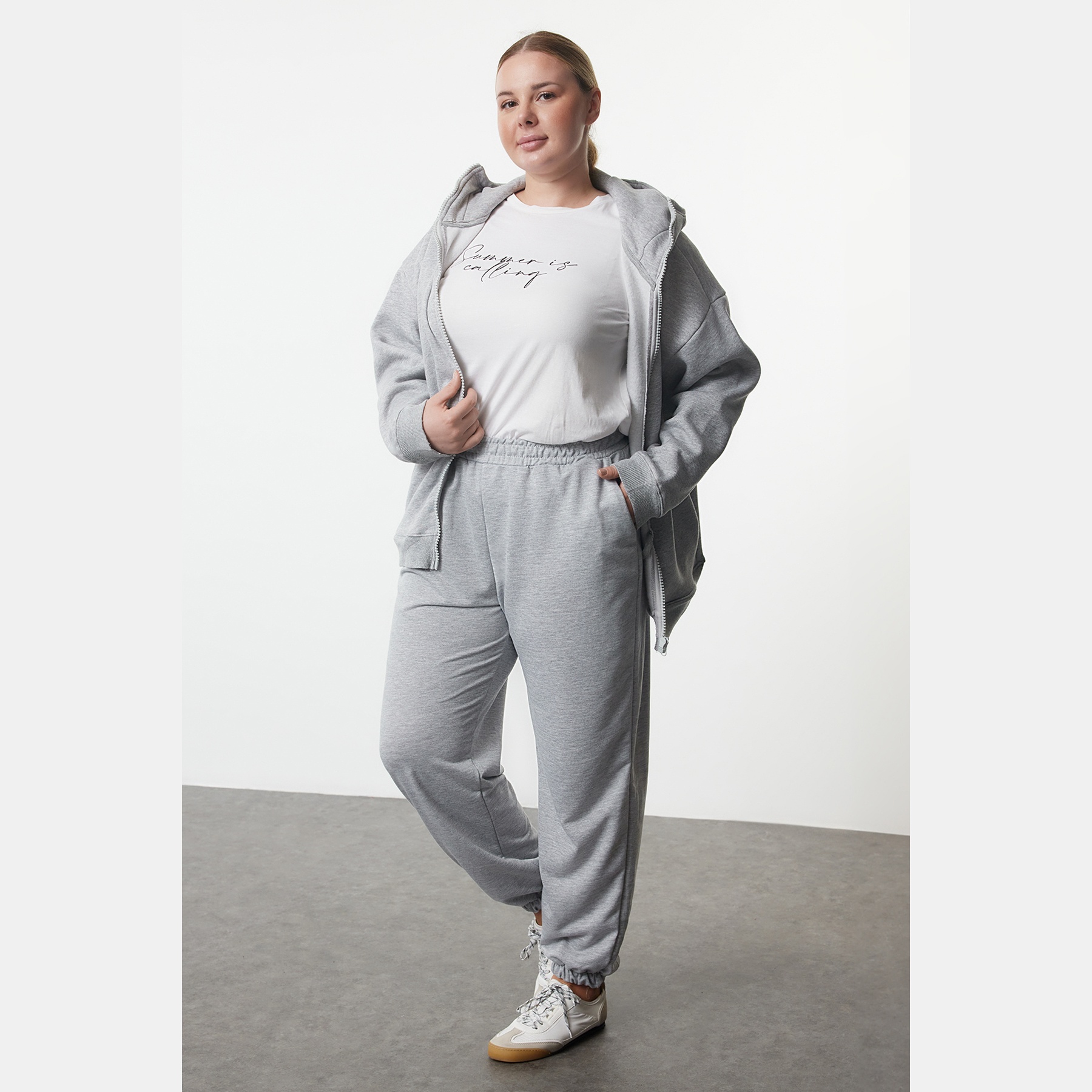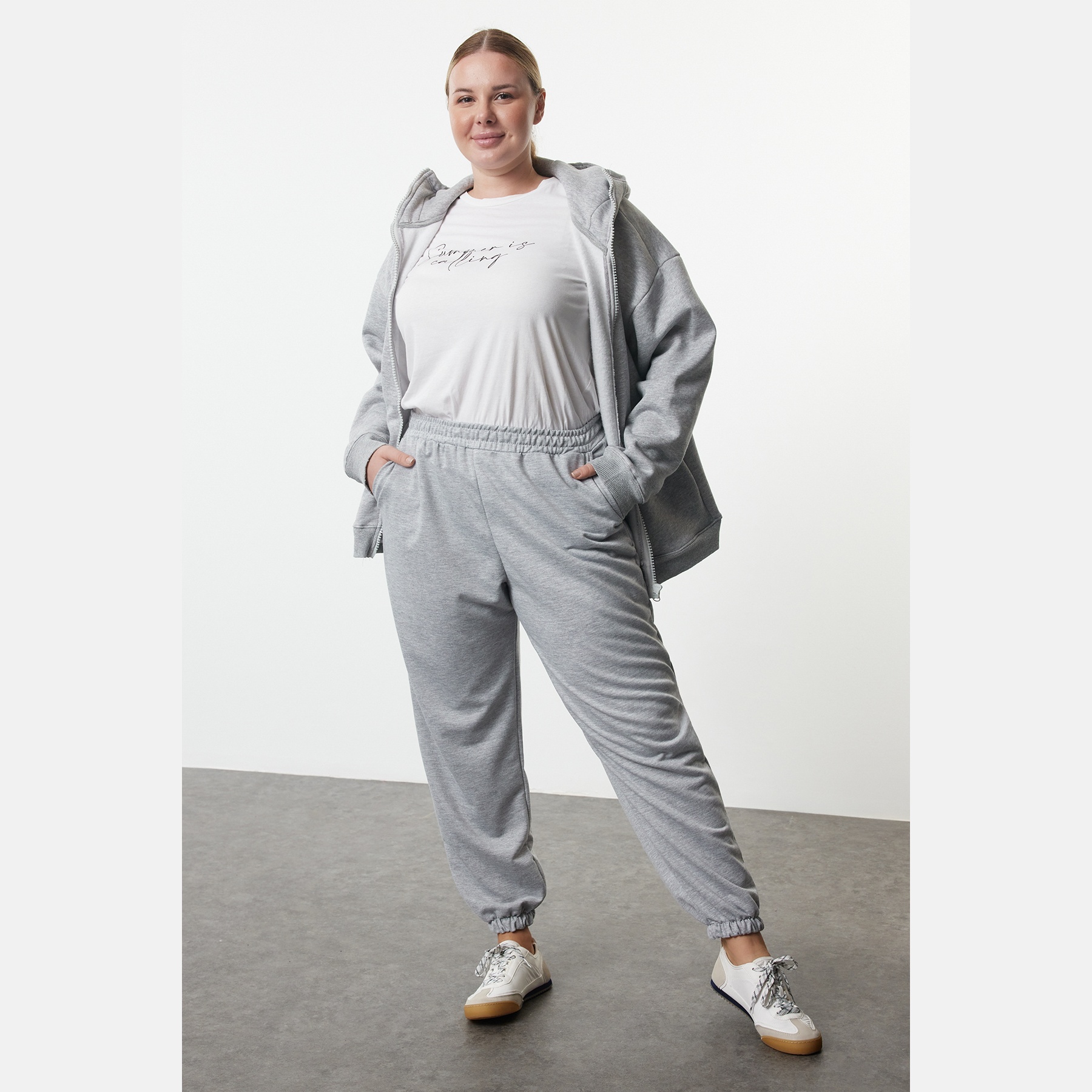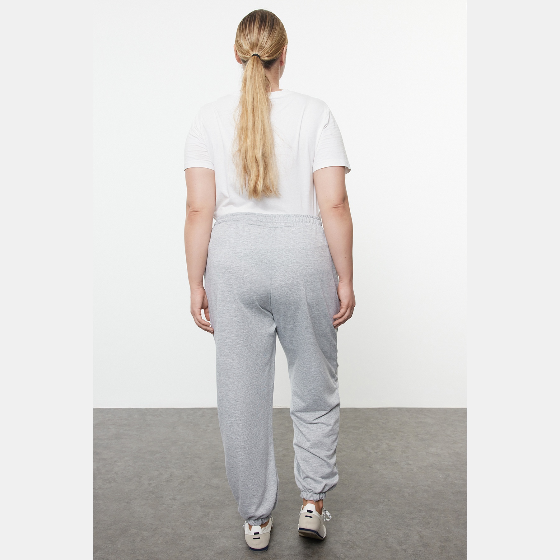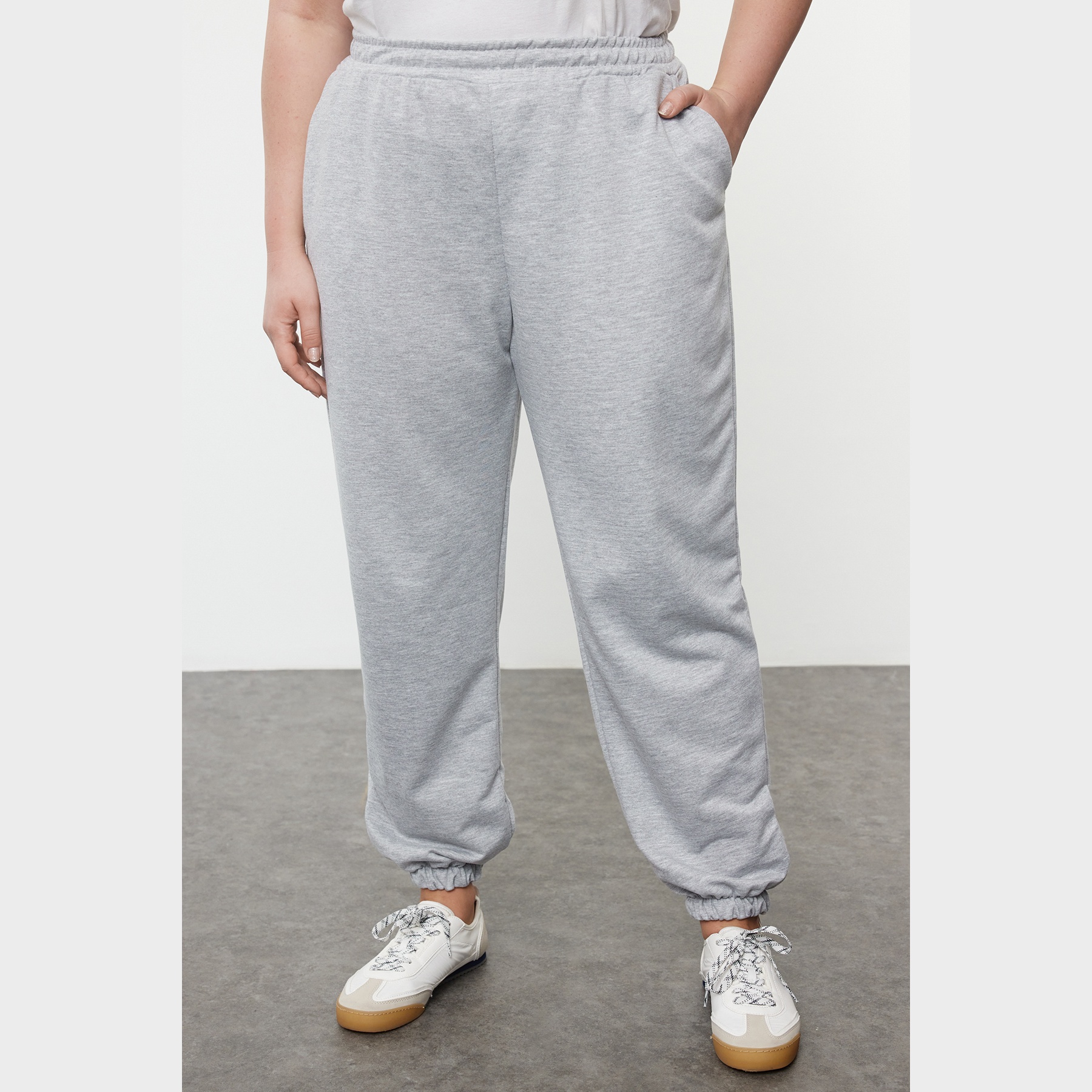 بنطال رياضي نسائي بلون رمادي ميلانج حيادي، مخصص للمقاسات الكبيرة، مصنوع من قماش محبوك خفيف بنسبة 79% قطن و21% بوليستر، يتميز بقصة جوجر فضفاضة، خصر مرن، ونهاية أرجل بمطاط رفيع. تصميم عملي ومريح مثالي للإطلالات اليومية أو الكاجوال.