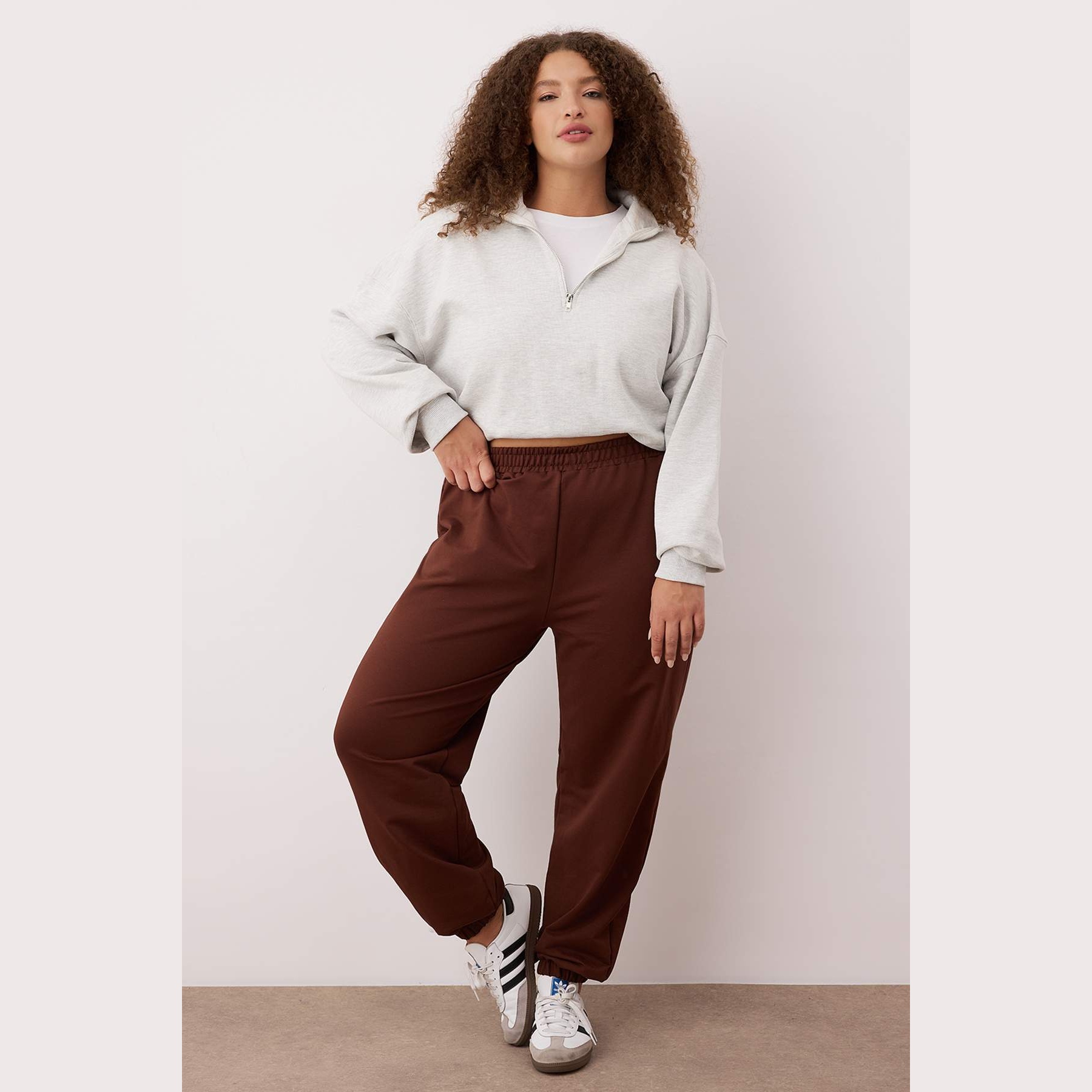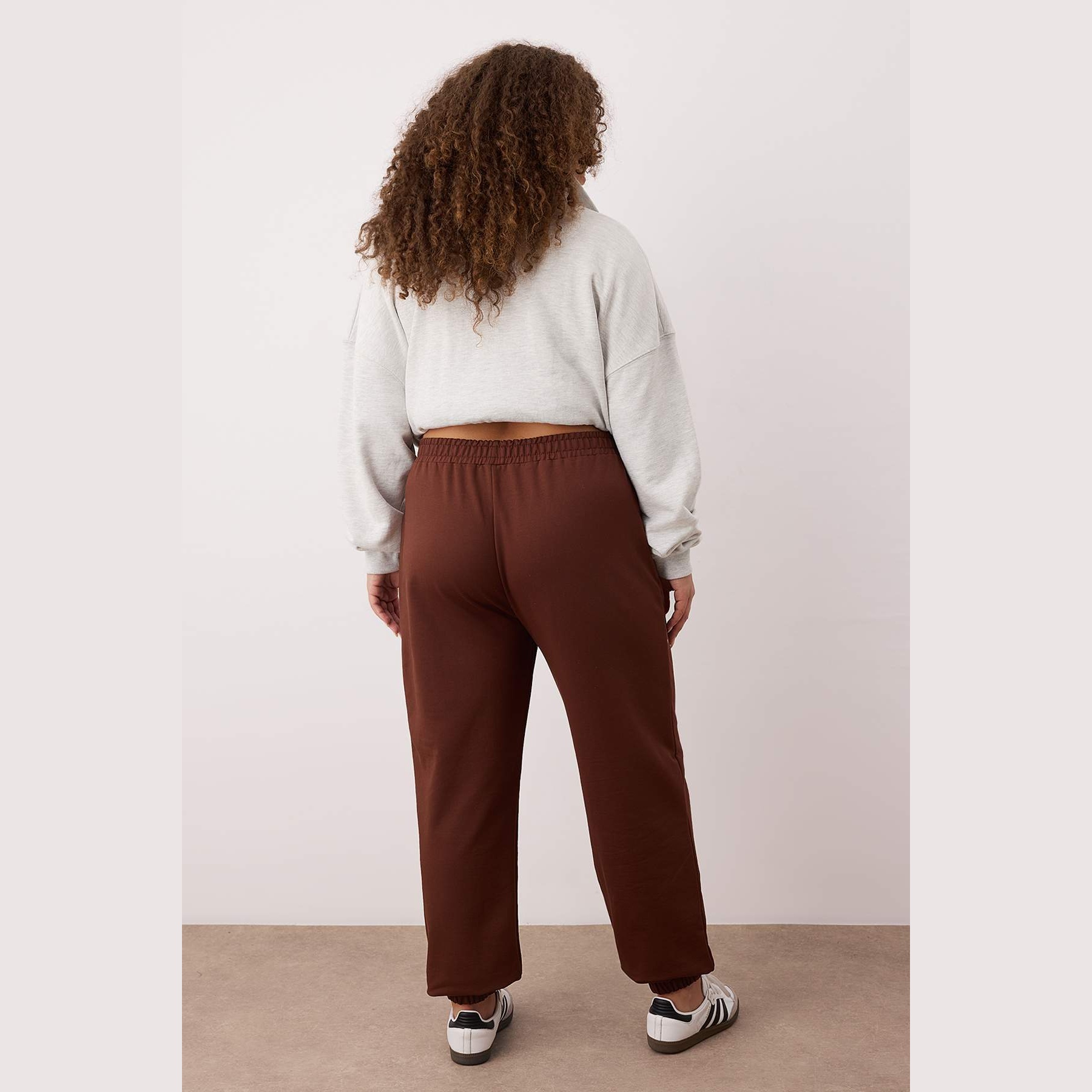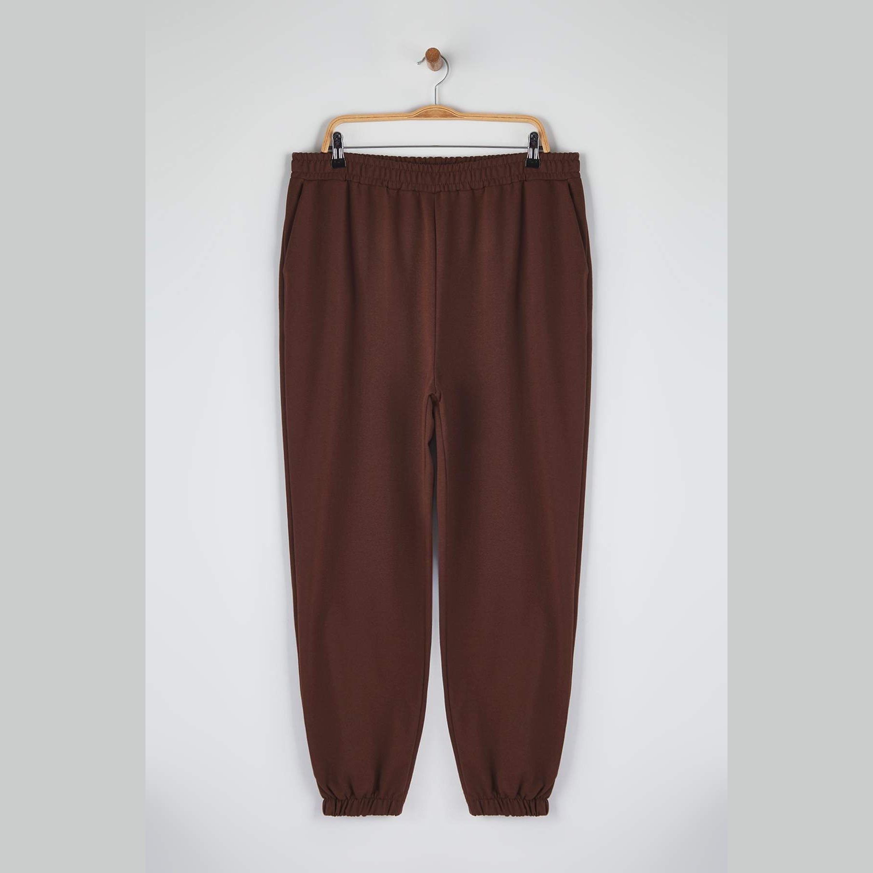 بنطال رياضي نسائي بلون بني دافئ، مخصص للمقاسات الكبيرة، مصنوع من قماش محبوك خفيف بنسبة 79% قطن و21% بوليستر، يتميز بقصة جوجر فضفاضة، خصر مرن، ونهاية أرجل بمطاط رفيع. تصميم عملي ومريح مثالي للإطلالات اليومية أو الكاجوال.