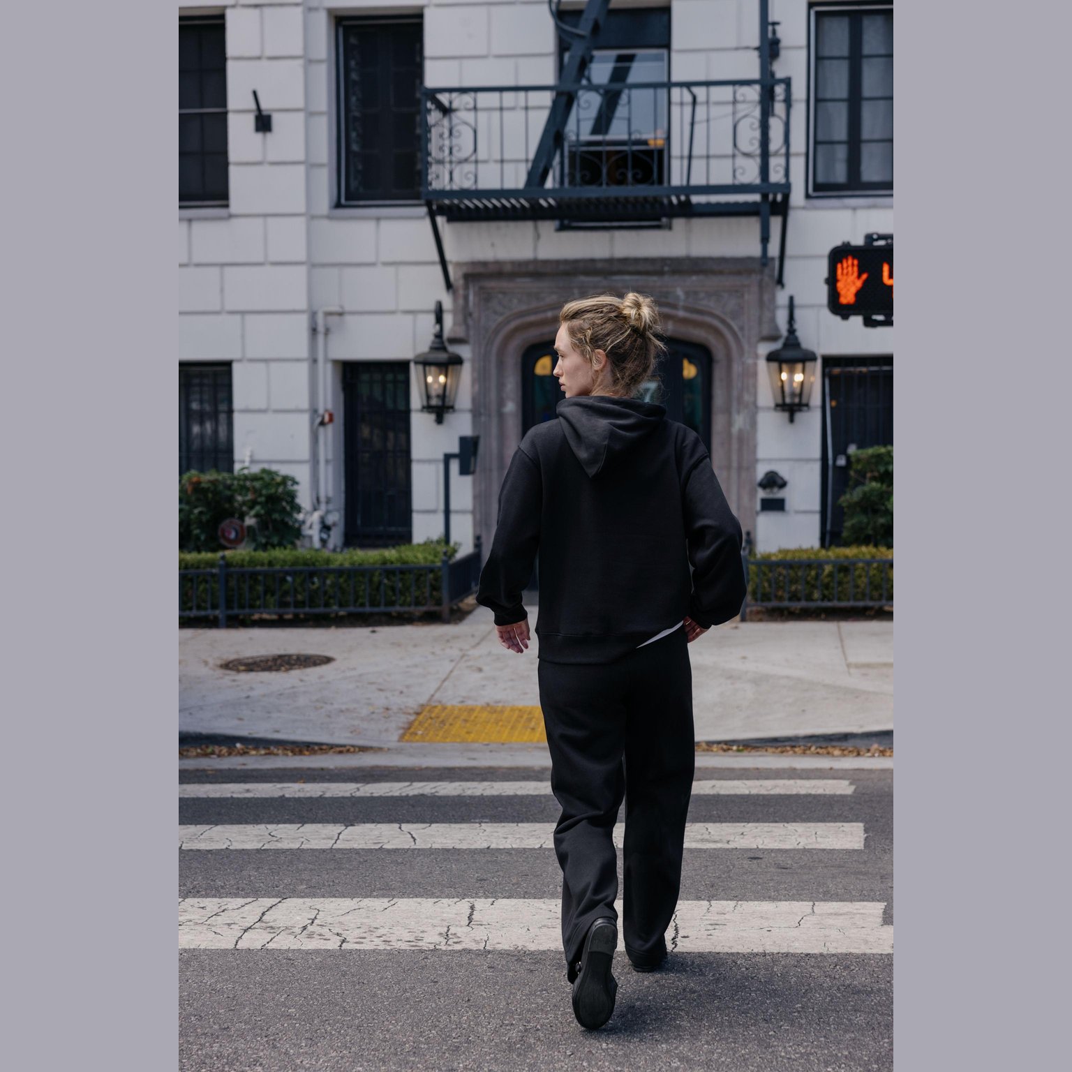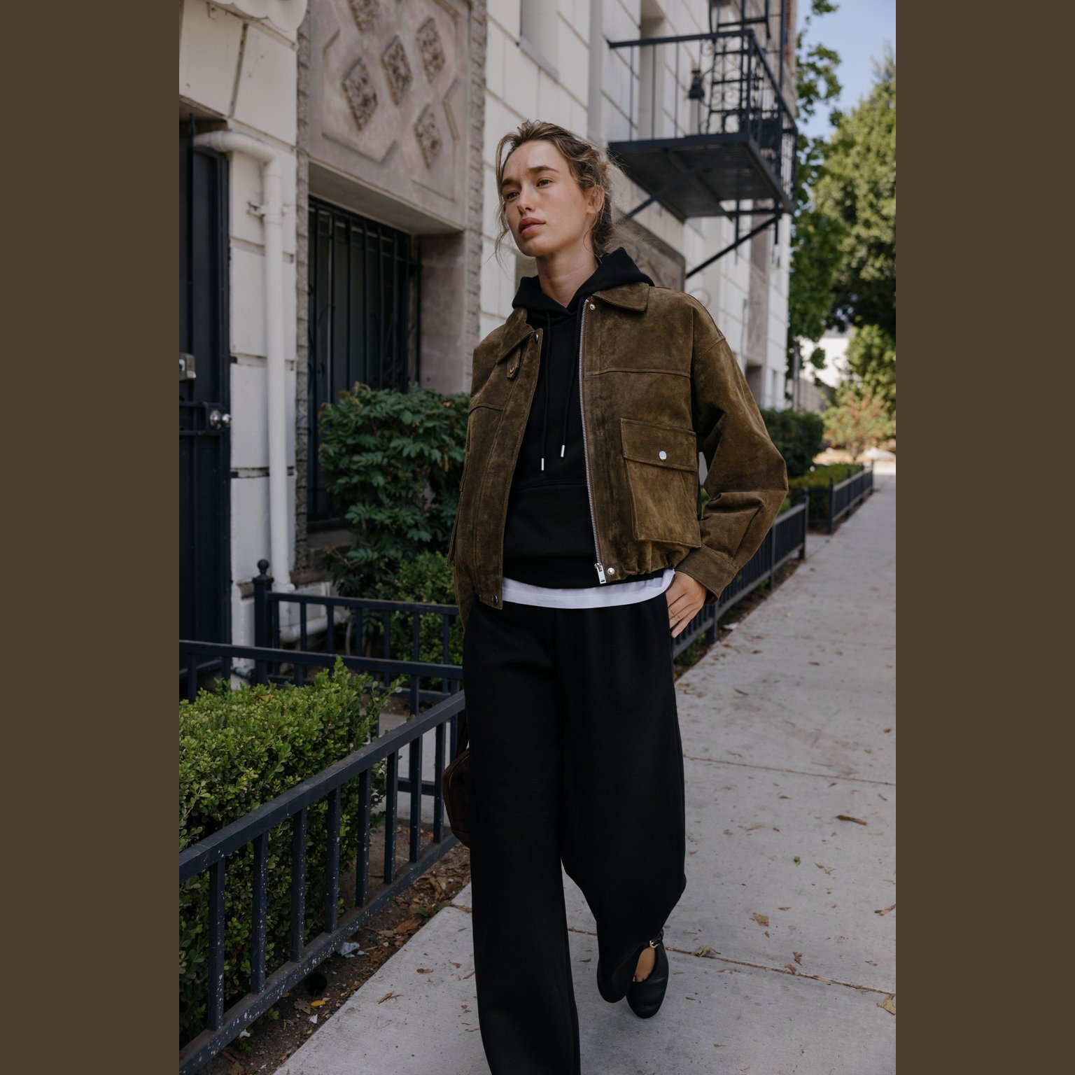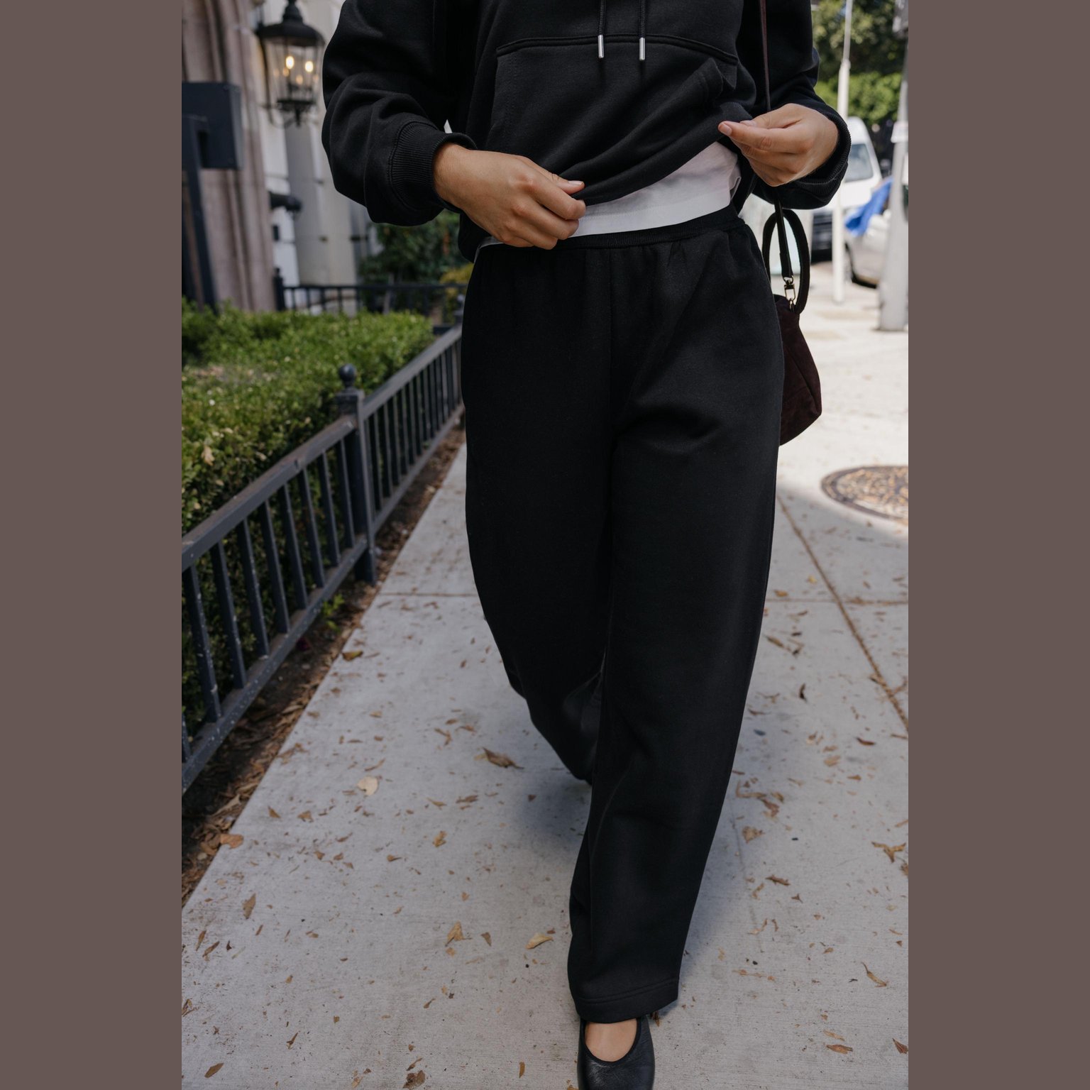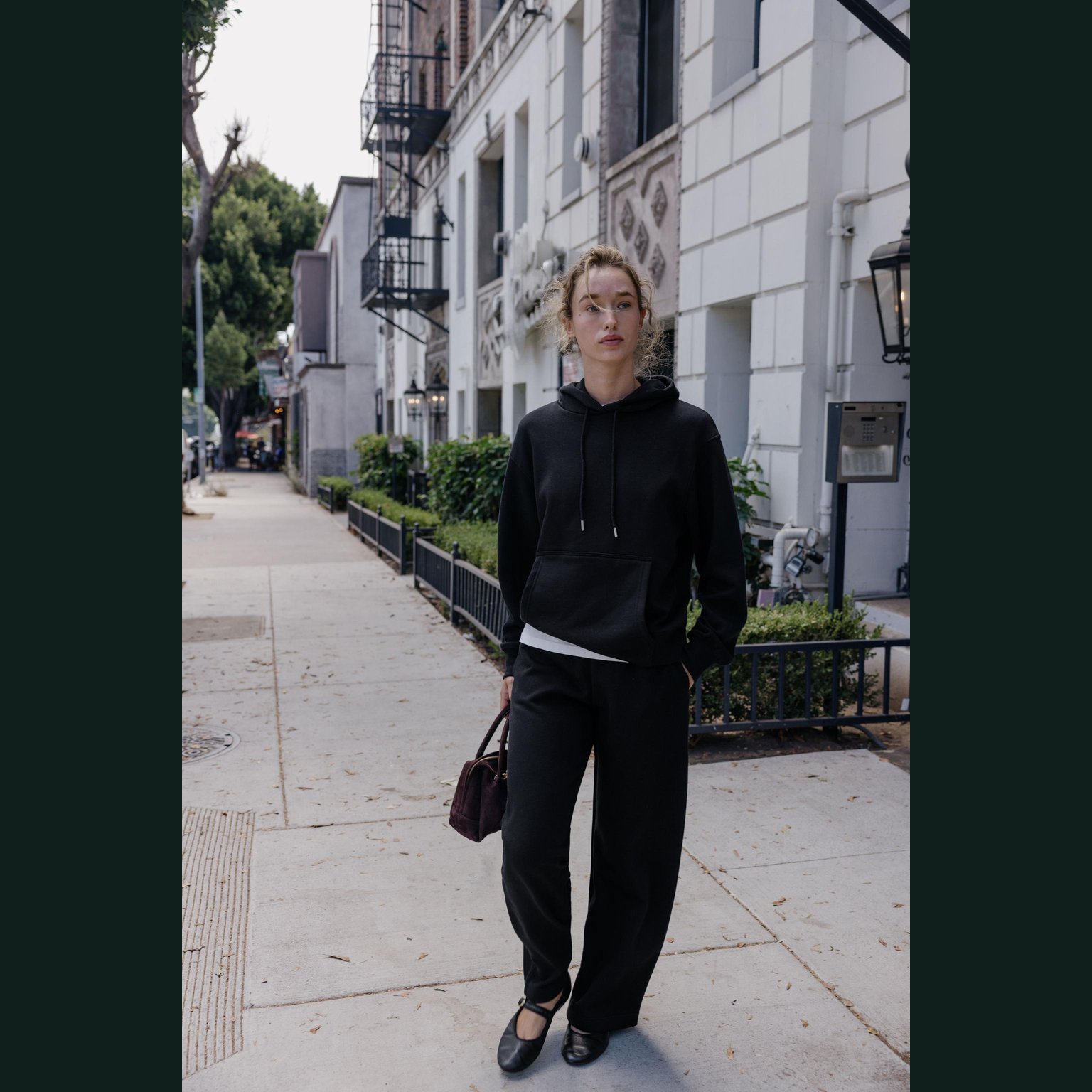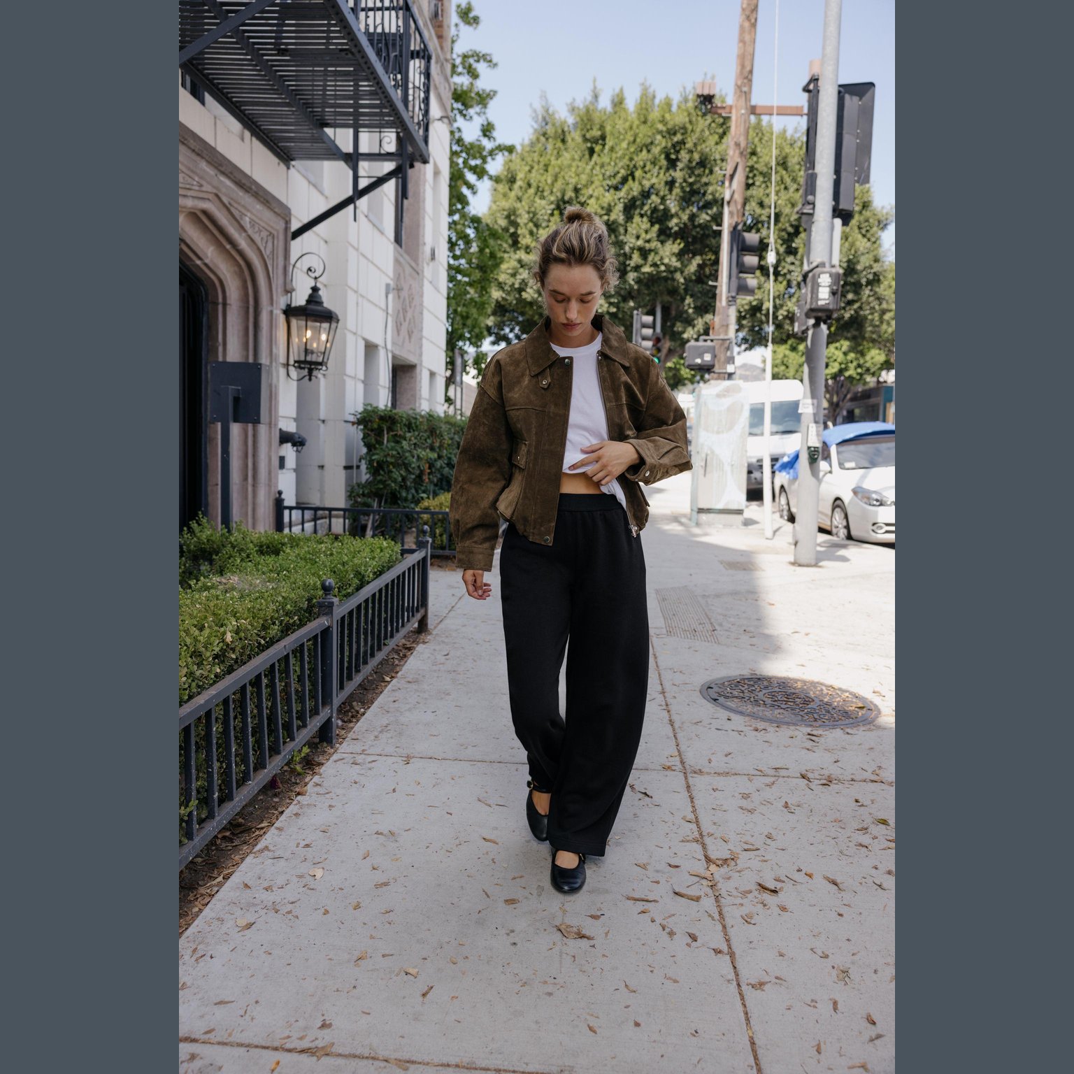 بنطال بملمس ناعم بقصّة واسعة – لون أسود – Black (Wide‑Leg Plush Trousers) بنطال مريح بقصّة واسعة وانسيابية، يأتي بخصر متوسط الارتفاع مع حزام مطاطي مزوّد برباط قابل للشد لمزيد من الراحة والثبات. يتميز بجيوب جانبية داخلية تمنح عملية إضافية، وخامة ناعمة مثالية للإطلالات اليومية والكاجوال.