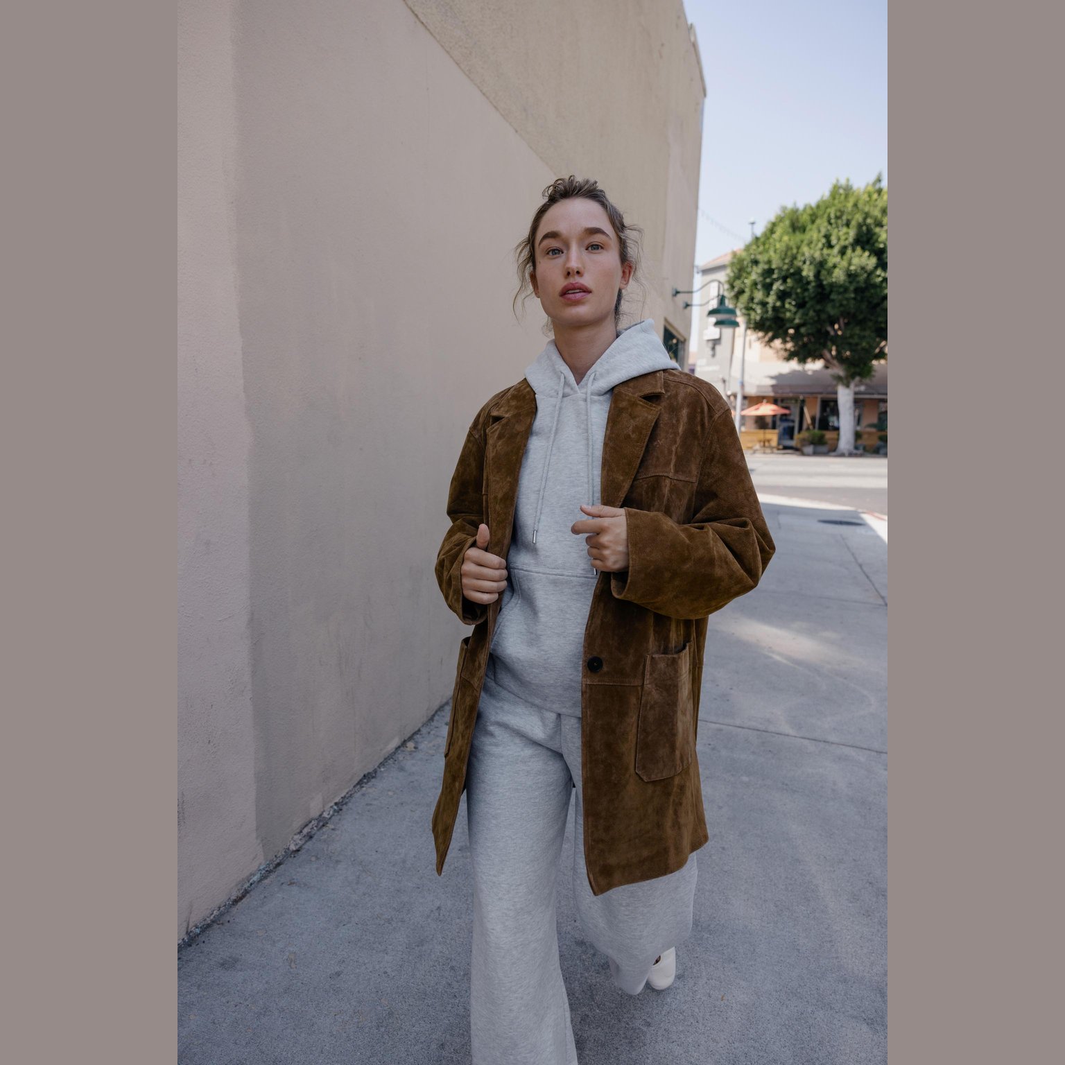 بنطال بملمس ناعم بقصّة واسعة – لون رمادي ميلانج – Grey Marl (Wide‑Leg Plush Trousers) بنطال مريح بقصّة واسعة وانسيابية، يأتي بخصر متوسط الارتفاع مع حزام مطاطي مزوّد برباط قابل للشد لمزيد من الراحة والثبات. يتميز بجيوب جانبية داخلية تمنح عملية إضافية، وخامة ناعمة مثالية للإطلالات اليومية والكاجوال.