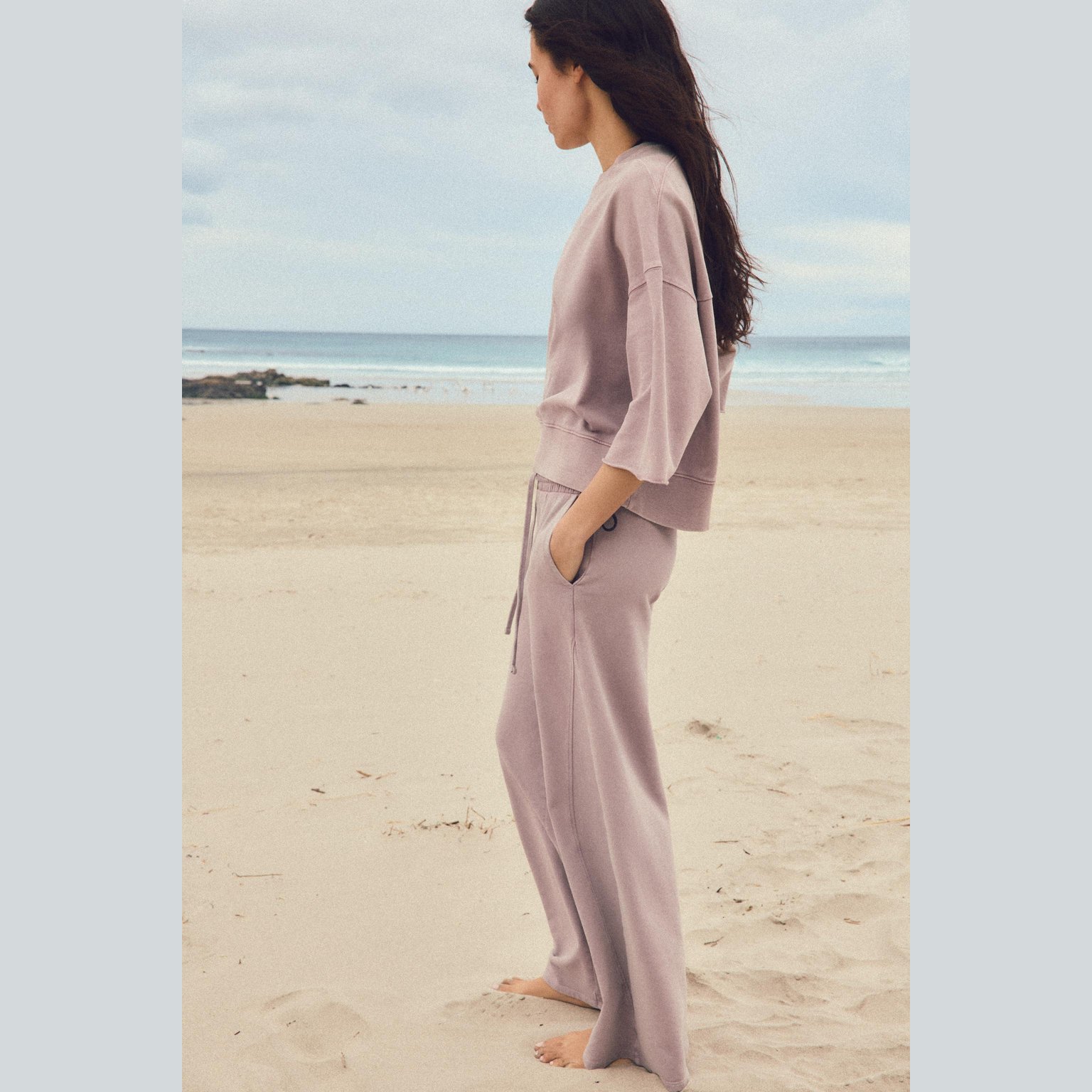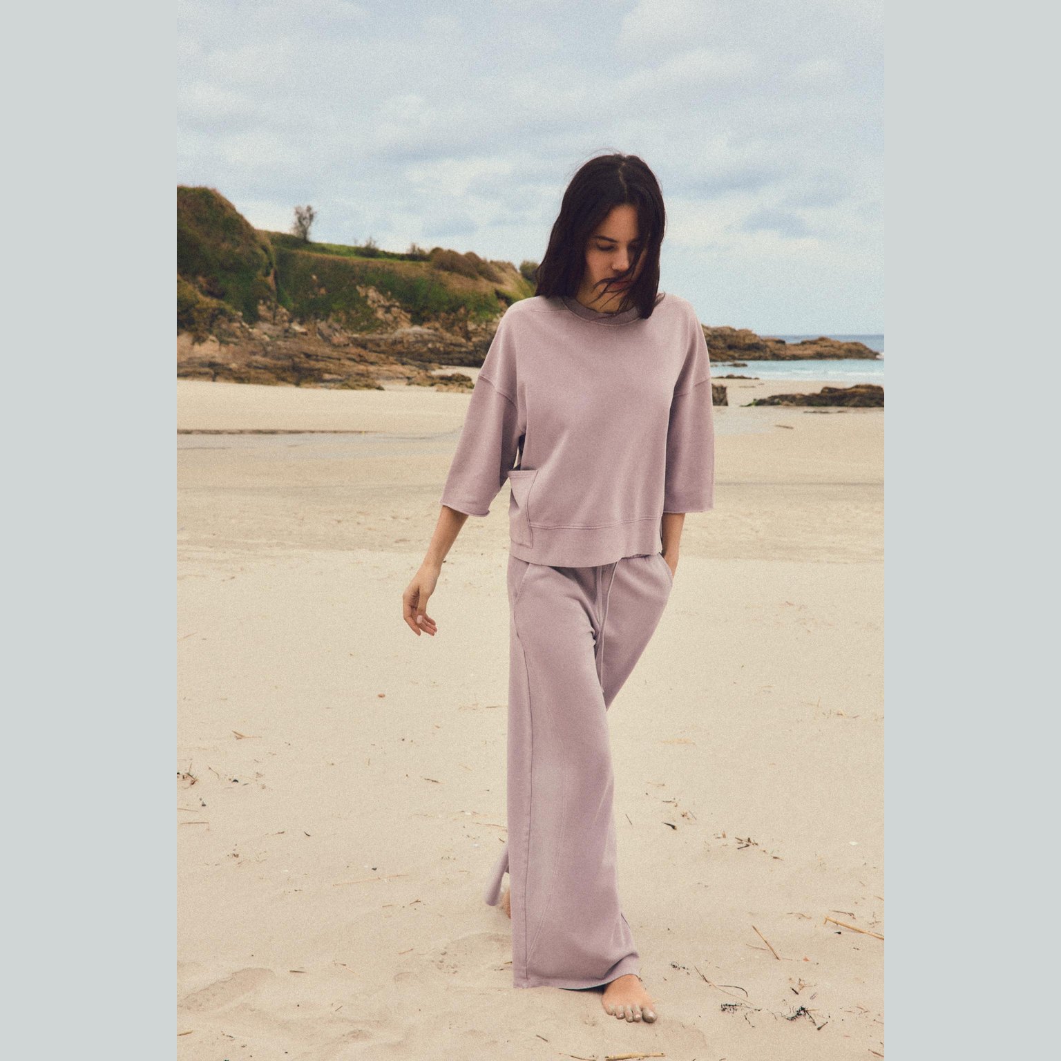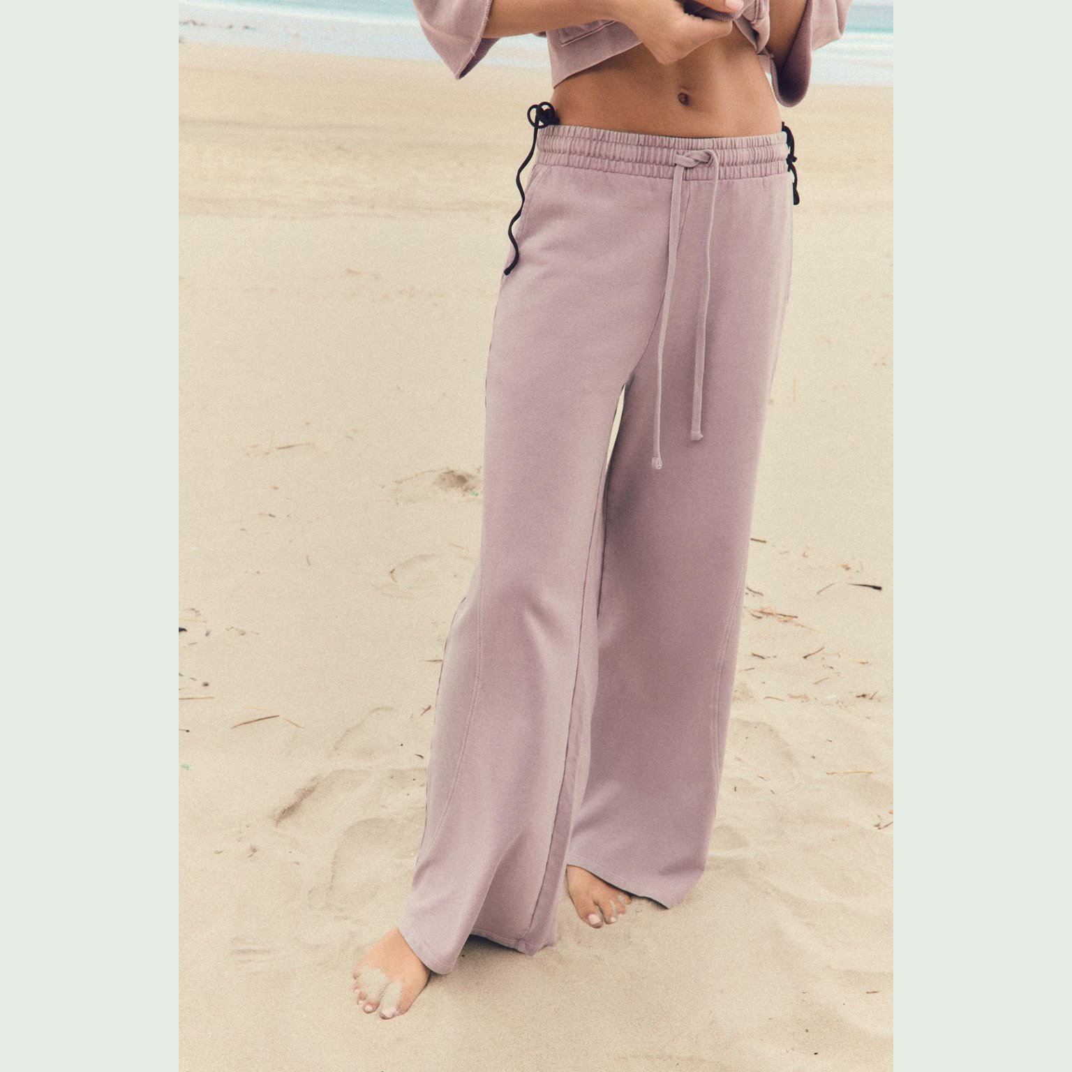 بنطال قطن بملمس مغسول – لون وردي باهت – Dusty Pink (Washed‑Effect Trousers) بنطال مريح مصنوع من قطن ناعم بملمس مغسول يمنح مظهرًا فريدًا لكل قطعة. يتميز بخصر مرتفع مع رباط قابل للشد، وجيوب جانبية عملية، إضافة إلى أطراف مطاطية تمنح لمسة كاجوال عصرية. تصميم مثالي للإطلالات اليومية المريحة.