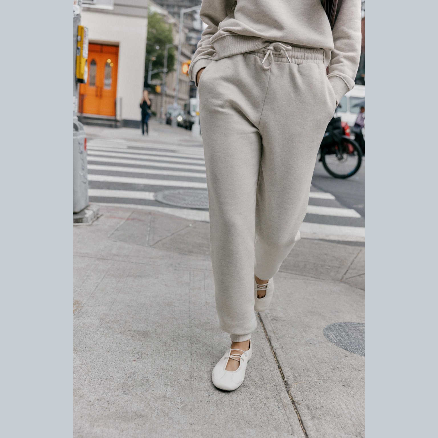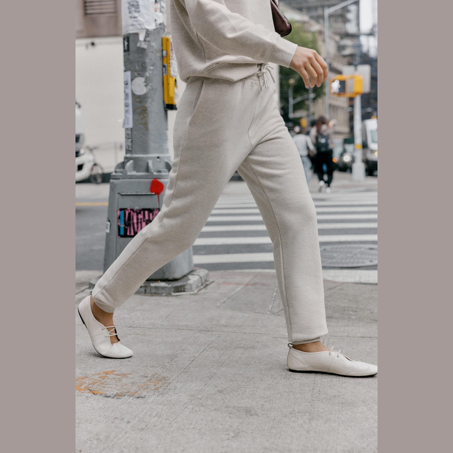 بنطال جوجر بملمس ريفي ناعم – لون بيج ميلانج – Beige Marl (Rustic Jogger Trousers) بنطال مريح بقصّة جوجر انسيابية، مصنوع من خامة قطنية ناعمة تمنح راحة يومية. يأتي بخصر متوسط الارتفاع مع حزام مطاطي مزوّد برباط قابل للشد، إضافة إلى جيوب جانبية داخلية تمنح عملية وأناقة. الأطراف السفلية مزودة بسوار مطاطي يمنح مظهر الجوجر الكلاسيكي.