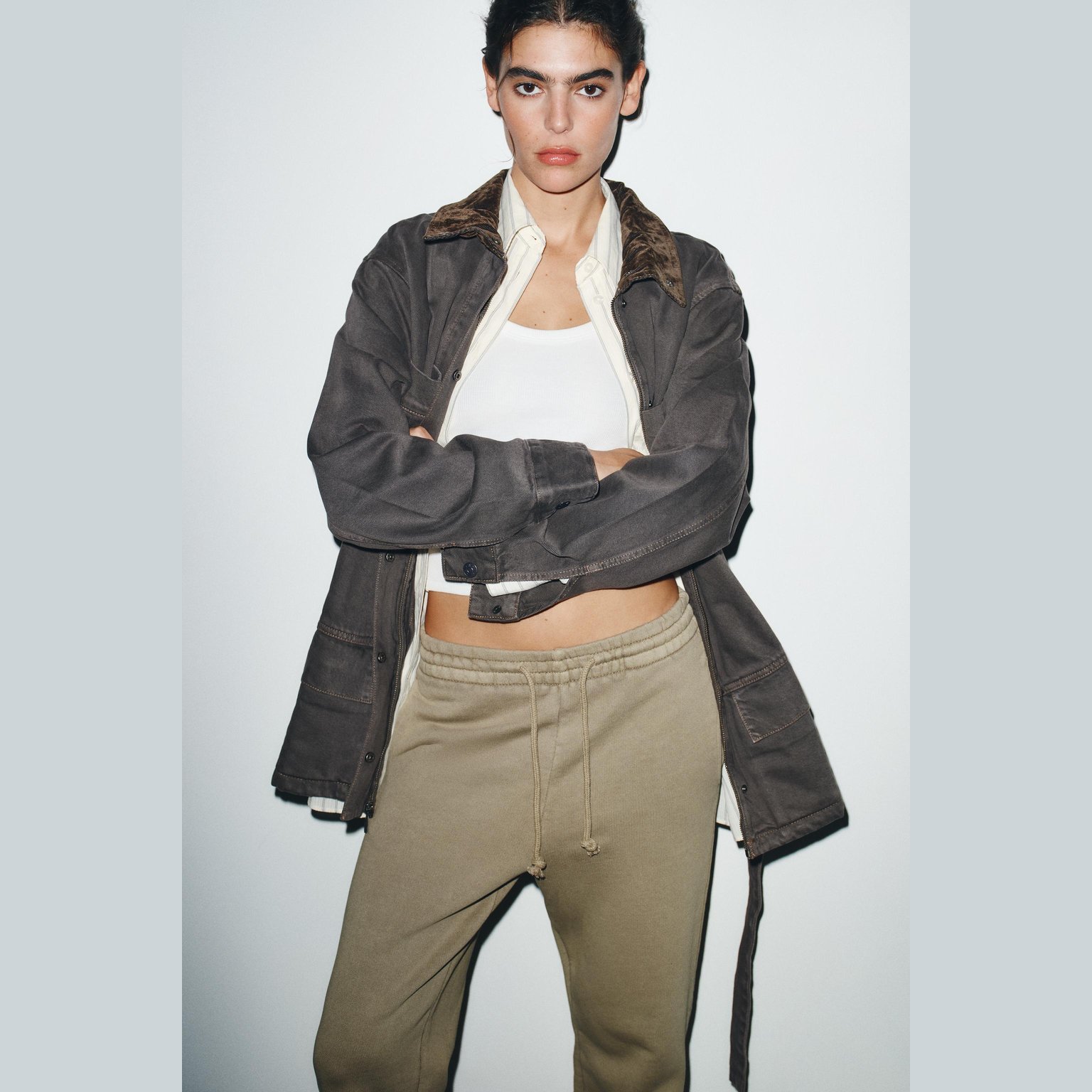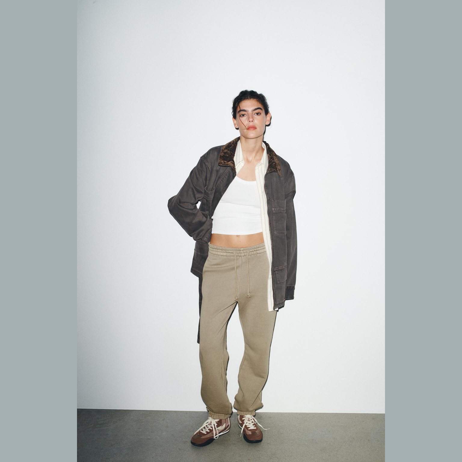 بنطال جوجر بتأثير مغسول – لون ستون – Stone (Washed‑Effect Fleece Joggers) بنطال مريح بملمس فليس ناعم وتأثير مغسول يمنح كل قطعة مظهرًا فريدًا. يأتي بخصر مرتفع مع حزام مطاطي مزوّد برباط قابل للشد، إضافة إلى جيوب جانبية عملية. الأطراف السفلية مزودة بسوار مطاطي يمنح مظهر الجوجر الكلاسيكي.