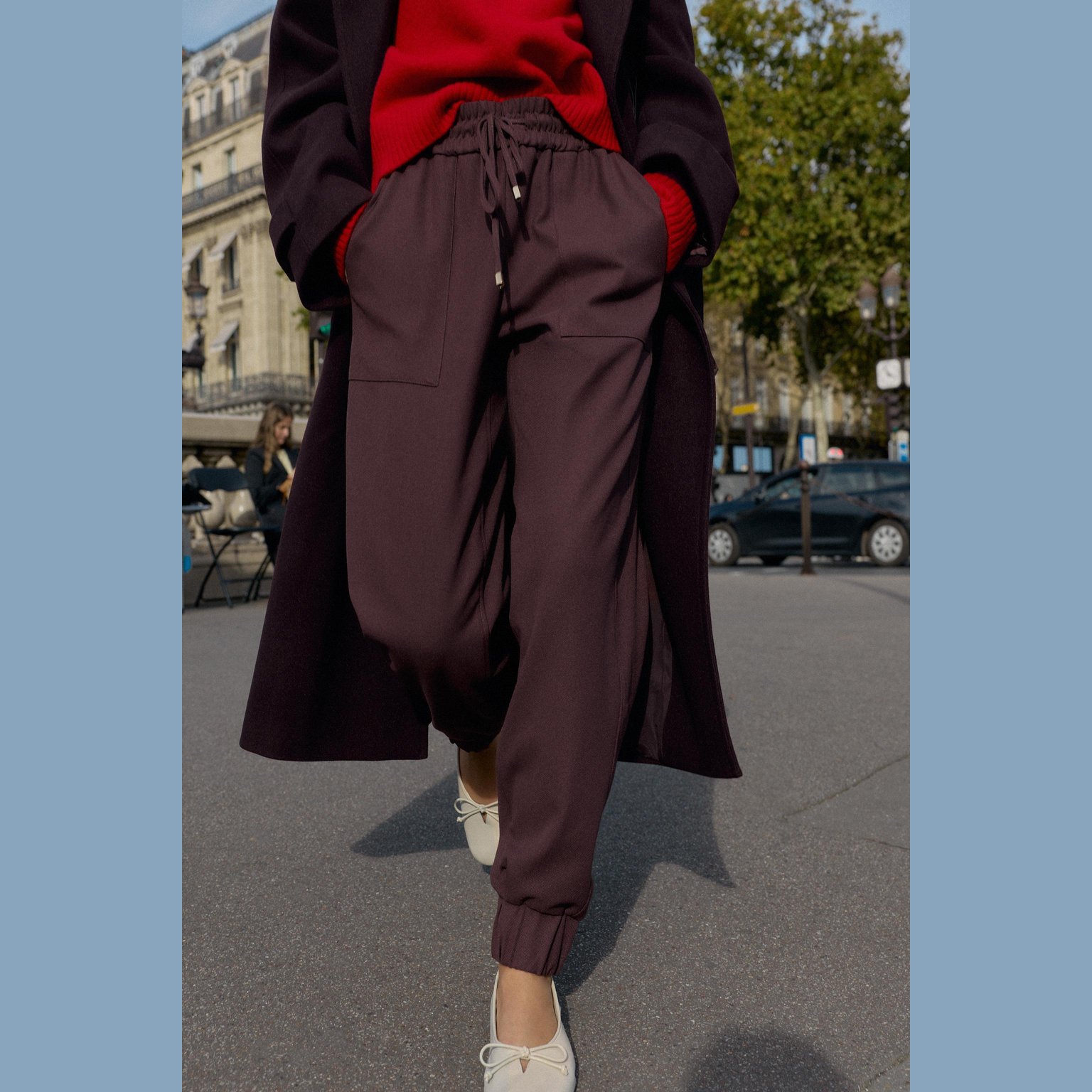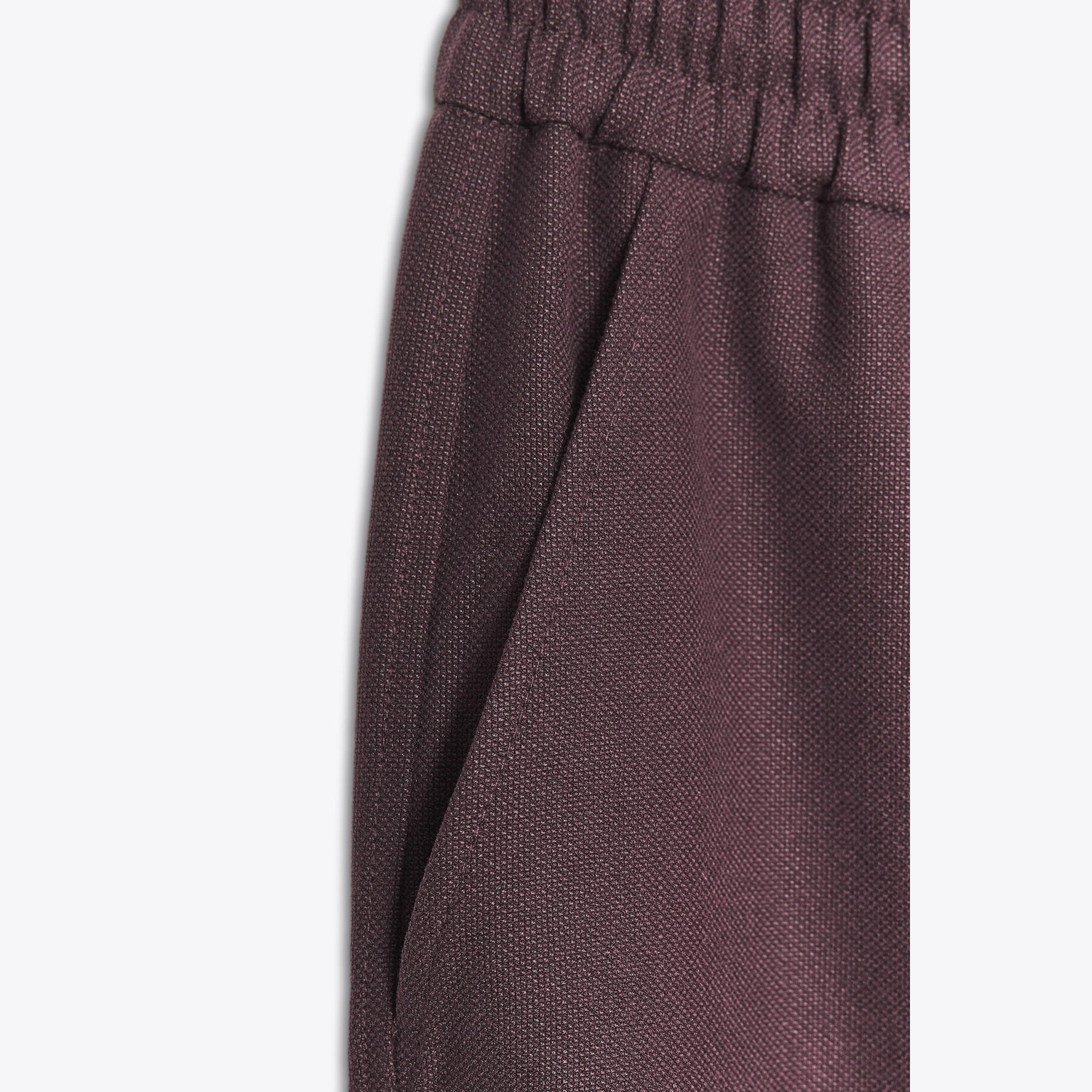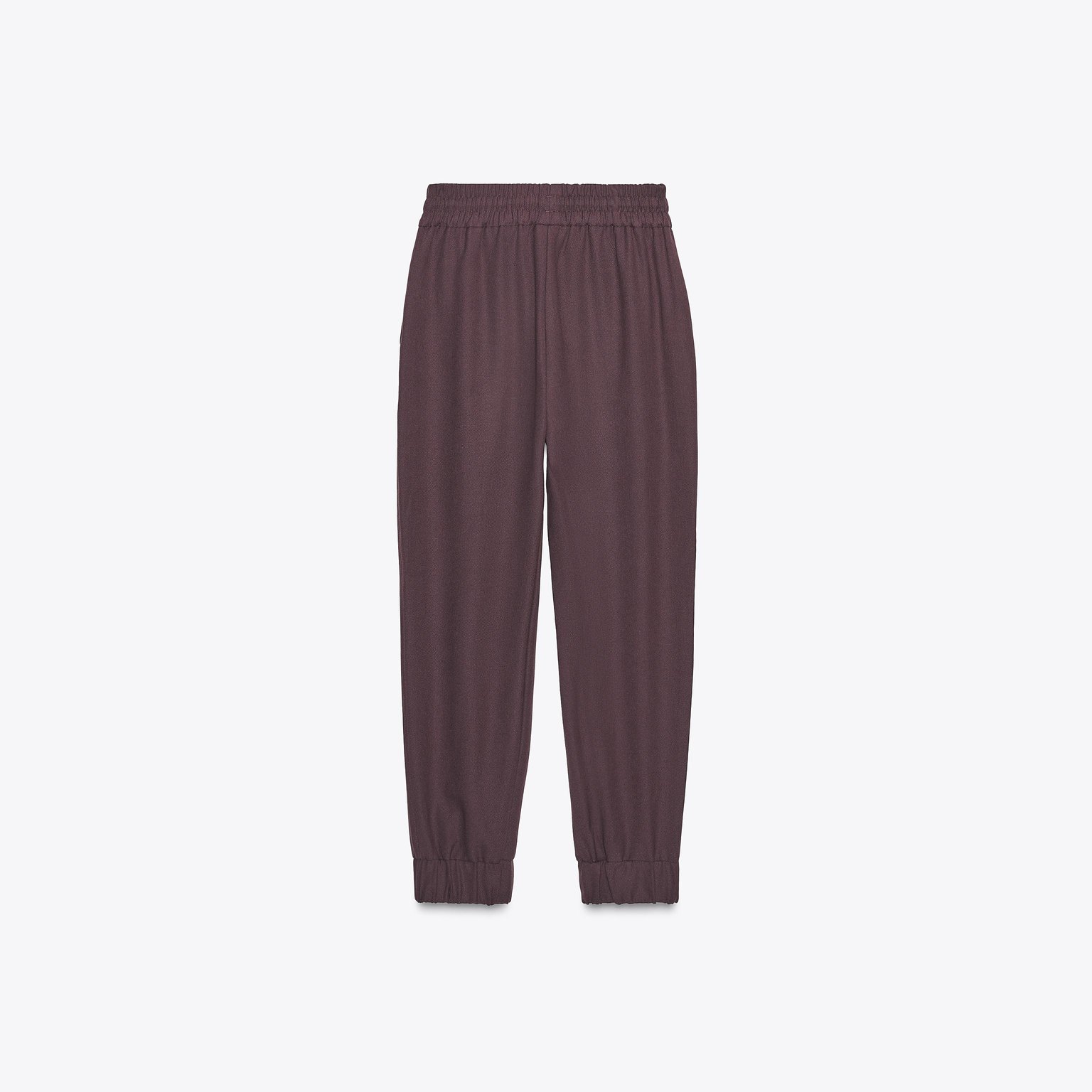 بنطال بقصّة مستقيمة مع حافة مطاطية – لون خمري – Burgundy (Cuffed Hem Trousers) بنطال مريح بخصر متوسط الارتفاع مع حزام مطاطي مزوّد برباط قابل للشد. يتميز بجيوب أمامية عملية وحافة سفلية مطاطية تمنح مظهرًا عصريًا وكاجوال. خامته الناعمة تجعله مناسبًا للاستخدام اليومي.