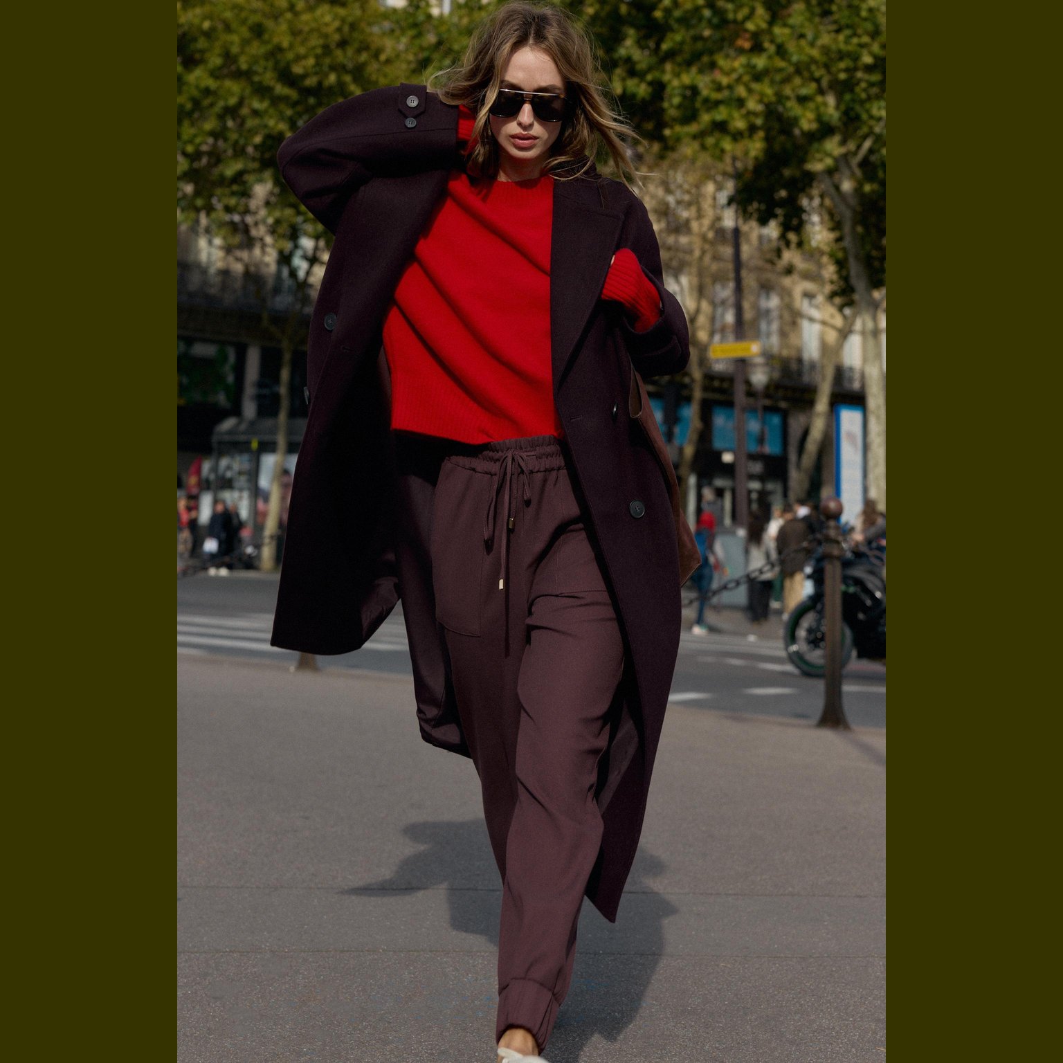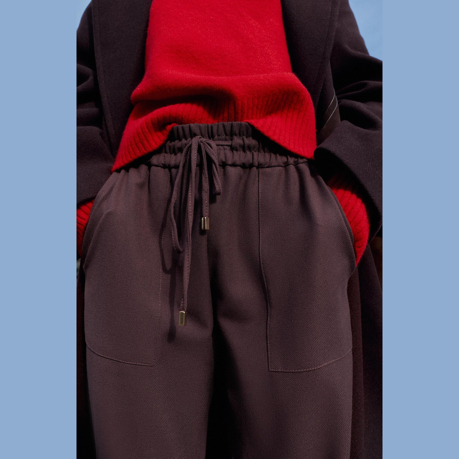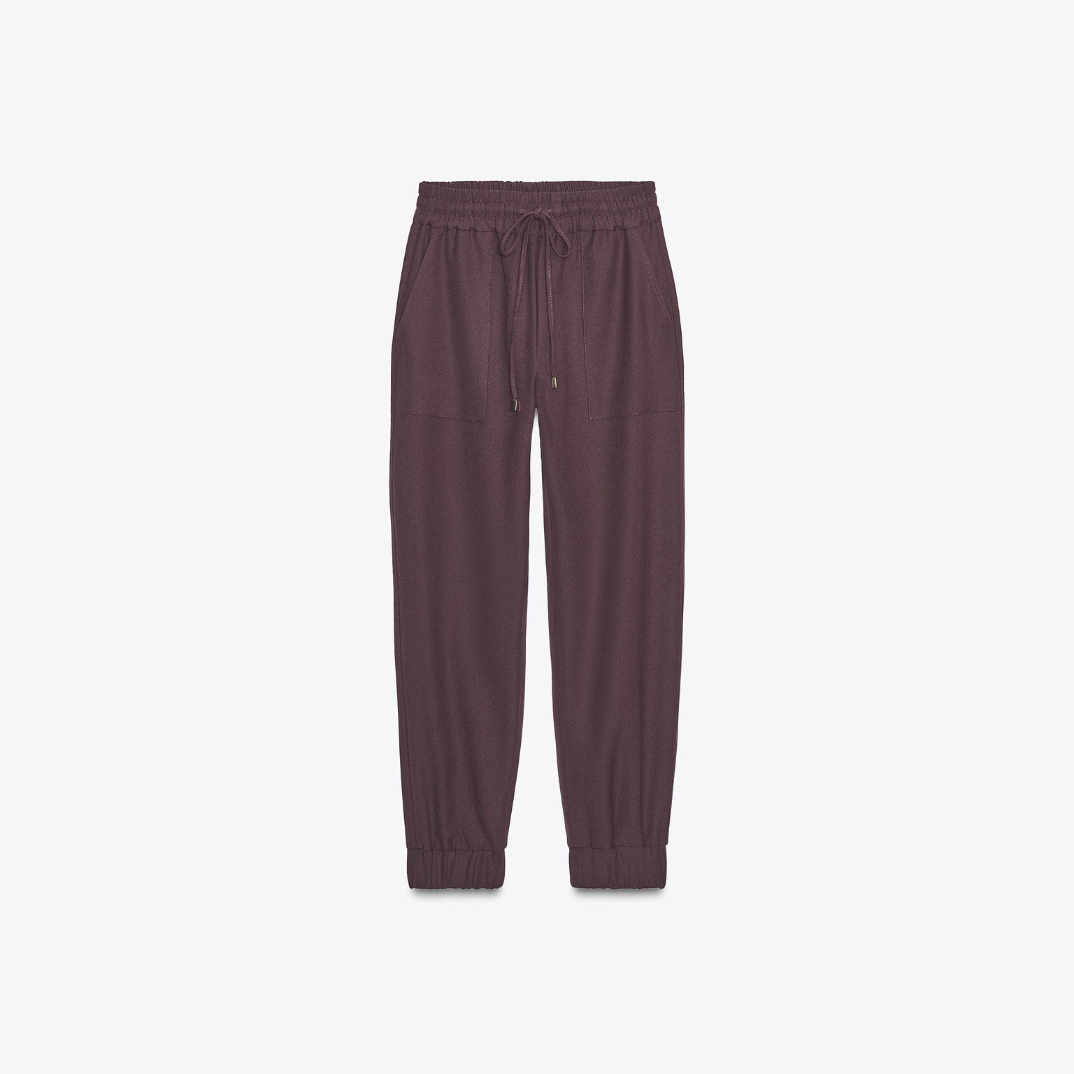 بنطال بقصّة مستقيمة مع حافة مطاطية – لون خمري – Burgundy (Cuffed Hem Trousers) بنطال مريح بخصر متوسط الارتفاع مع حزام مطاطي مزوّد برباط قابل للشد. يتميز بجيوب أمامية عملية وحافة سفلية مطاطية تمنح مظهرًا عصريًا وكاجوال. خامته الناعمة تجعله مناسبًا للاستخدام اليومي.