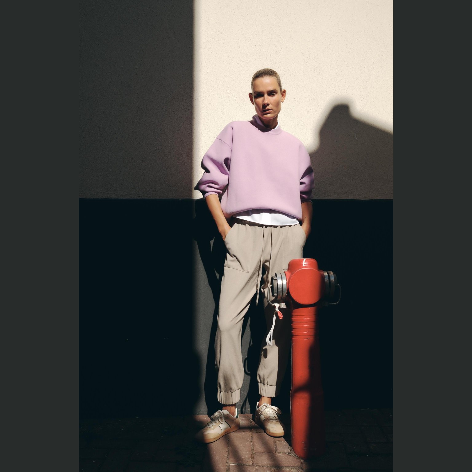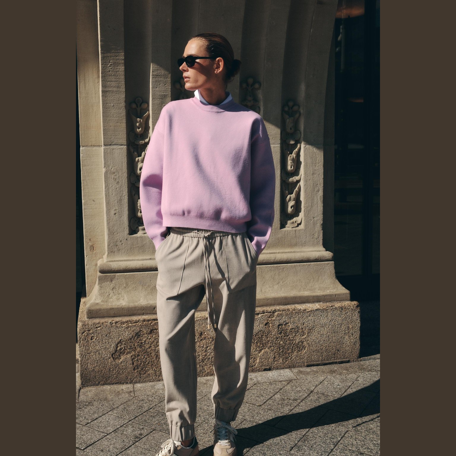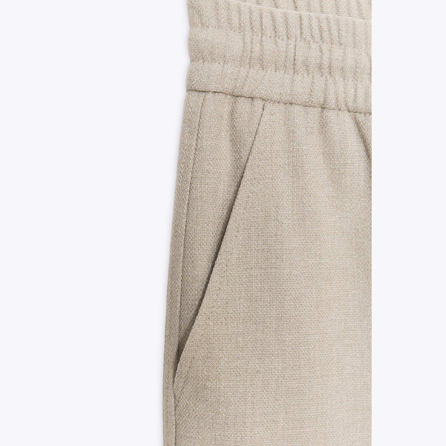 بنطال بقصّة مستقيمة مع حافة مطاطية – لون رملي ميلانج – Sand Marl (Cuffed Hem Trousers) بنطال مريح بخصر متوسط الارتفاع مع حزام مطاطي مزوّد برباط قابل للشد. يتميز بجيوب أمامية عملية وحافة سفلية مطاطية تمنح مظهرًا عصريًا وكاجوال. خامته الناعمة تجعله مناسبًا للاستخدام اليومي.