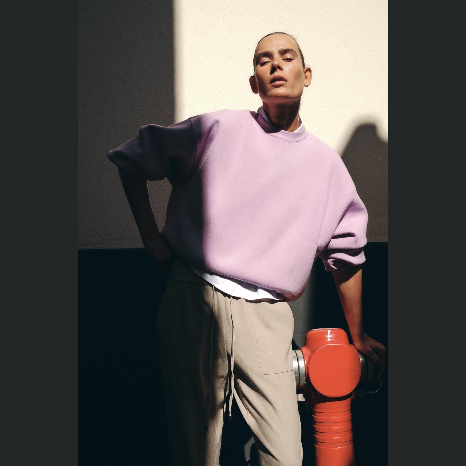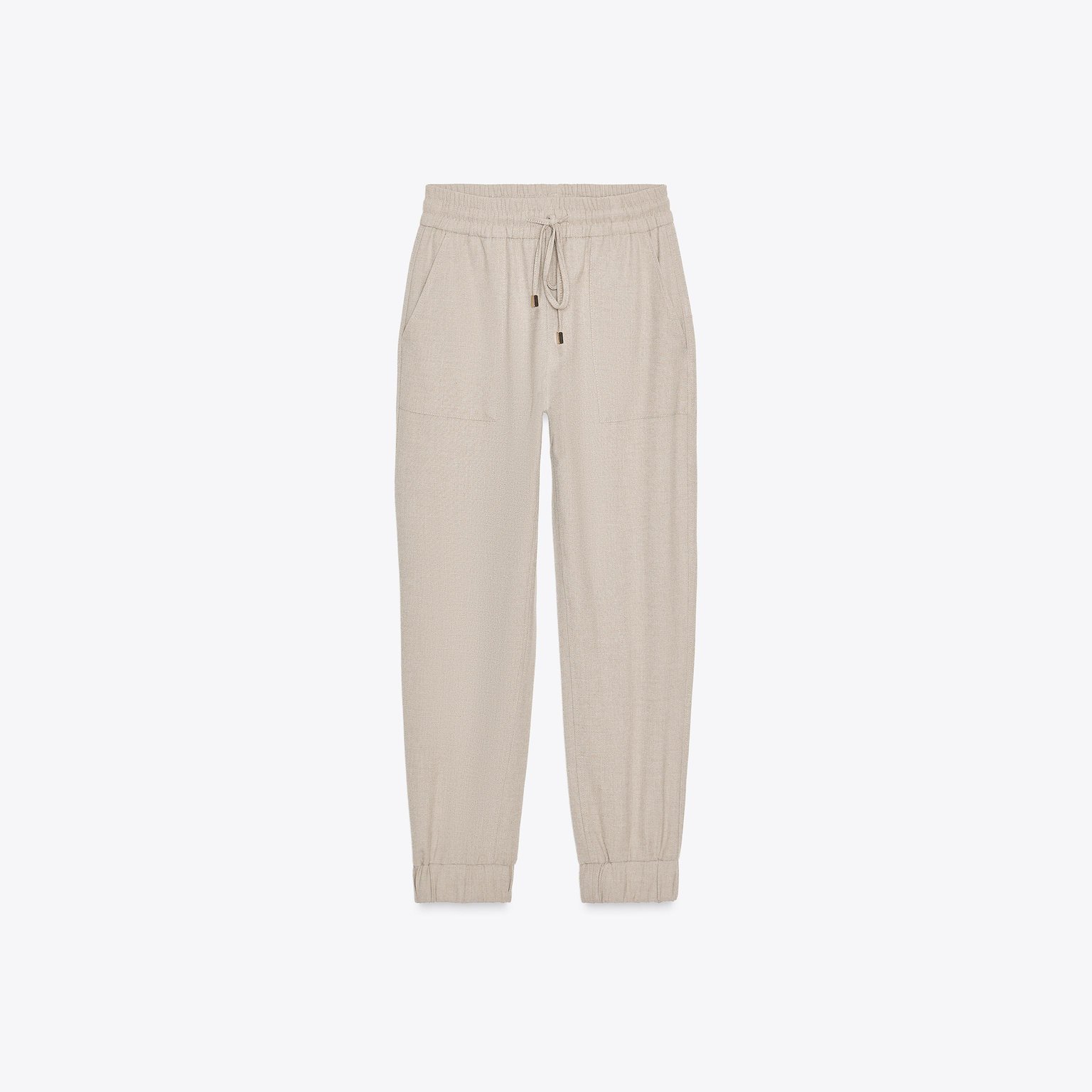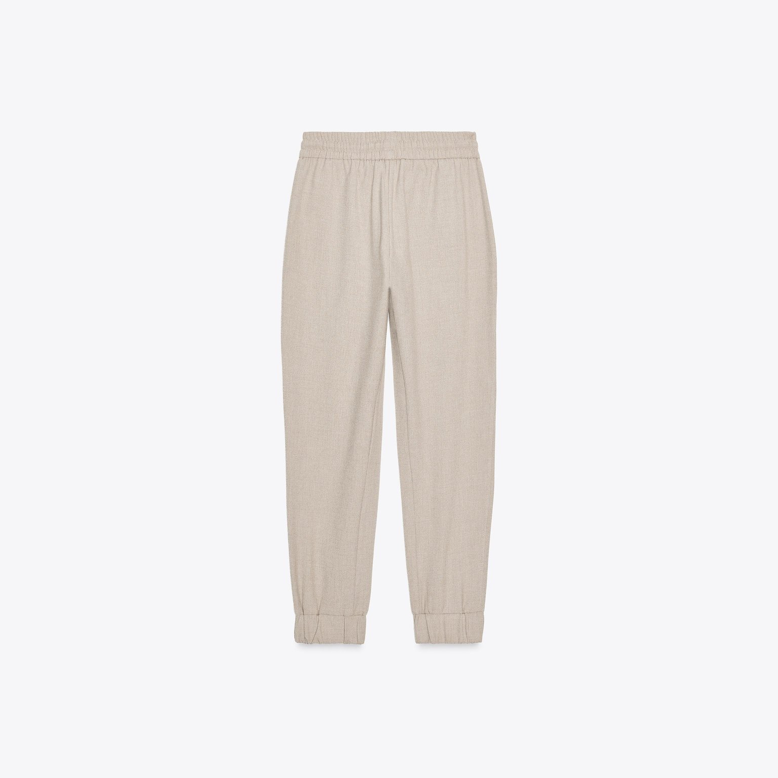بنطال بقصّة مستقيمة مع حافة مطاطية – لون رملي ميلانج – Sand Marl (Cuffed Hem Trousers) بنطال مريح بخصر متوسط الارتفاع مع حزام مطاطي مزوّد برباط قابل للشد. يتميز بجيوب أمامية عملية وحافة سفلية مطاطية تمنح مظهرًا عصريًا وكاجوال. خامته الناعمة تجعله مناسبًا للاستخدام اليومي.