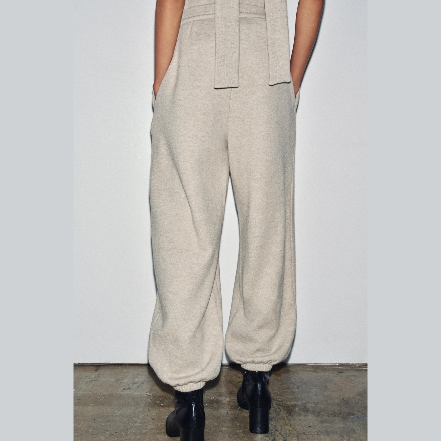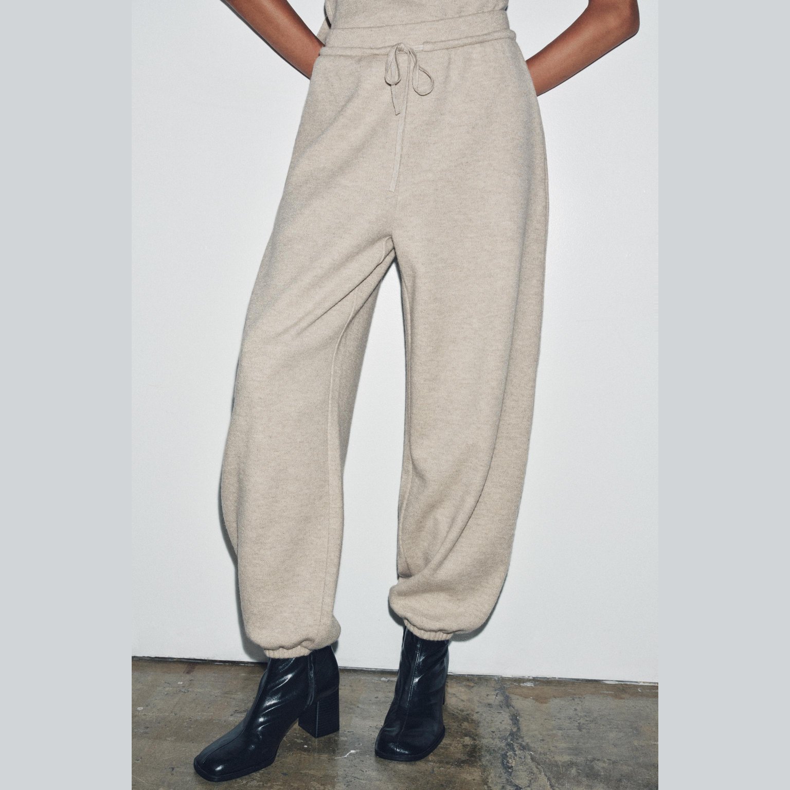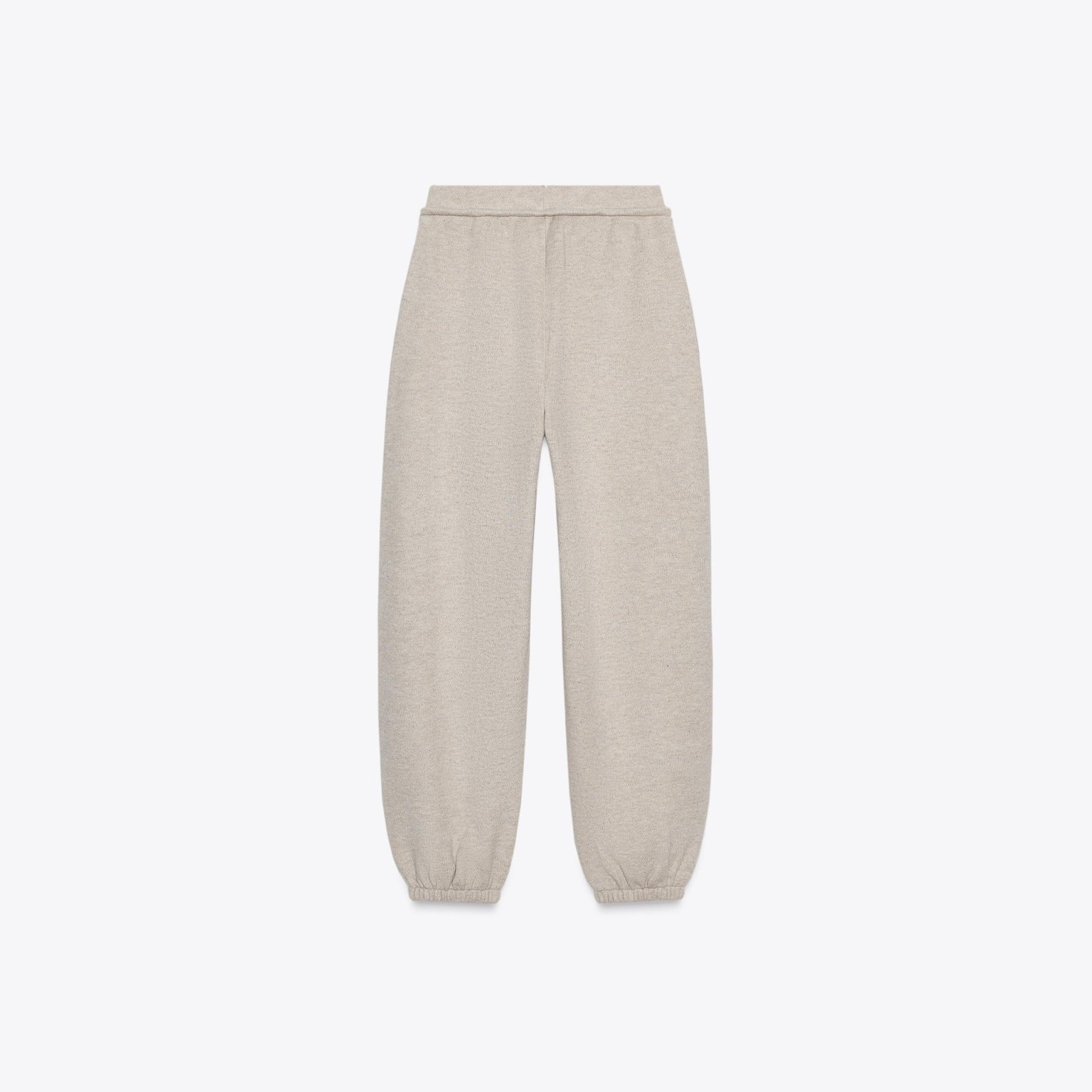 بنطال جوجر ناعم – لون بيج ميلانج – Beige Marl (Soft Jogging Trousers) بنطال مريح بخصر متوسط الارتفاع مع حزام مطاطي مزوّد برباط قابل للشد. يتميز بخامة ناعمة وقصّة مستقيمة تنتهي بحافة مطاطية، مما يجعله خيارًا مثاليًا للإطلالات اليومية والكاجوال المريحة.