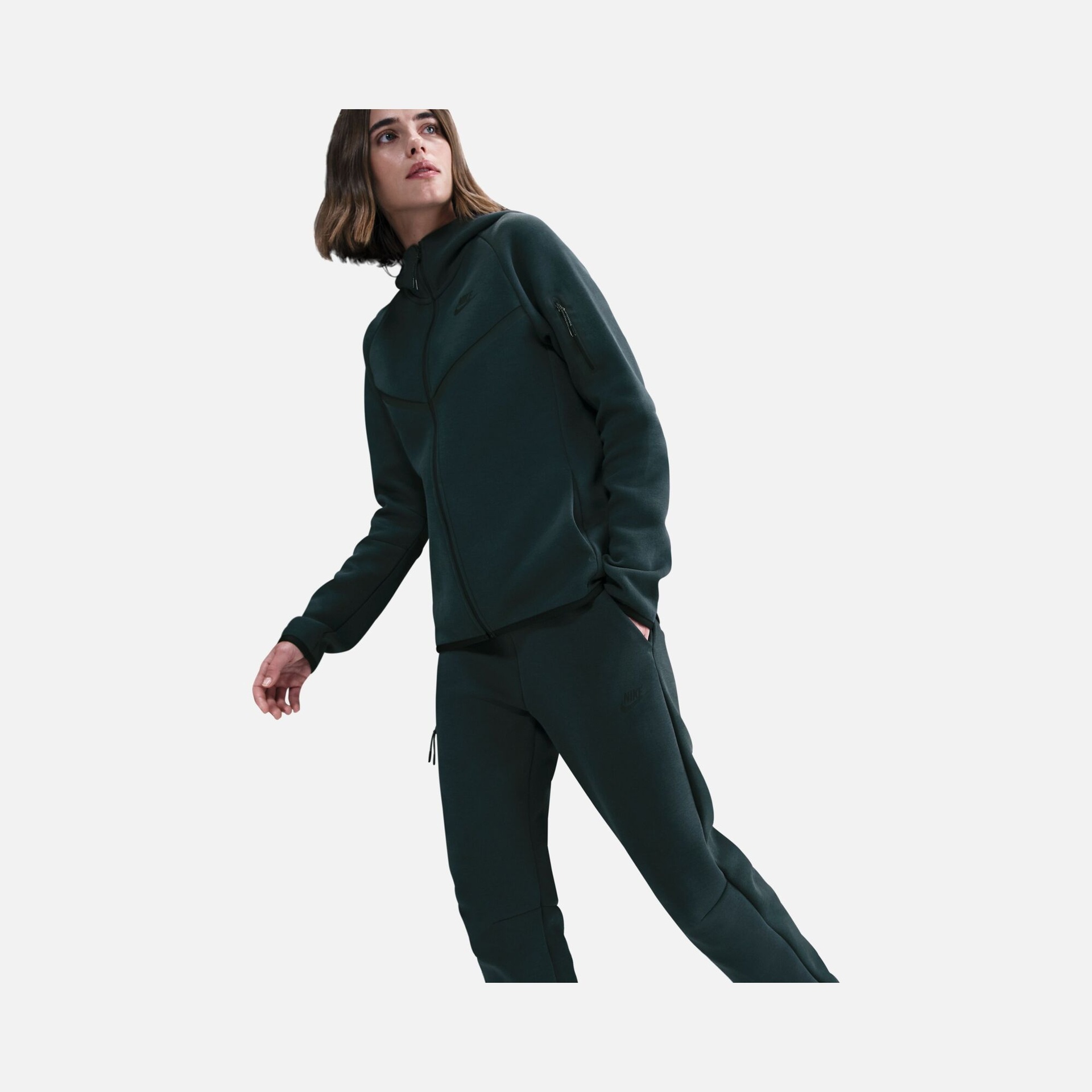 • تفاصيل التصميم: جيب جانبي عميق مميز بسحاب عمودي وشريط لاصق يجسد هوية "Tech Fleece" الكلاسيكية.