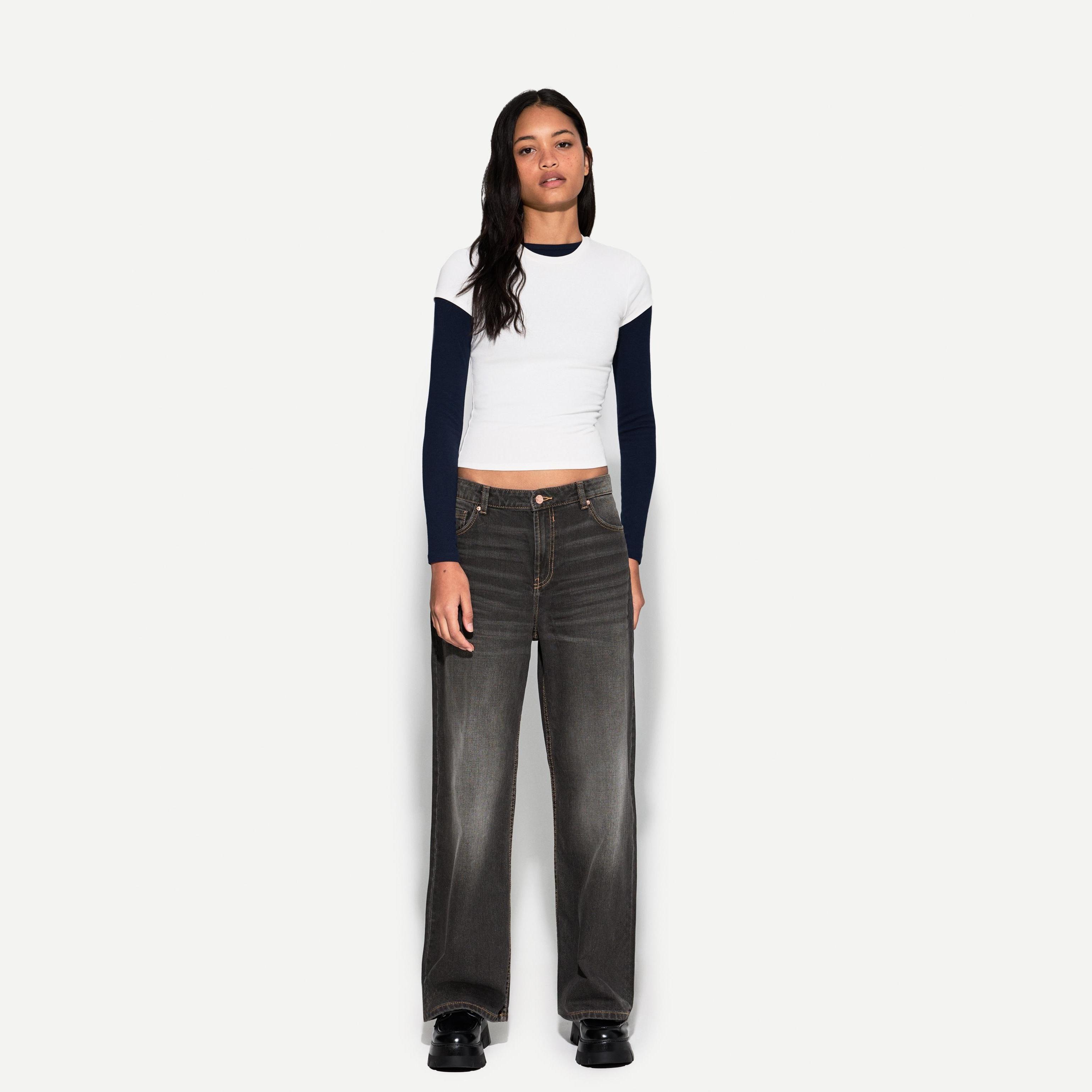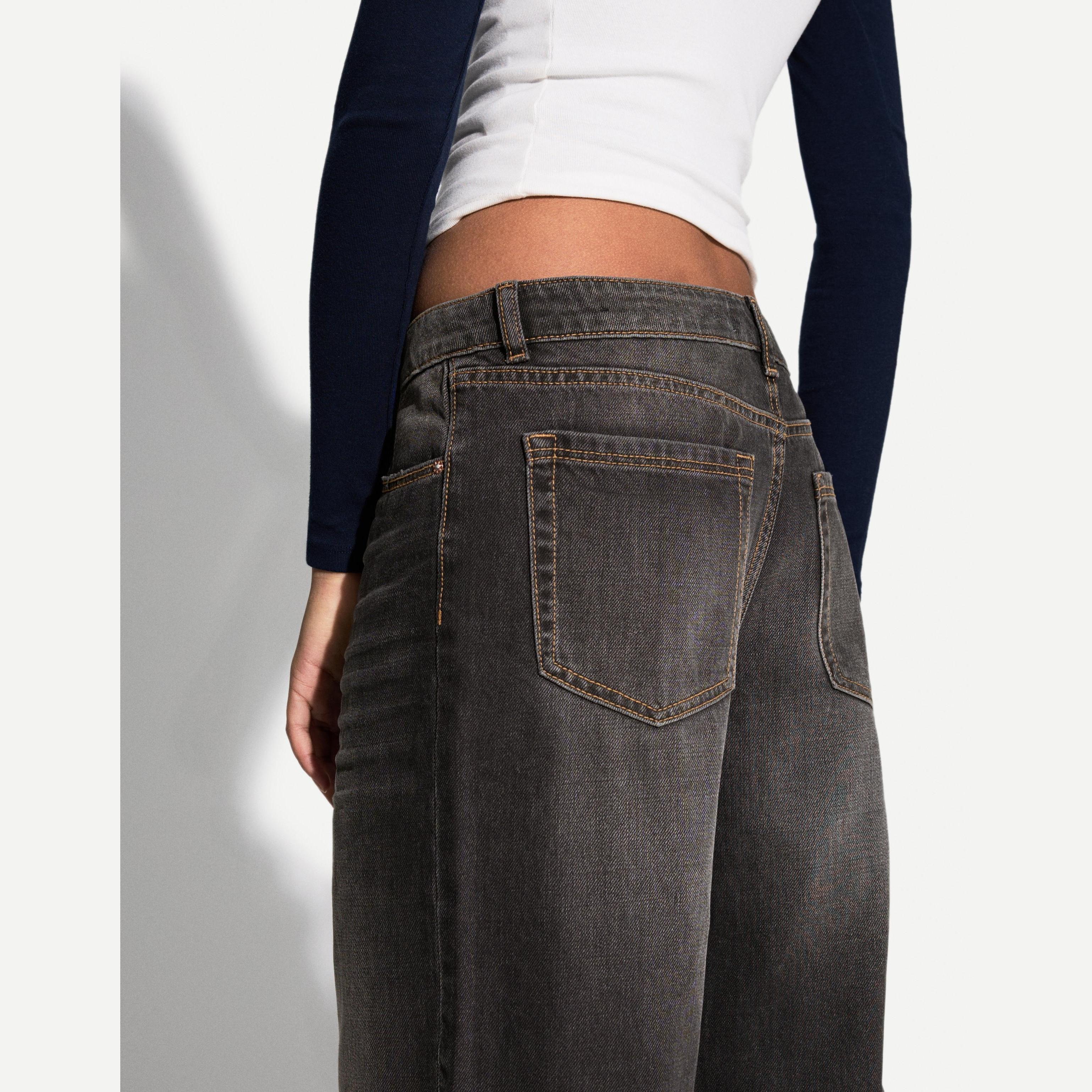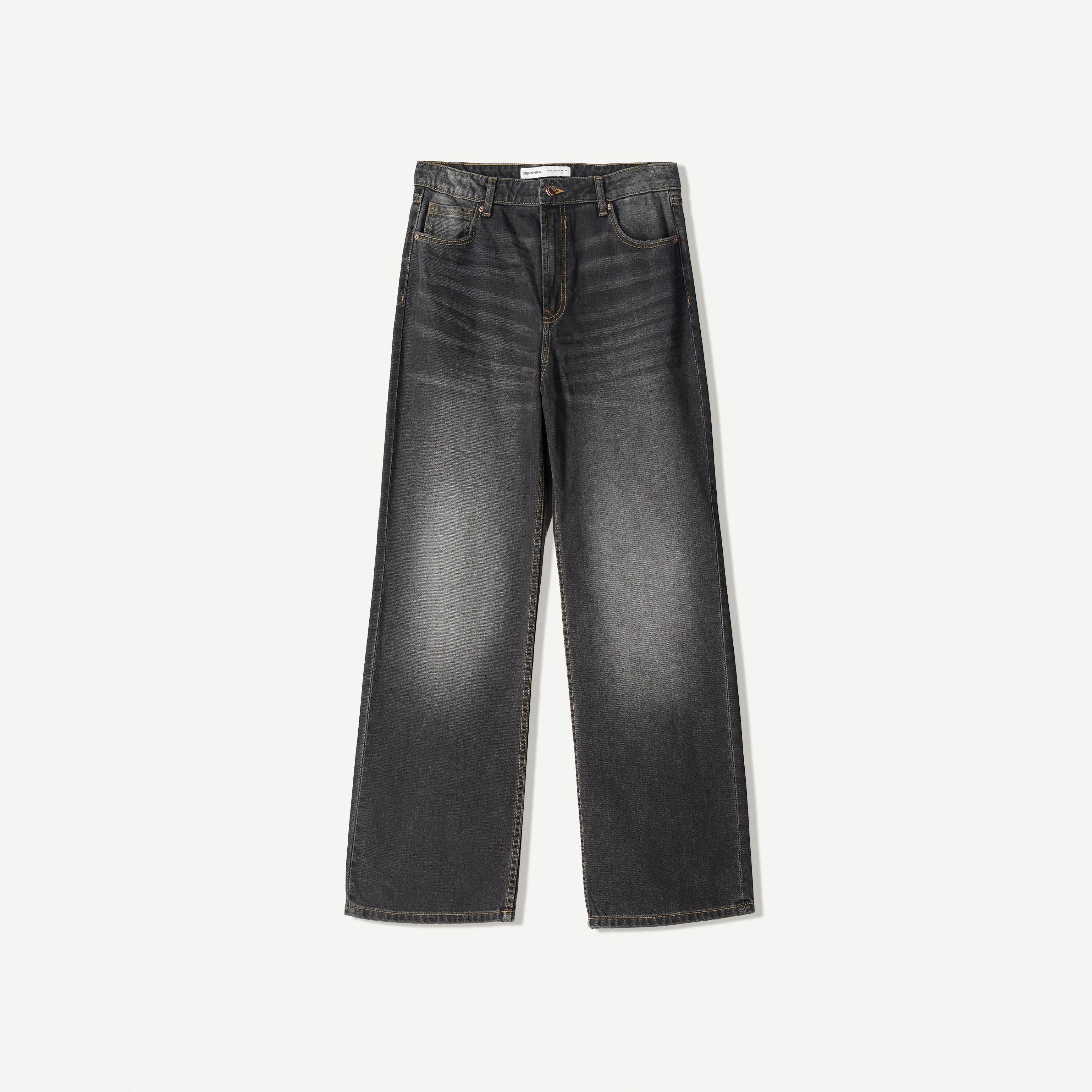 Bershka – جينز باغي نسائي بلون أسود بقصّة واسعة وعصرية