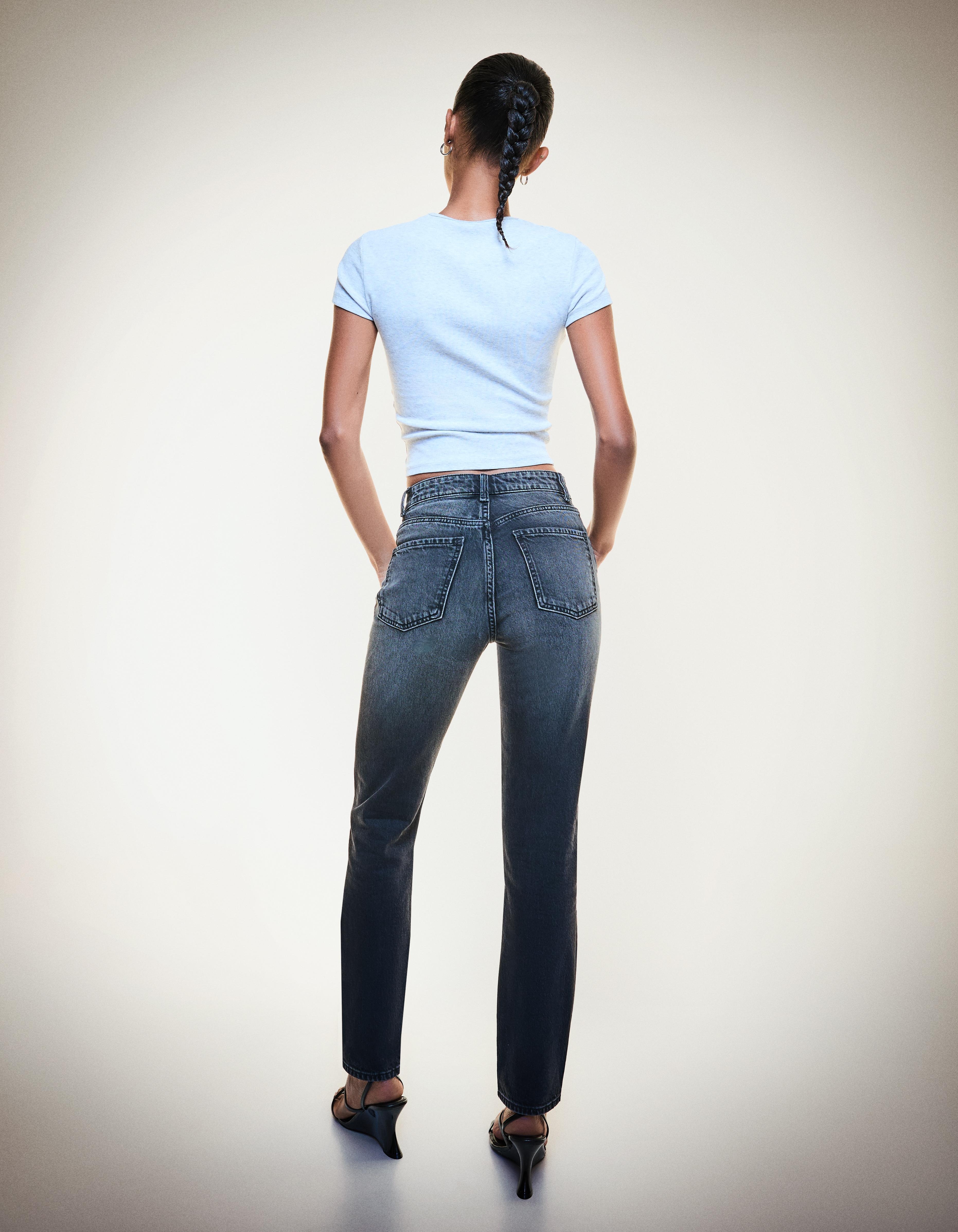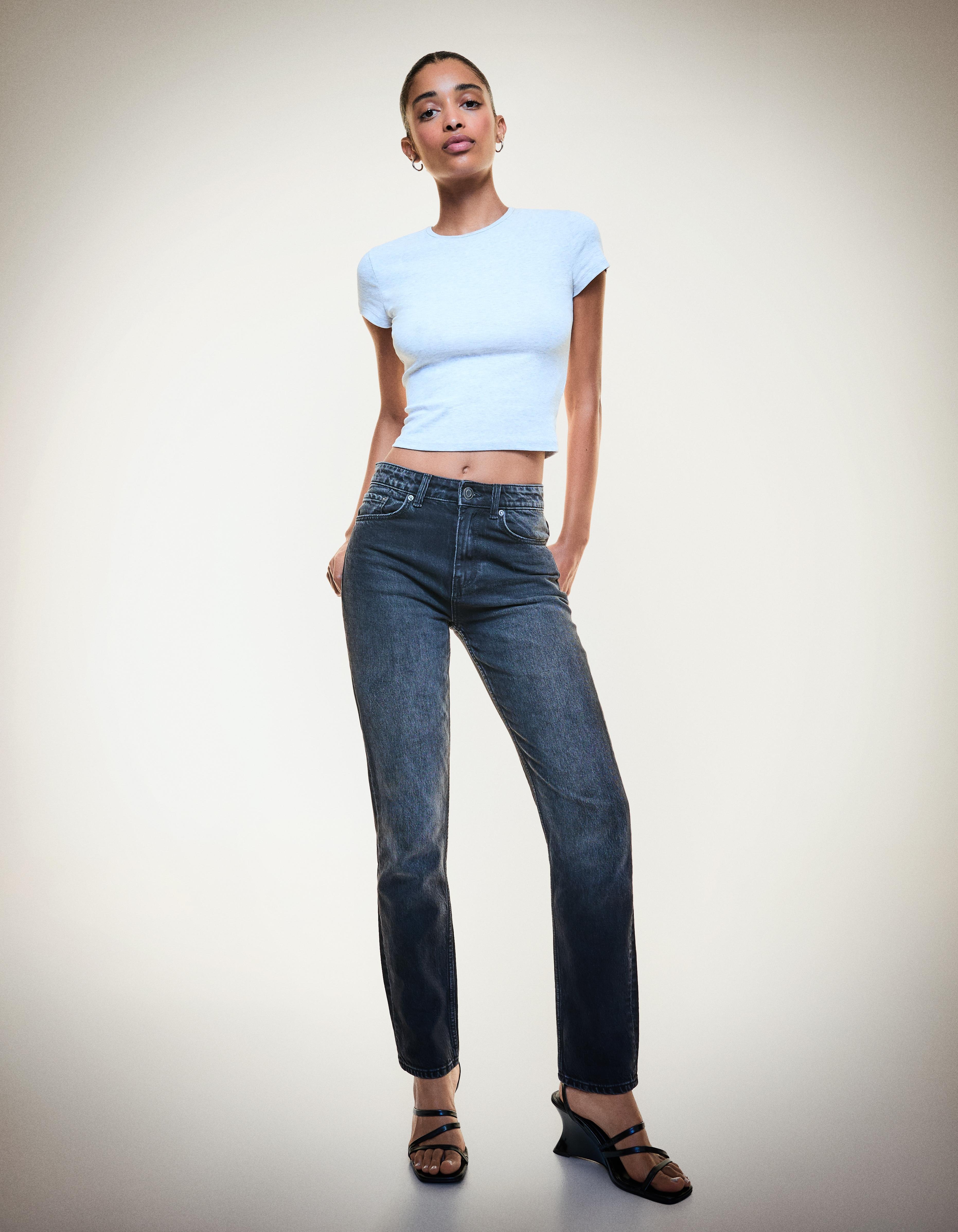 Bershka – جينز موم نسائي بخصر مرتفع وقصّة مريحة بلون أسود