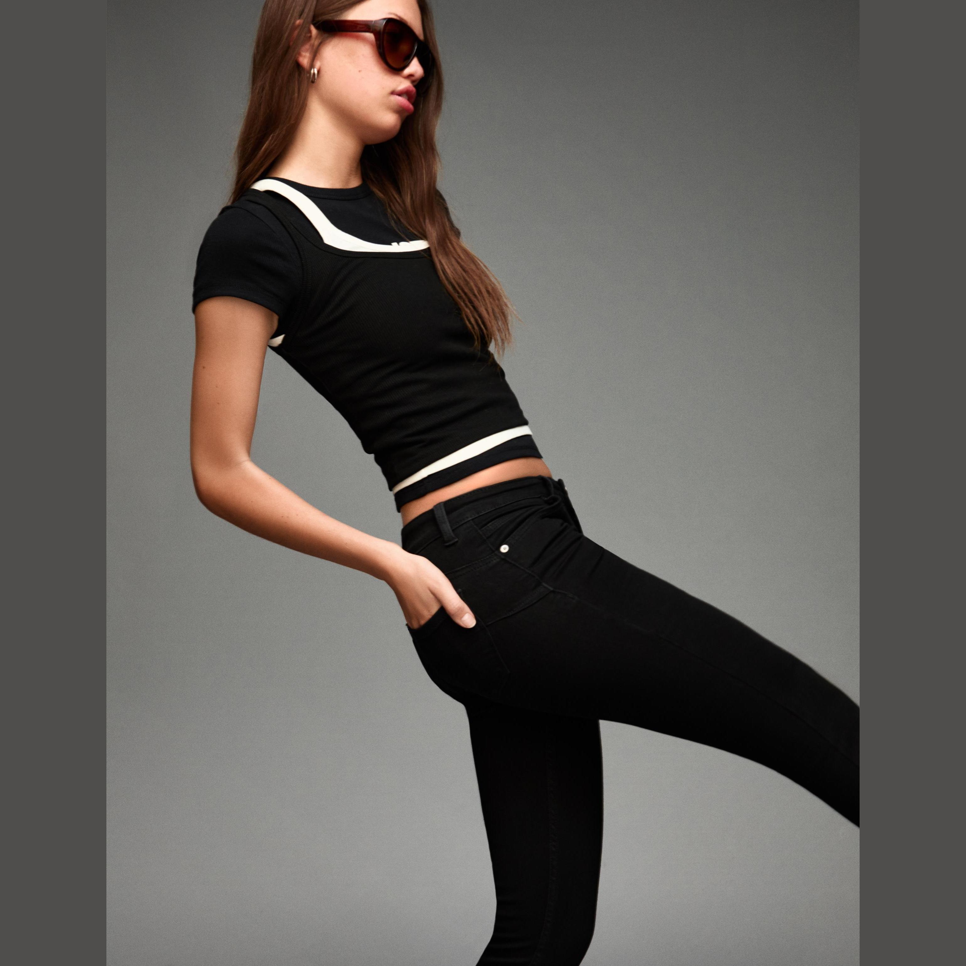 Bershka – جينز سكيني Push-up نسائي بلون أسود بقصّة ضيّقة وخصر متوسط