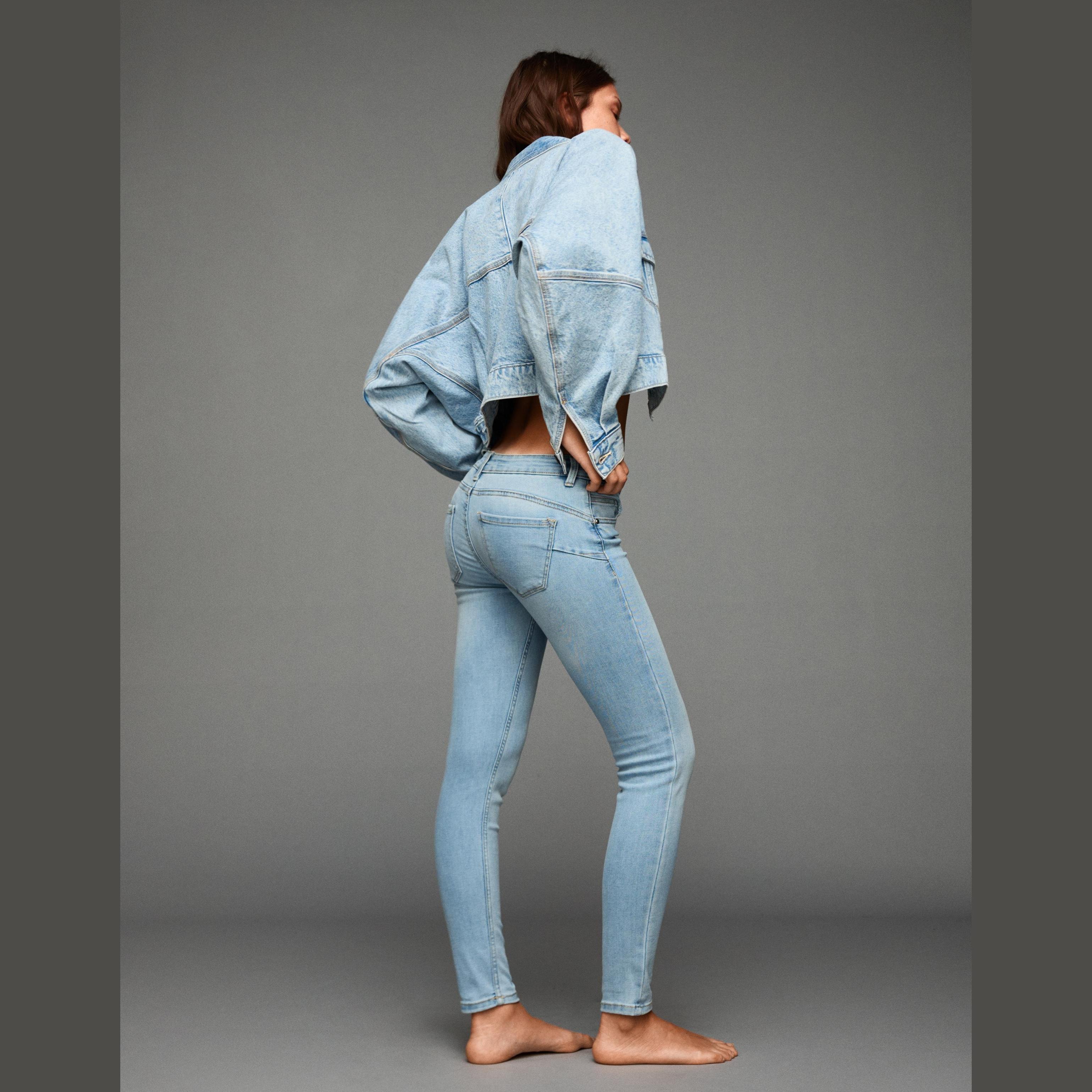 Bershka – جينز سكيني Push-up نسائي بلون أزرق فاتح بقصّة ضيّقة وخصر متوسط