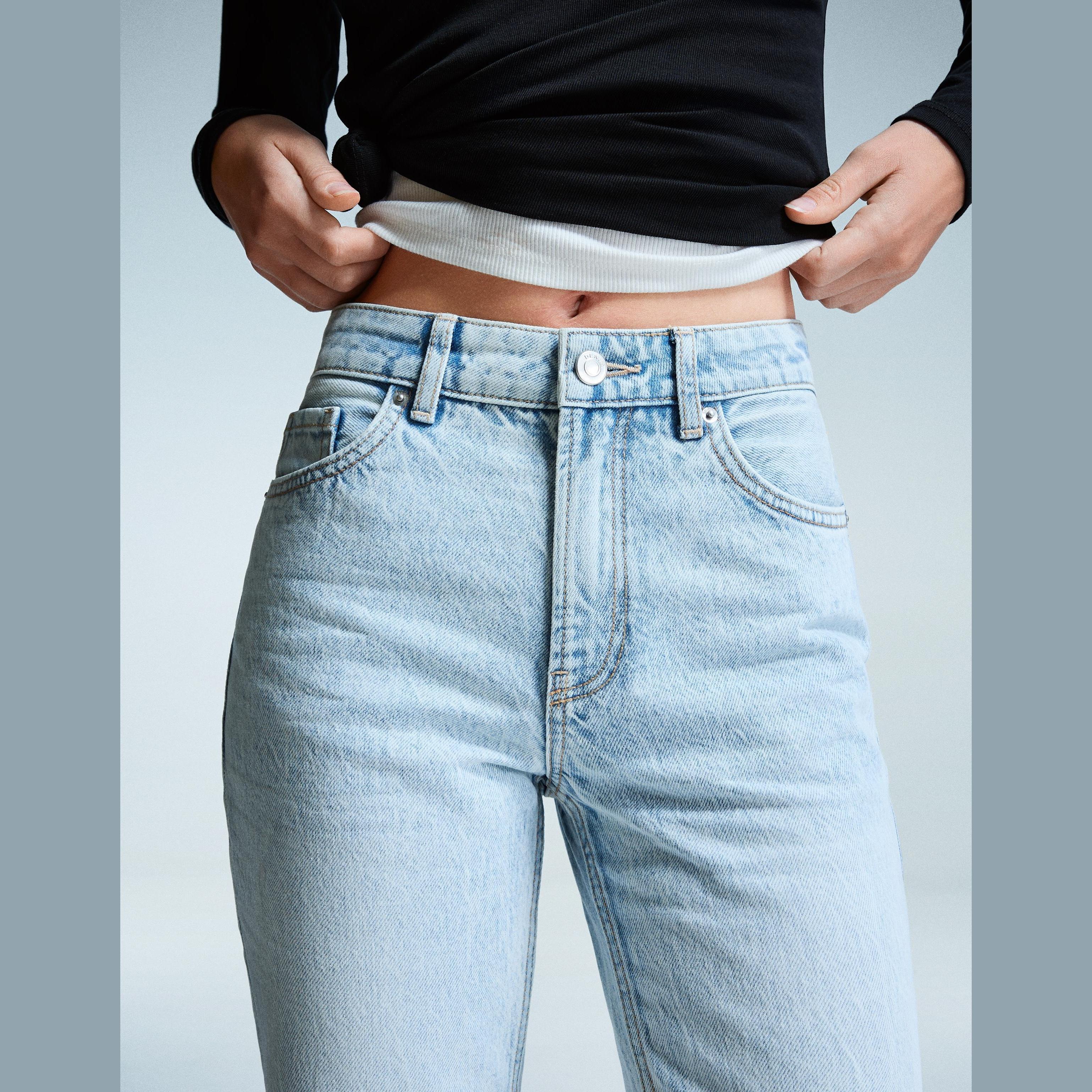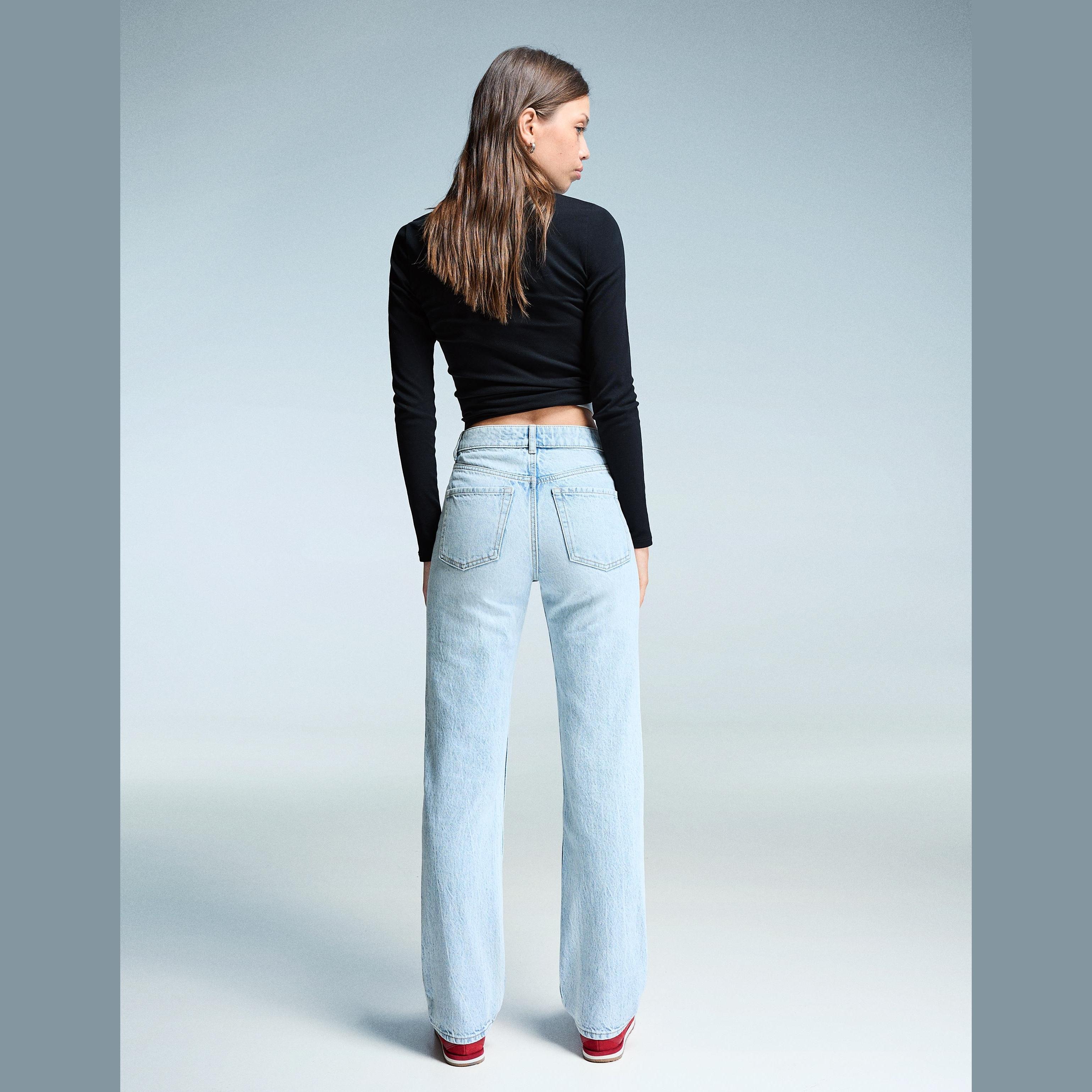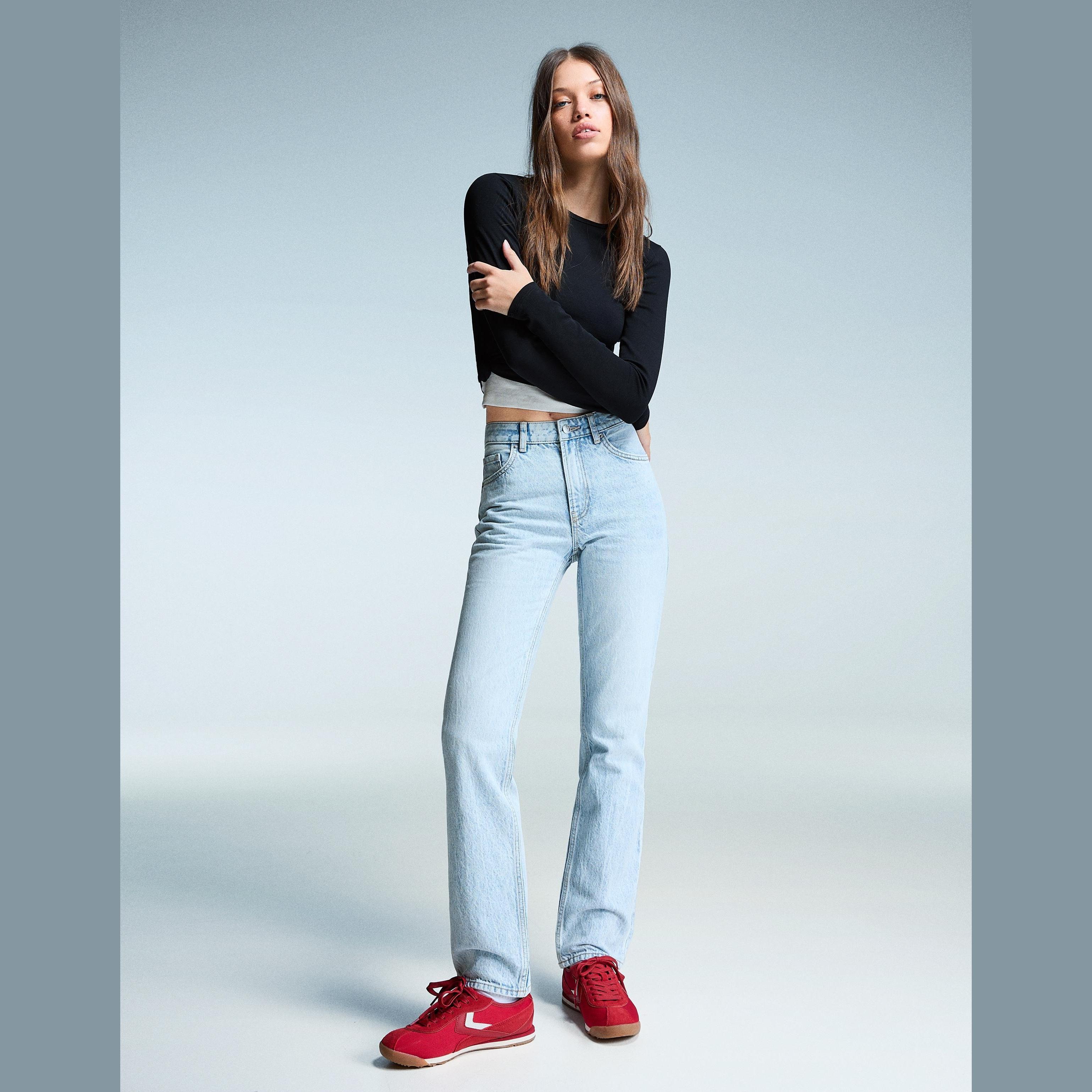 Bershka – جينز مستقيم القصة للفتيات بلون أزرق فاتح
