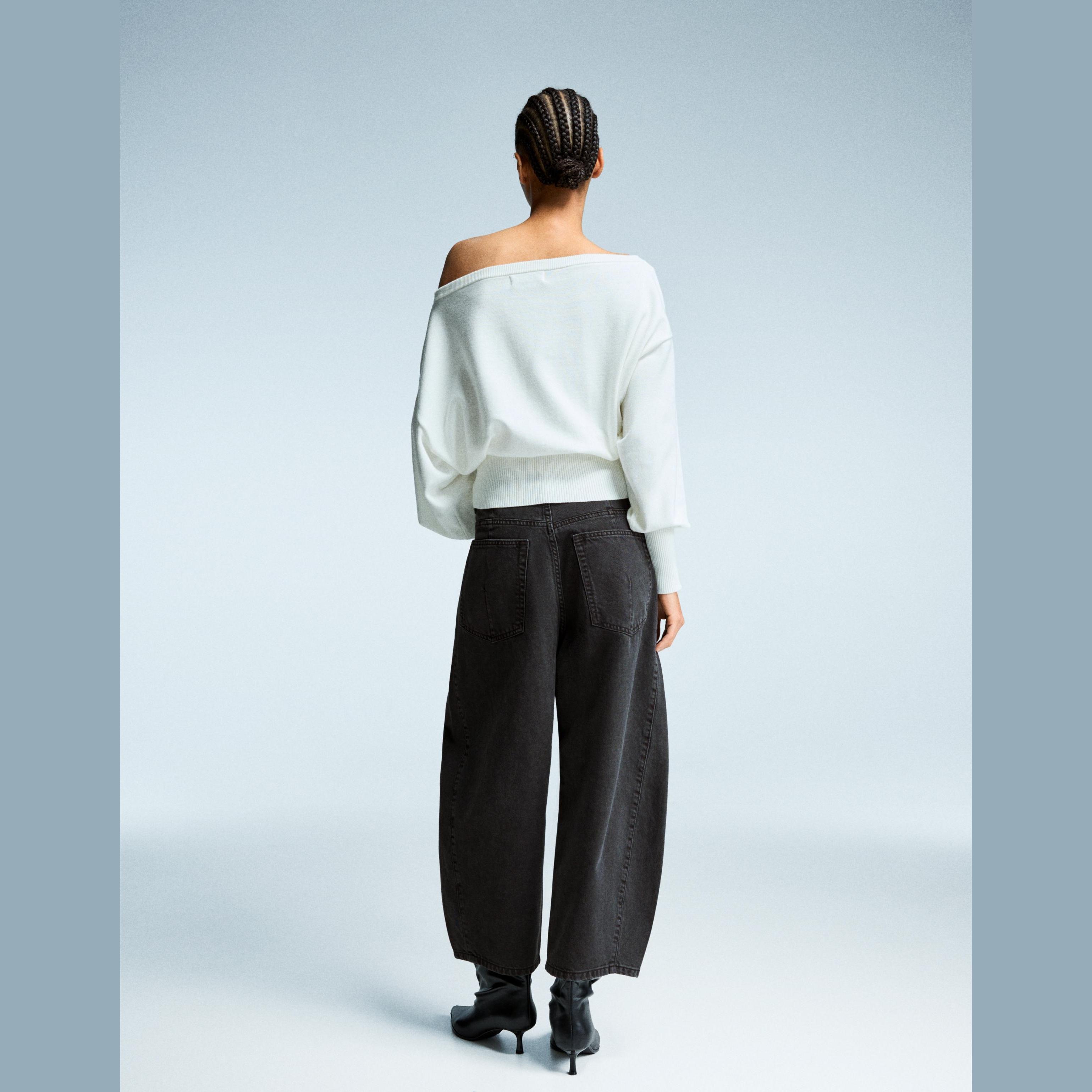 تميّزي بإطلالة عصرية تجمع بين الراحة والستايل مع بنطال Cropped Barrel من Bershka. تصميمه الواسع من الأعلى والمضيق نحو الأسفل يمنحك مظهرًا فريدًا، بينما يضفي اللون الرمادي لمسة حيادية أنيقة تناسب مختلف التنسيقات اليومية.
