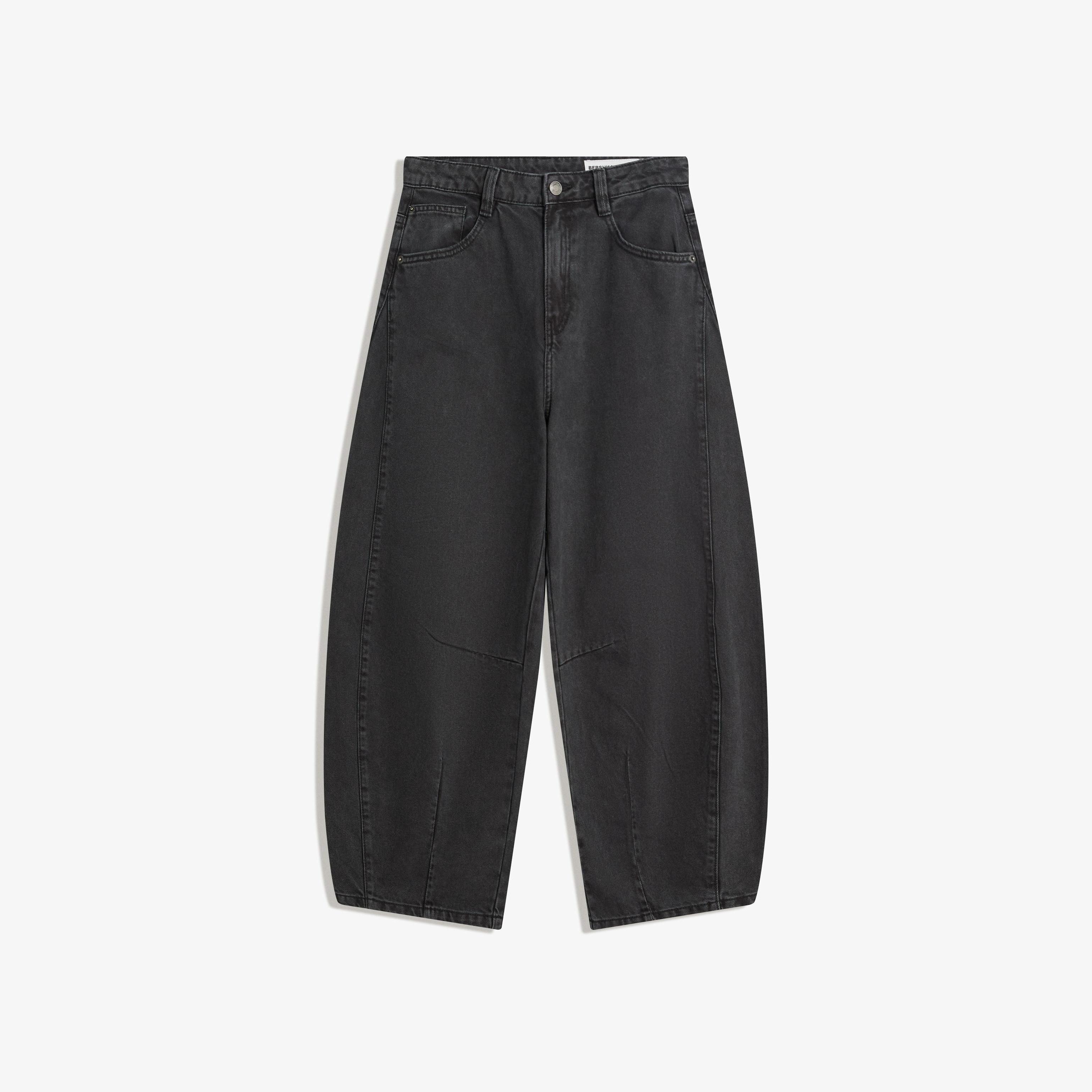 Bershka – بنطال كروب بقصّة Barrel للنساء بلون رمادي