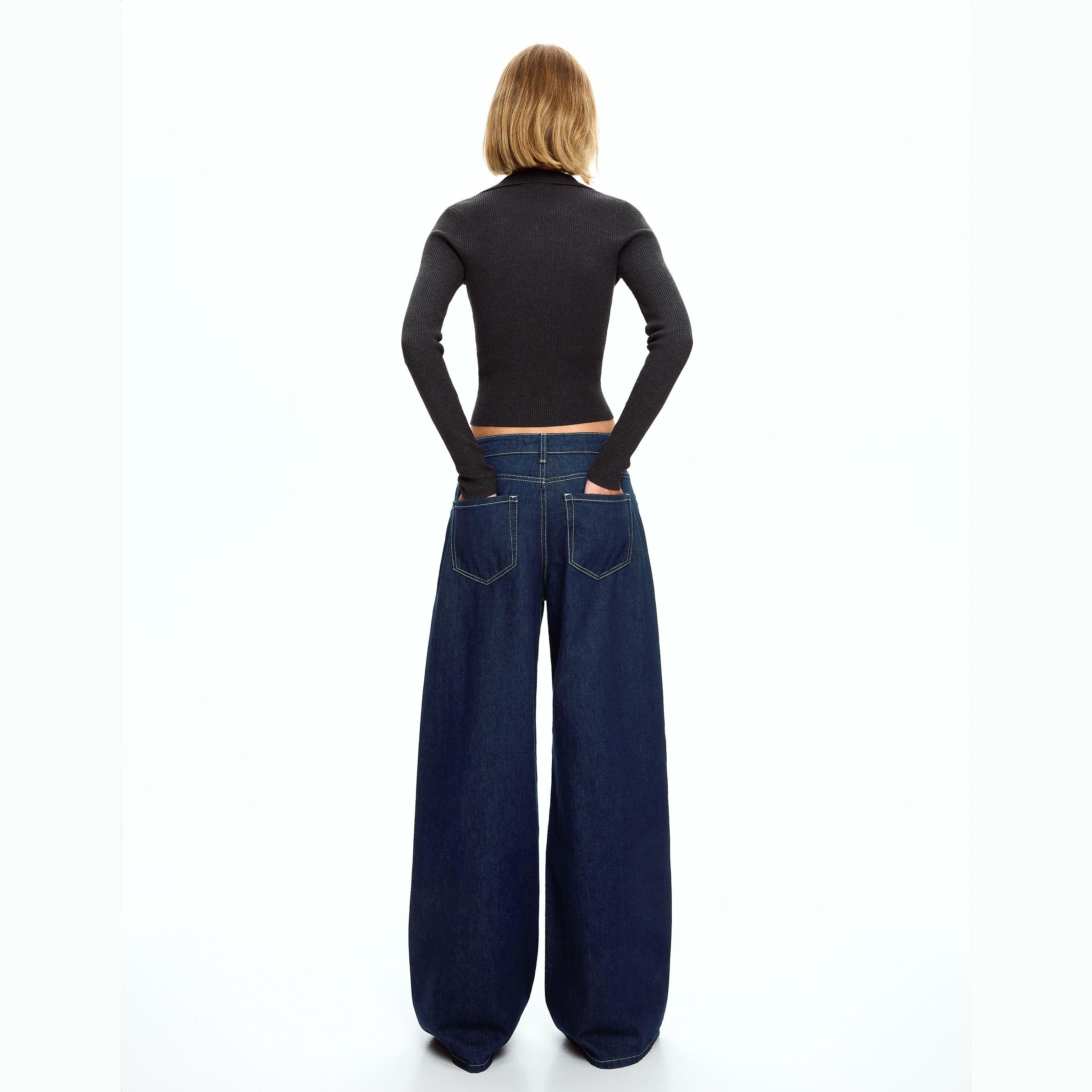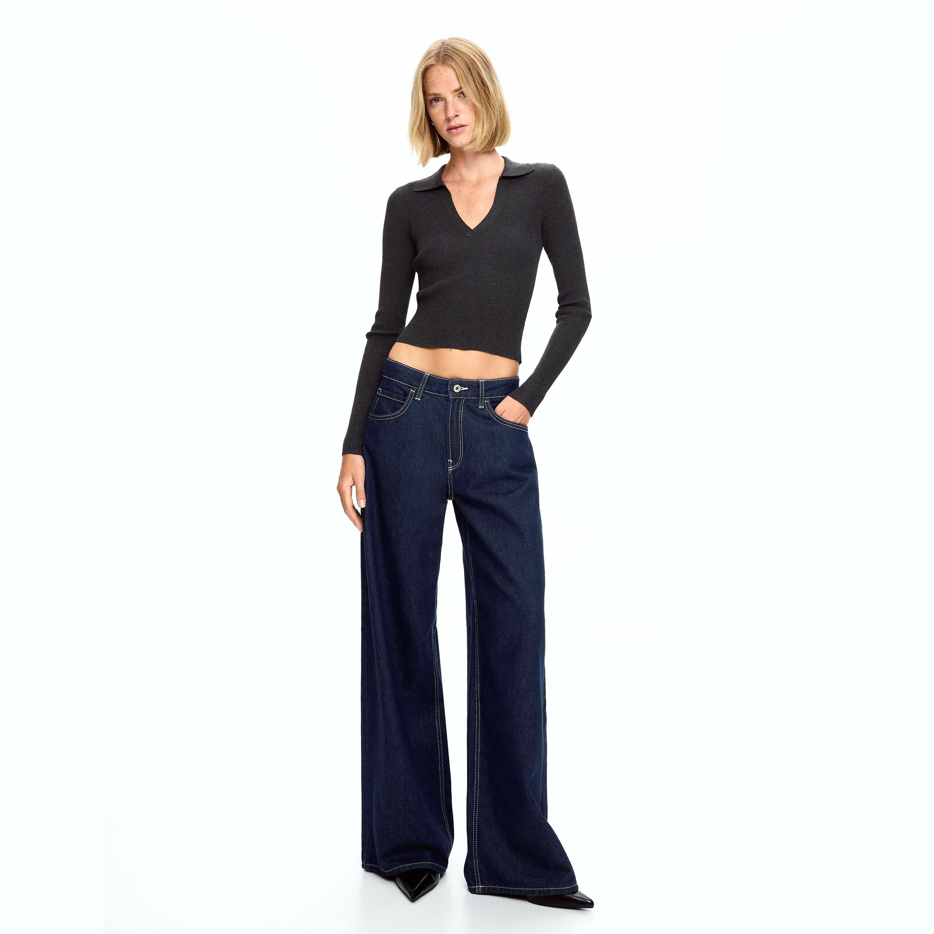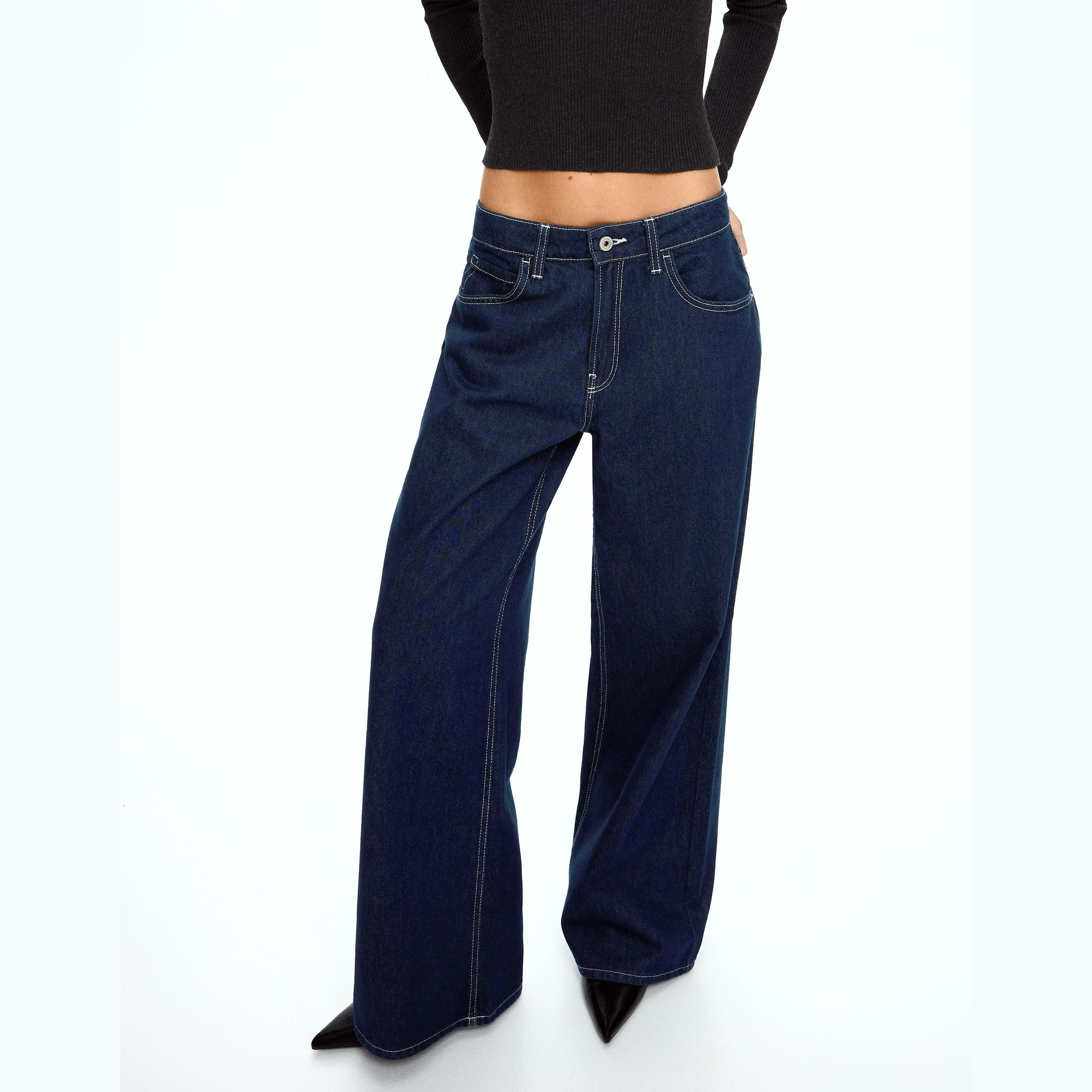 Bershka – جينز واسع الساق للفتيات بلون كحلي