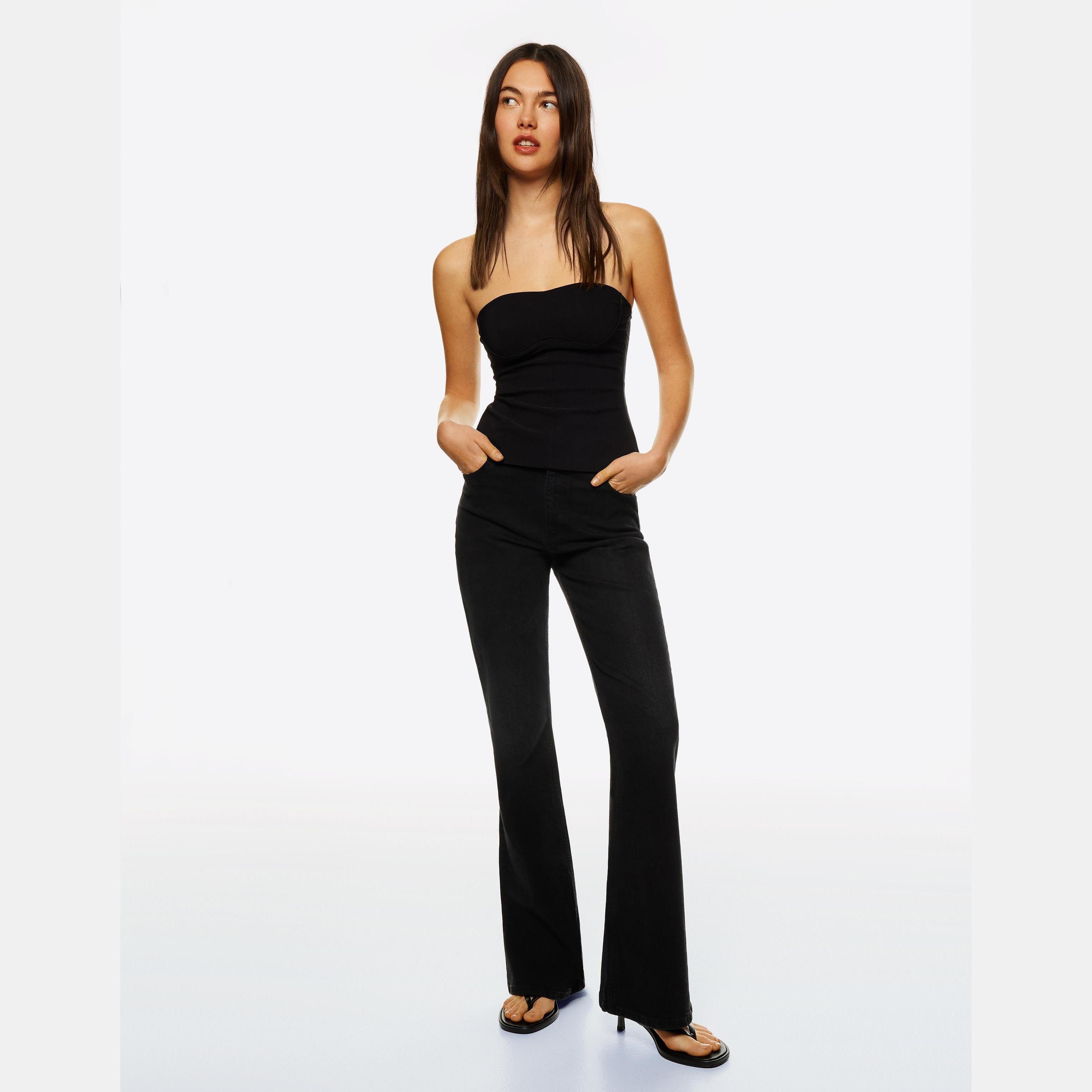 Bershka – جينز بقصّة Flared للفتيات بلون أسود