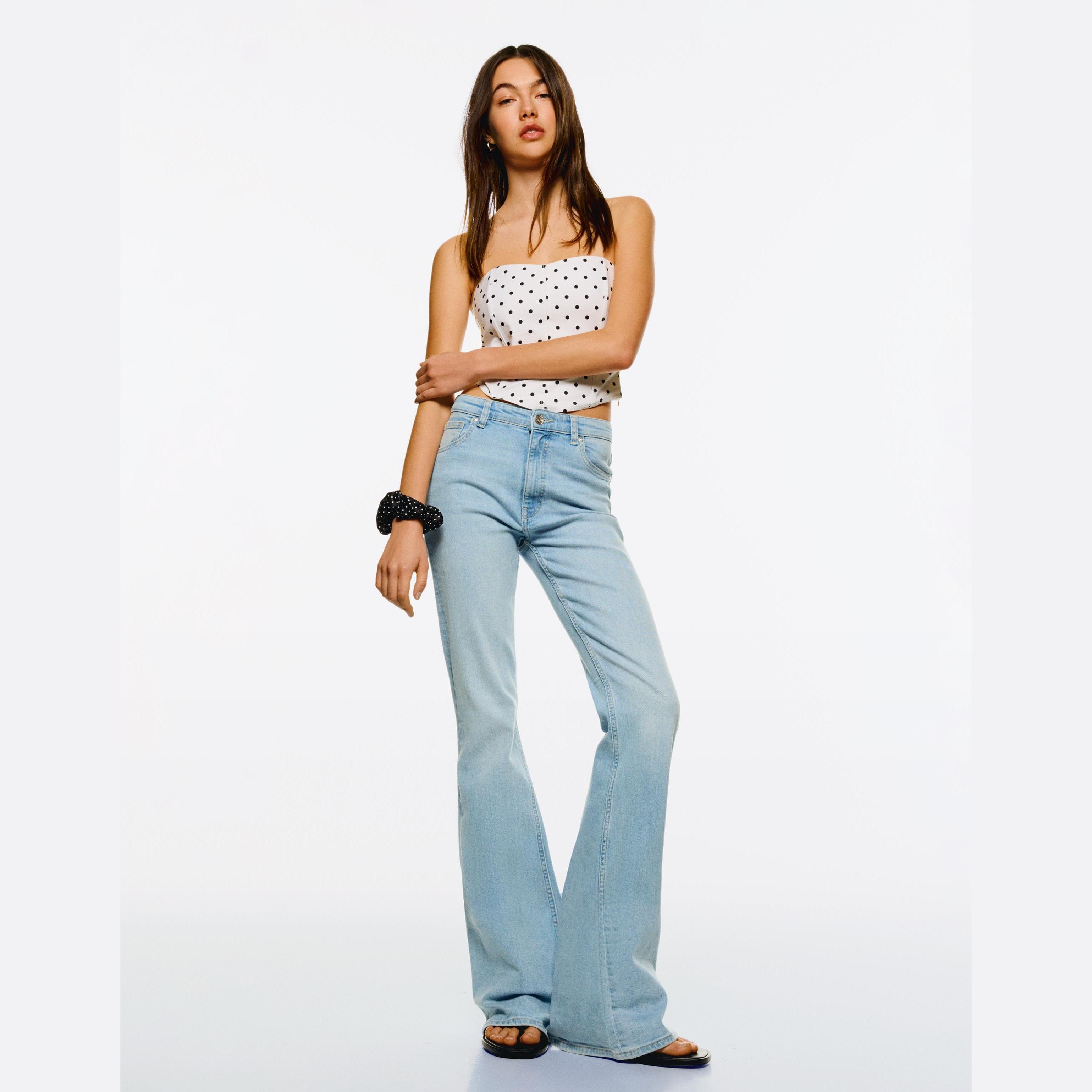 Bershka – جينز بقصّة Flared للفتيات بلون أزرق فاتح