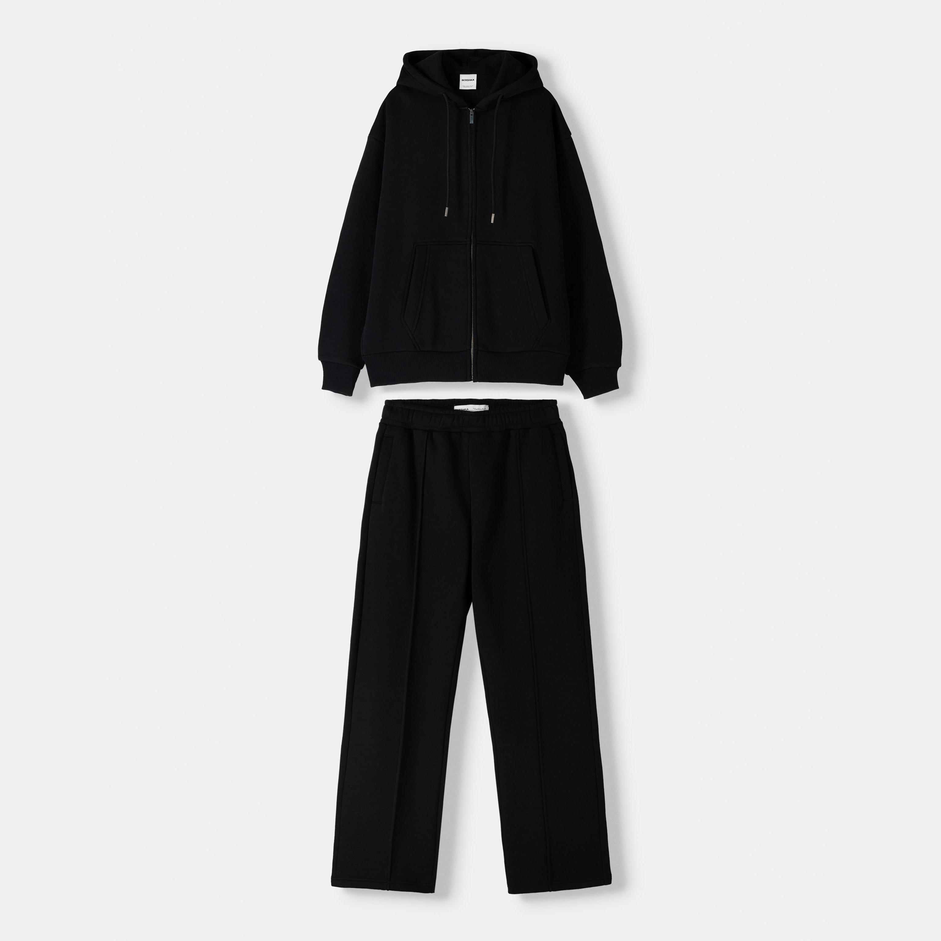 احصل على إطلالة متكاملة وعصرية مع هذا الطقم من Bershka الذي يجمع بين سويت شيرت مريح وبنطال واسع الأرجل بلون رمادي غامق حيادي. تصميمه الموحد يمنحك تنسيقًا جاهزًا، مثاليًا للراحة اليومية أو الخروج بأسلوب كاجوال أنيق.