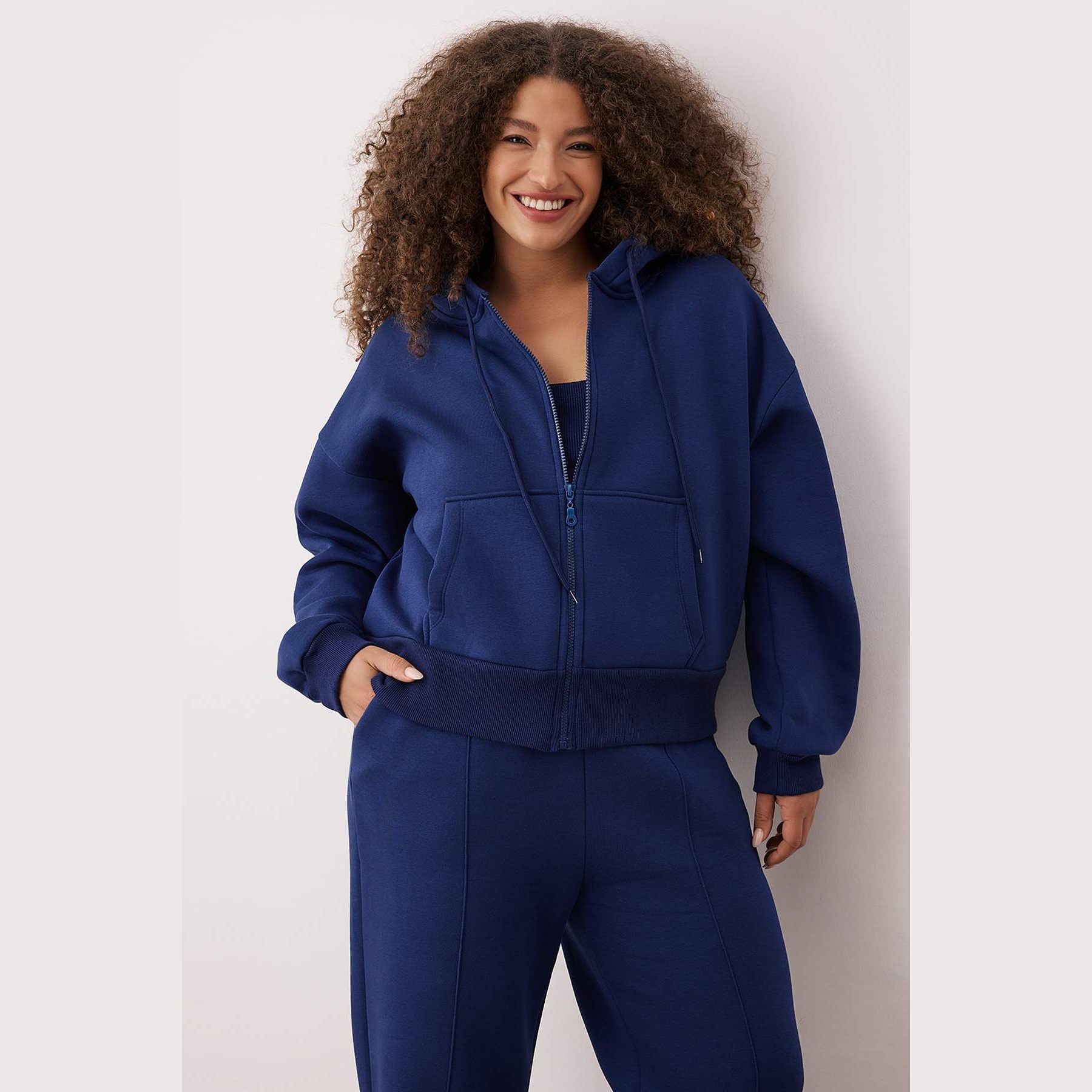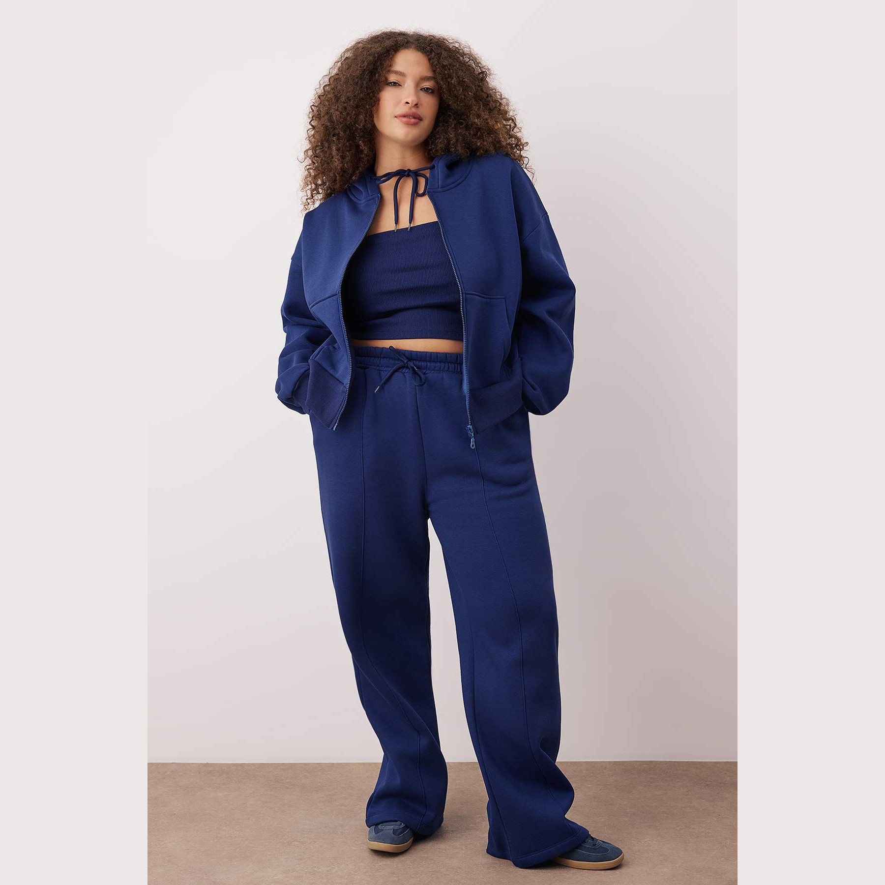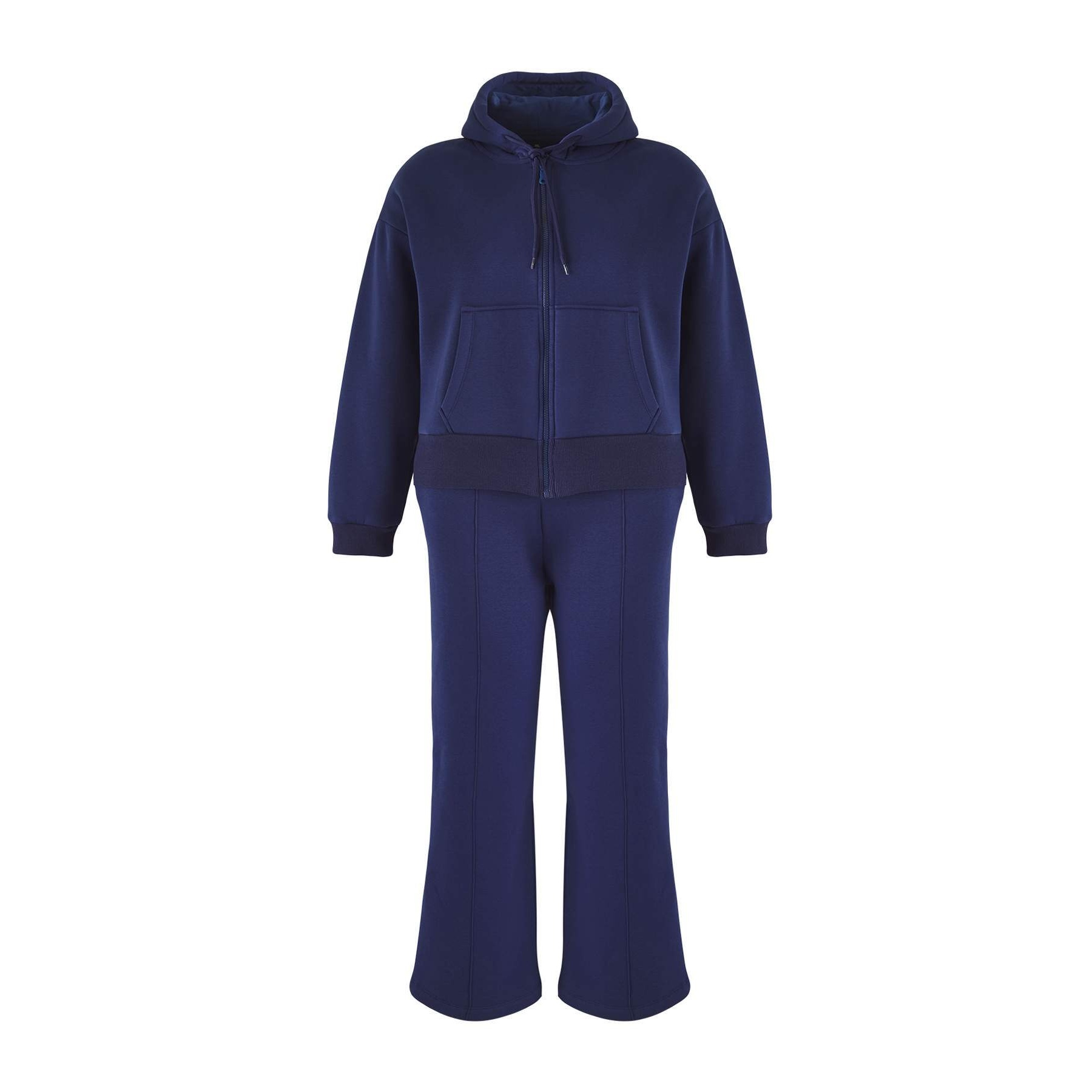 طقم رياضي مكون من كنزة بقبعة + بنطال واسع + بلوزة داخلية بلون كحلي سادة داكن من مجموعة Trendyolmilla Curve Büyük Beden – لأناقة شتوية مريحة ومحتشمة بلمسة عملية. يتميز بقصة مريحة (Relaxed Fit) مع أرجل مستقيمة وياقة بقبعة، مصنوع من خامة تريكو داخلية مبطنة (شاردون ناعم) توفر دفئًا مثاليًا في الأجواء الباردة.