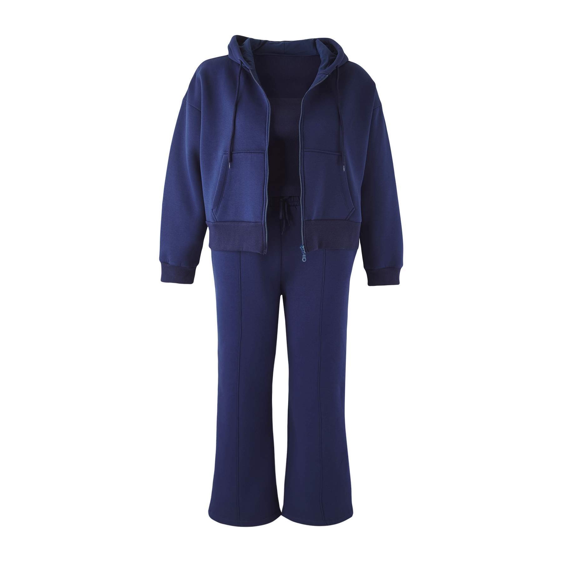 طقم رياضي نسائي 3 قطع – كحلي بقماش داخلي مبطن (تصميم محتشم، قصة مريحة)