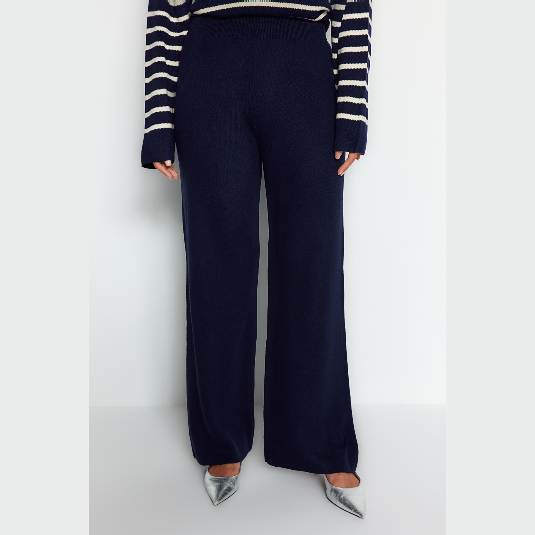 طقم أنيق بلون كحلي مزين بخطوط طولية ناعمة وياقة مربعة برباط من مجموعة Trendyolmilla Modest – لأناقة شتوية دافئة ومحتشمة بلمسة تصميمية مميزة، يتكون من كنزة طويلة بياقة مربعة ورباط أمامي مع بنطال مستقيم بخصر مرتفع وقصة مريحة، مصنوع من خامة تريكو مزدوجة الطبقة بتركيبة 100% أكريليك، ما يجعله مثاليًا للأجواء الباردة والإطلالات اليومية المحتشمة.