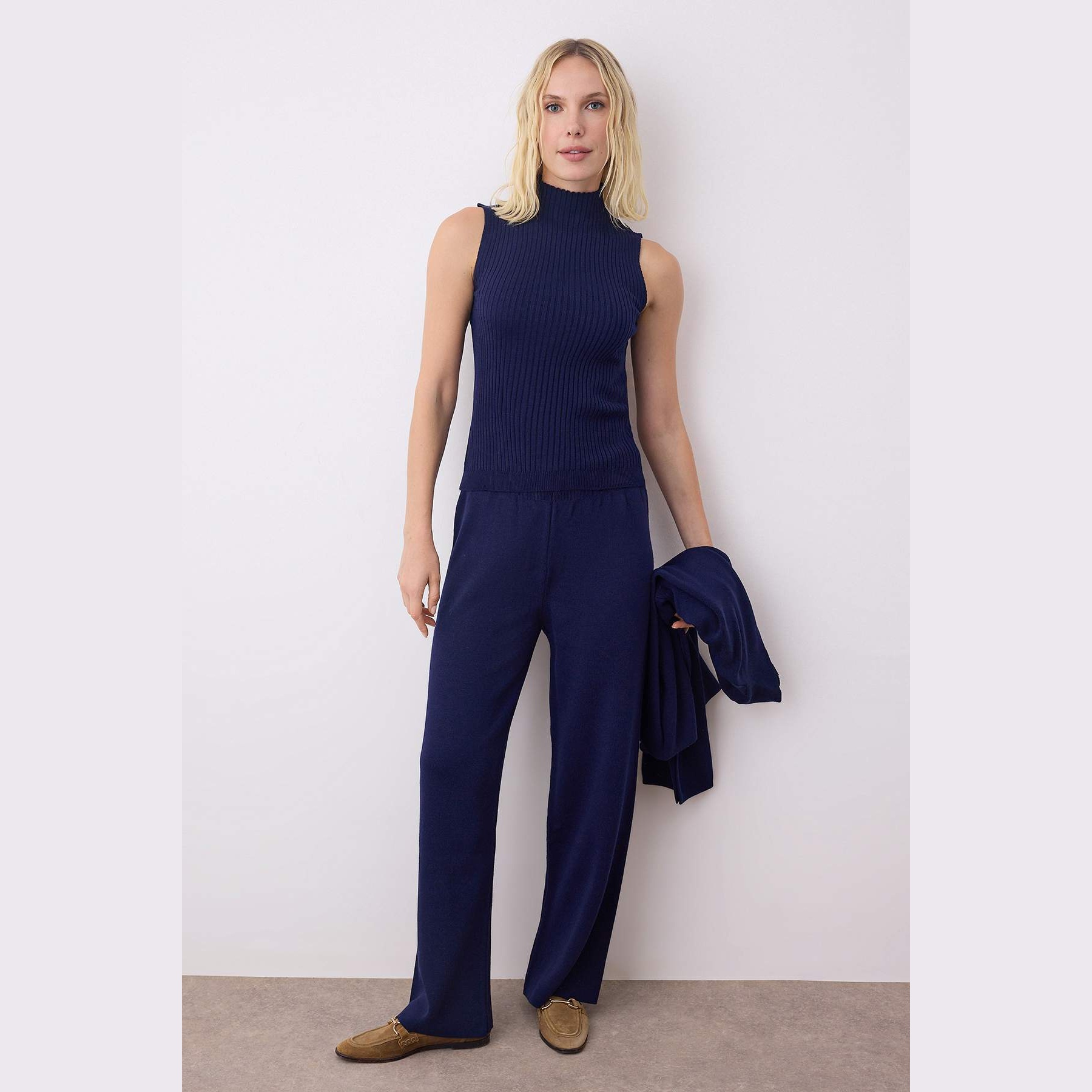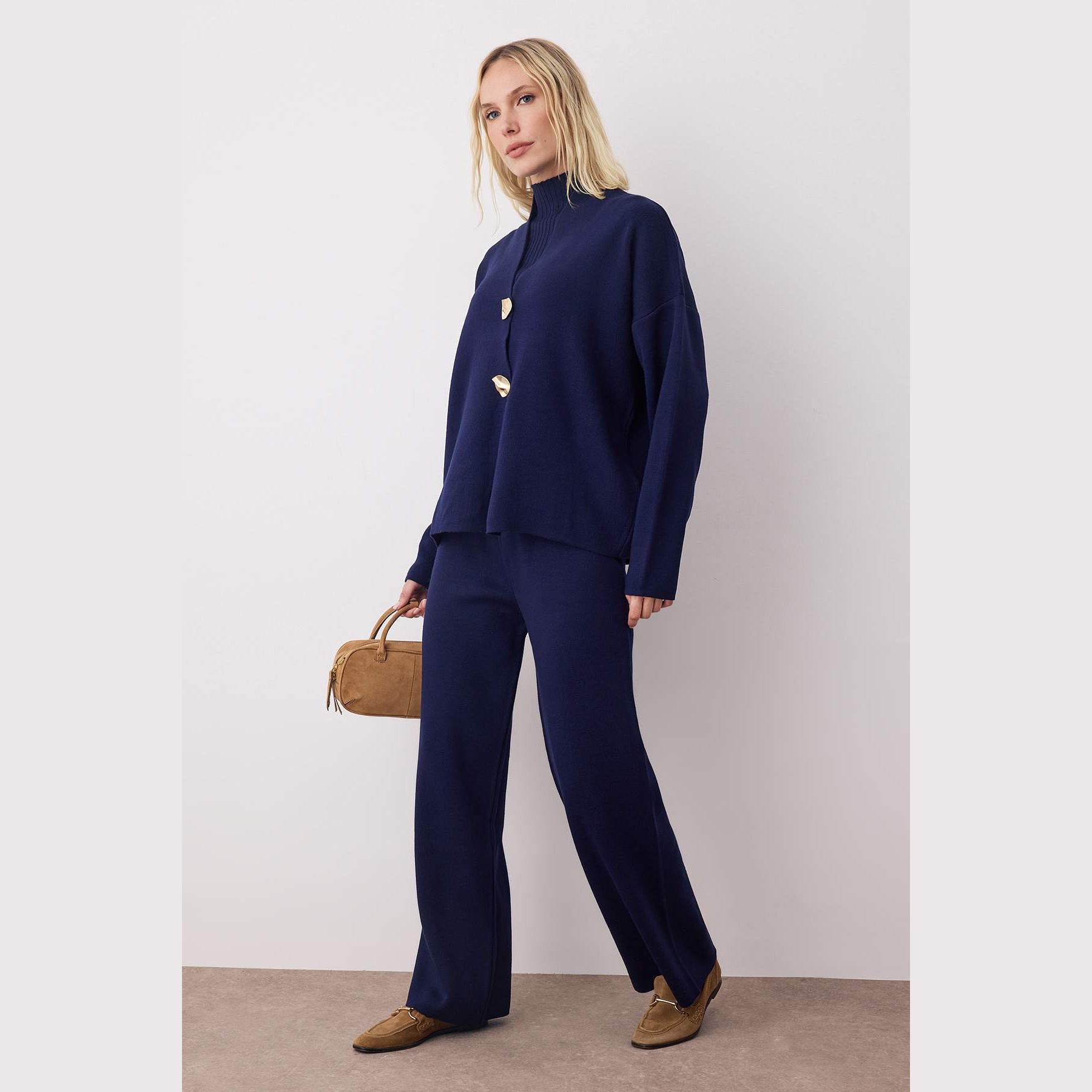 طقم ثلاثي أنيق بلون كحلي داكن من مجموعة Trendyolmilla – لأناقة شتوية دافئة ومحتشمة بلمسة فاخرة وعملية، يتكون من كنزة طويلة بأكمام كاملة، بلوزة داخلية ناعمة، وبنطال مستقيم بخصر مرتفع، مصنوع من خامة تريكو متوسطة السماكة بتركيبة 100% أكريليك، ما يجعله مثاليًا للإطلالات اليومية والمناسبات العملية في الأجواء الباردة.