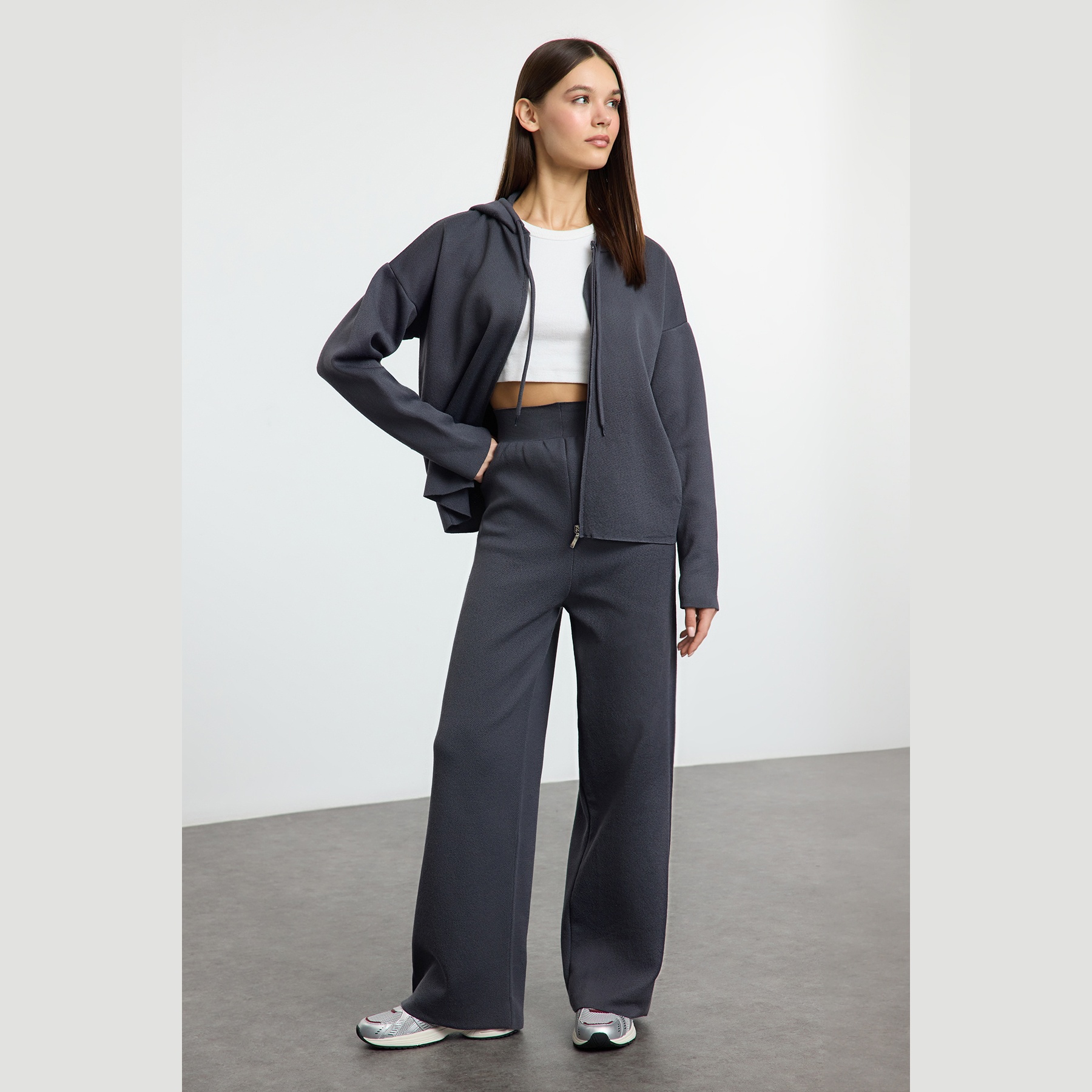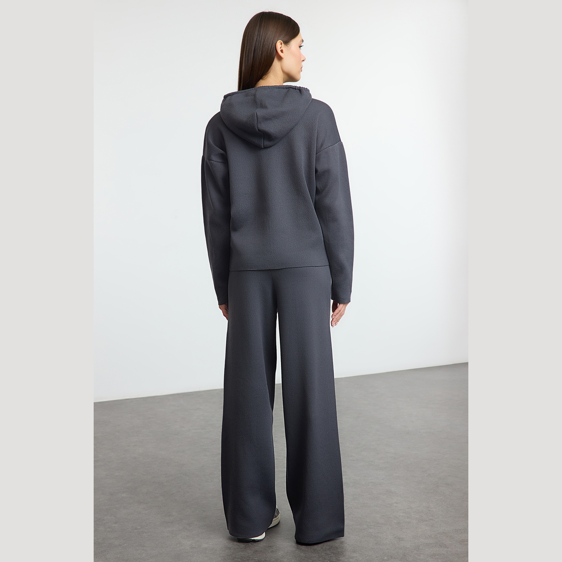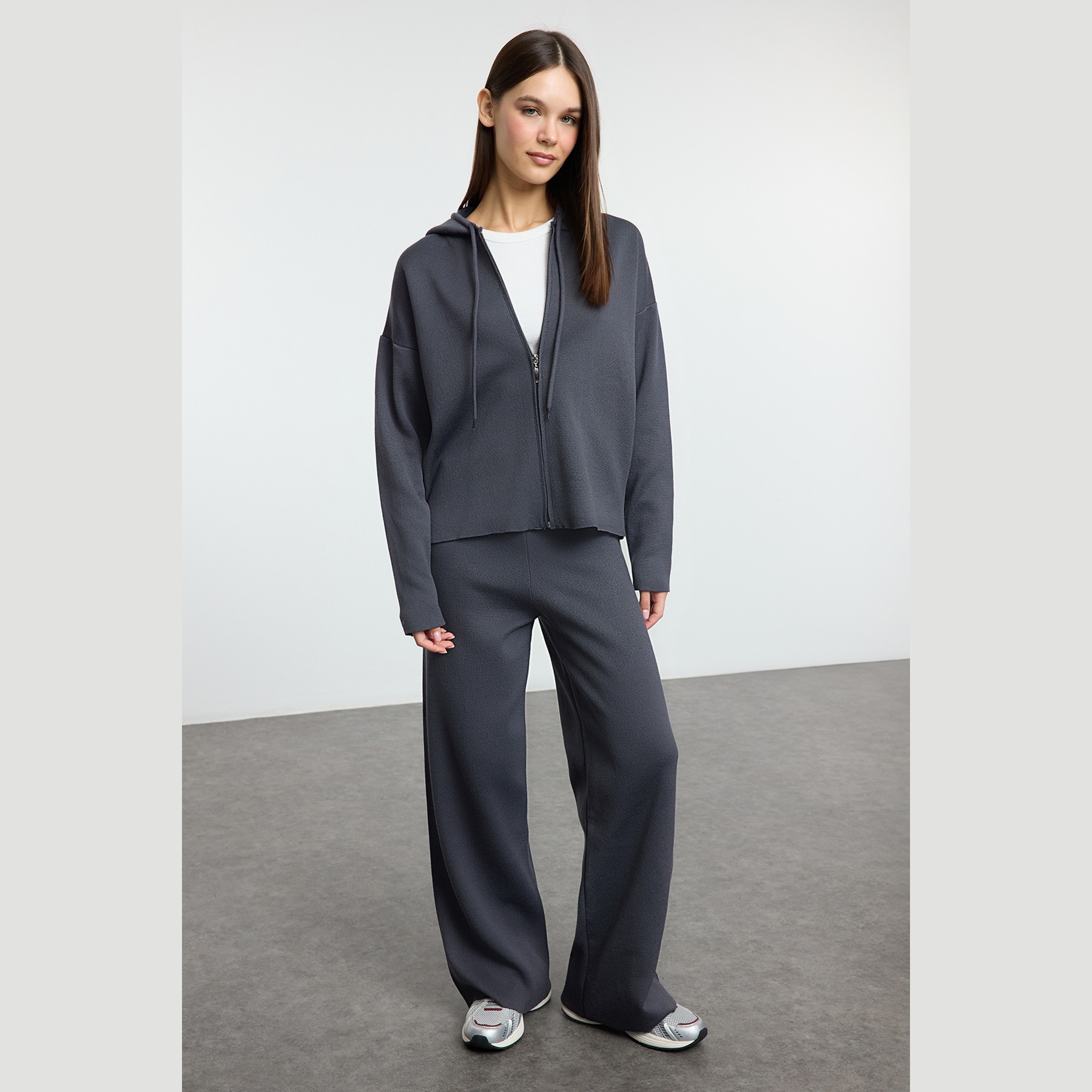 طقم عملي بلون أنtrasit موحد من مجموعة Trendyolmilla – لأناقة شتوية مريحة وعصرية بلمسة كاجوال شبابية، يتكون من كنزة طويلة بقبعة (هودي) وأكمام كاملة مع بنطال مستقيم بخصر مرتفع وقصة مريحة، مصنوع من خامة تريكو متوسطة السماكة بتركيبة 100% بوليستر، ما يجعله مثاليًا للأيام الباردة والإطلالات اليومية العملية.