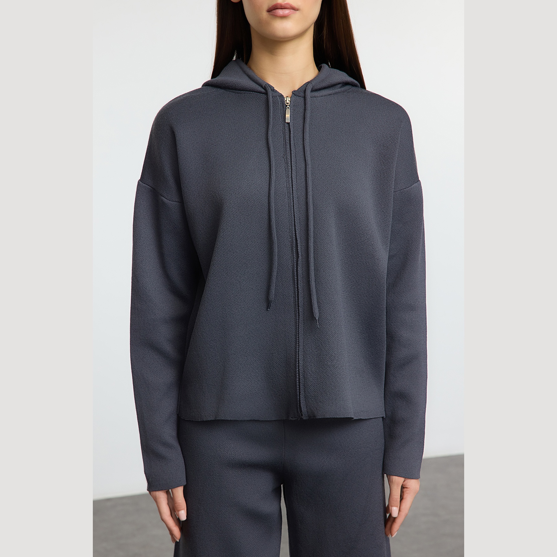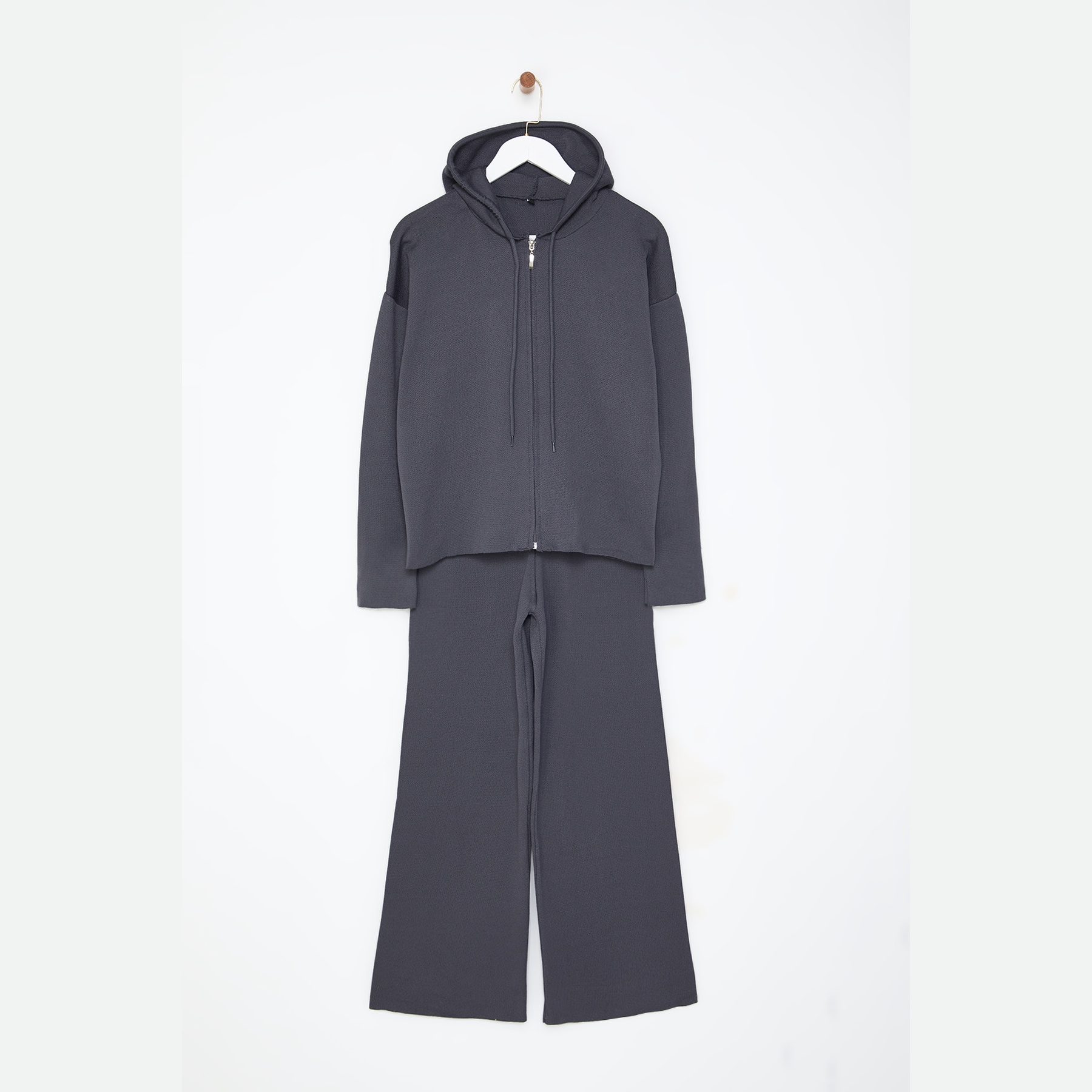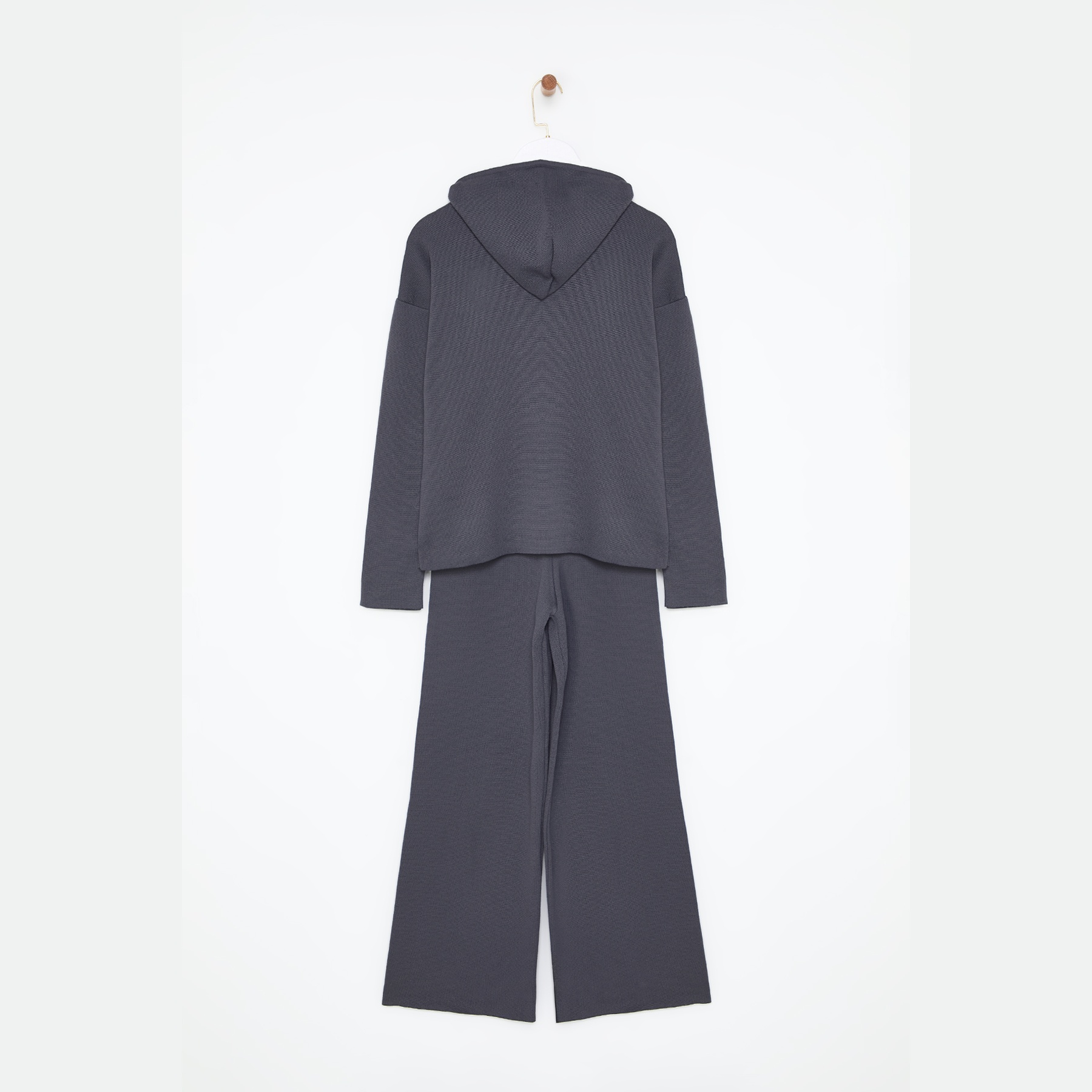طقم عملي بلون أنtrasit موحد من مجموعة Trendyolmilla – لأناقة شتوية مريحة وعصرية بلمسة كاجوال شبابية، يتكون من كنزة طويلة بقبعة (هودي) وأكمام كاملة مع بنطال مستقيم بخصر مرتفع وقصة مريحة، مصنوع من خامة تريكو متوسطة السماكة بتركيبة 100% بوليستر، ما يجعله مثاليًا للأيام الباردة والإطلالات اليومية العملية.