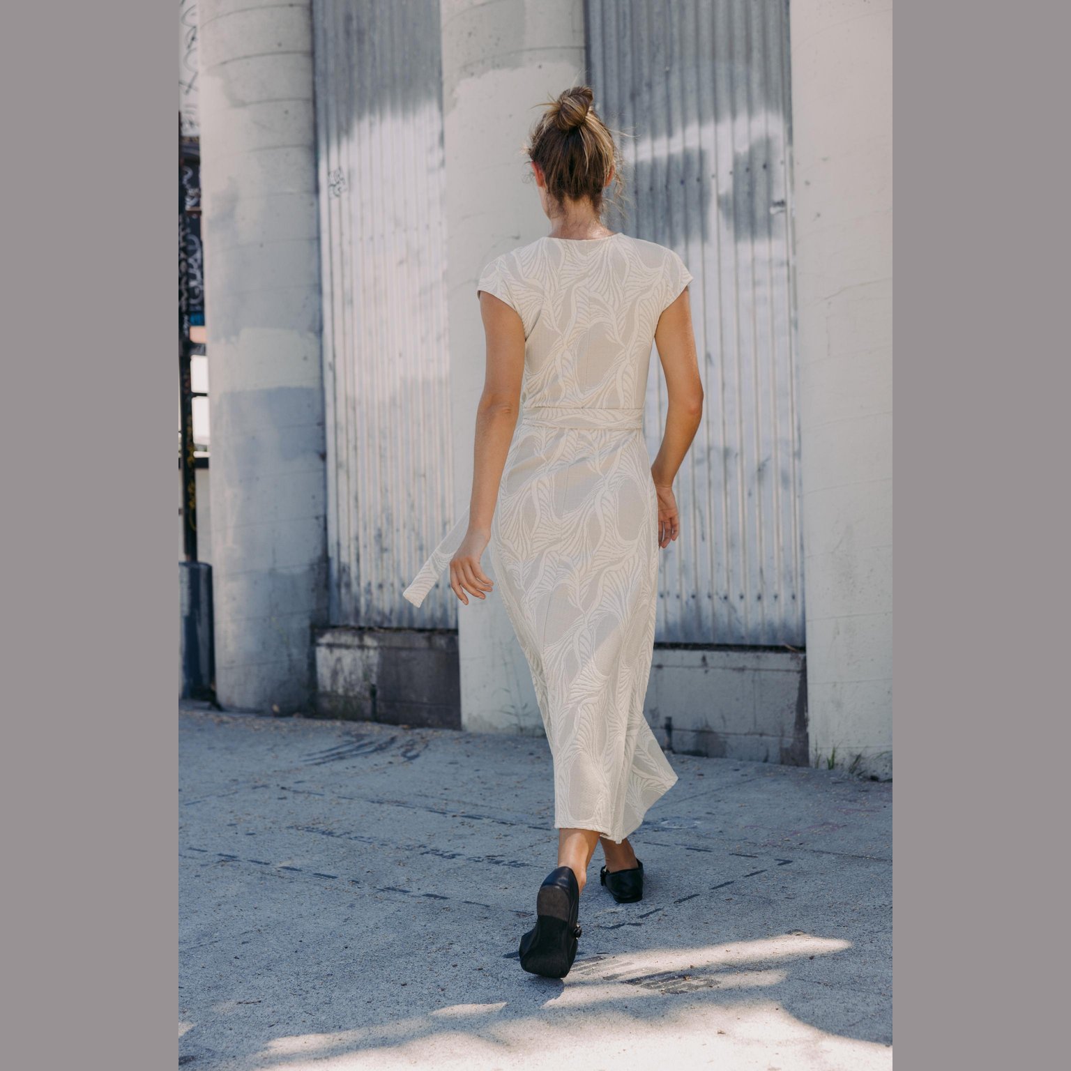 - التصميم: فستان جاكار مع حزام (Jacquard Dress with Belt)