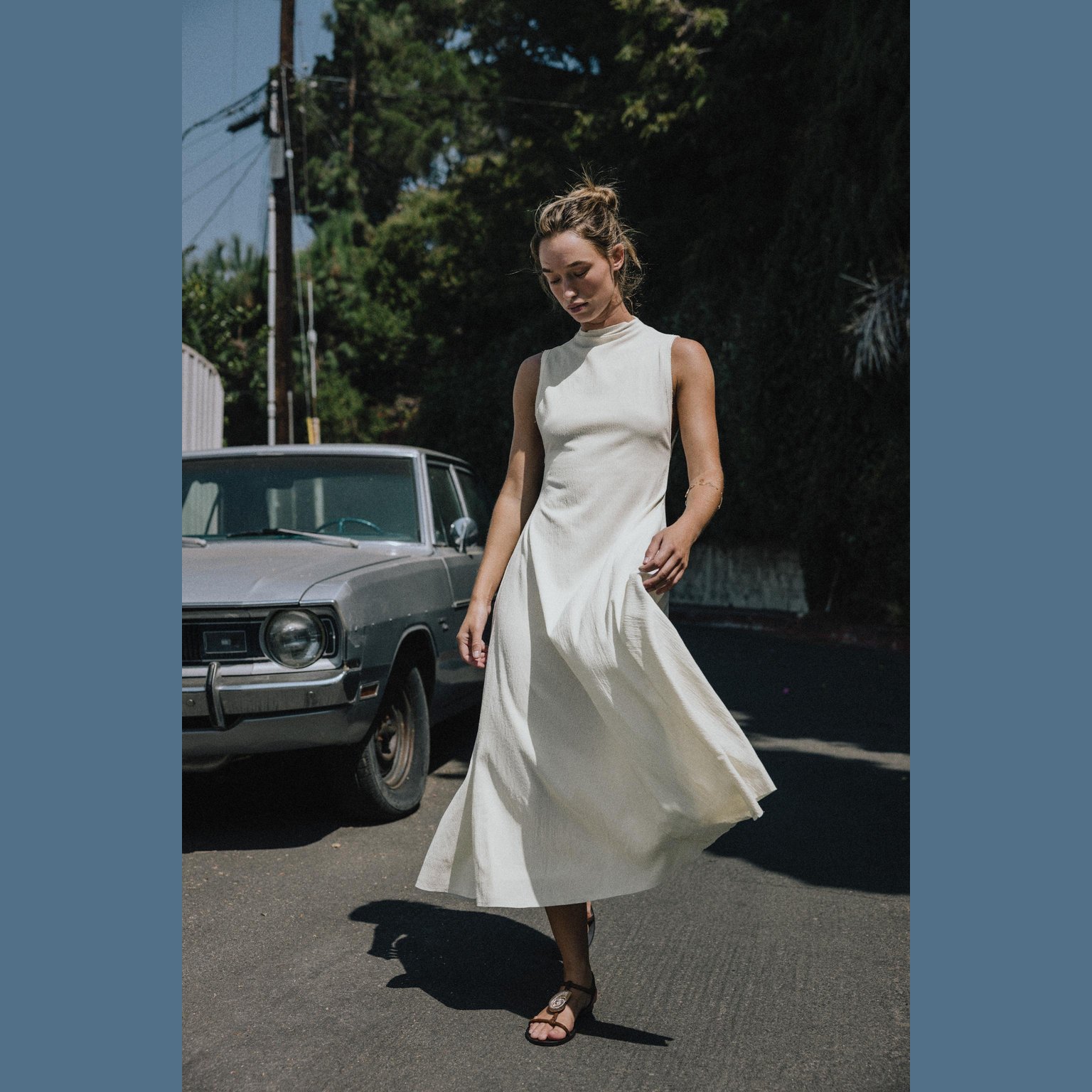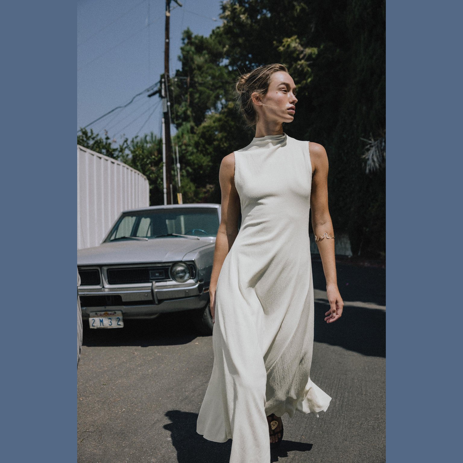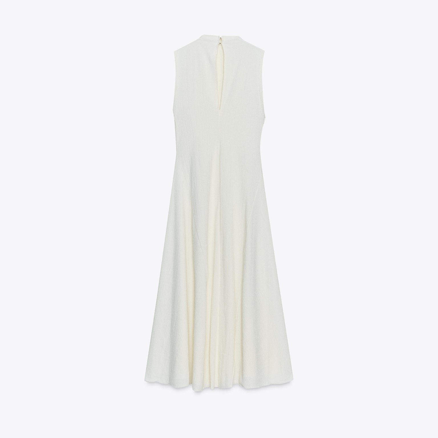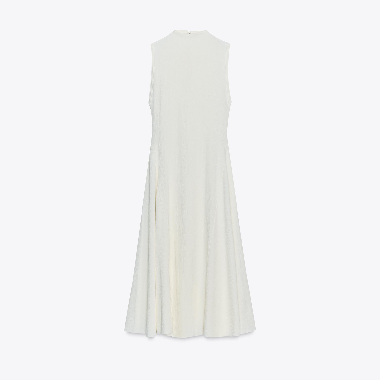 فستان طويل محبوك بخامة مزخرفة – لون طبيعي (أوف وايت) – Ecru (Textured Long Dress) فستان أنيق بلون أوف وايت طبيعي، مصنوع من خامة محبوكة بخليط بوليستر وإيلاستان يمنح مرونة وانسيابية. يتميز بياقة مستديرة بلا أكمام، مع تفاصيل قماش مزخرف وحافة واسعة متدفقة تمنح حركة أنثوية عصرية. الإغلاق خلفي بسحاب مخفي. قطعة مثالية للتنسيقات اليومية الكاجوال الأنيقة أو كإطلالة مسائية راقية.