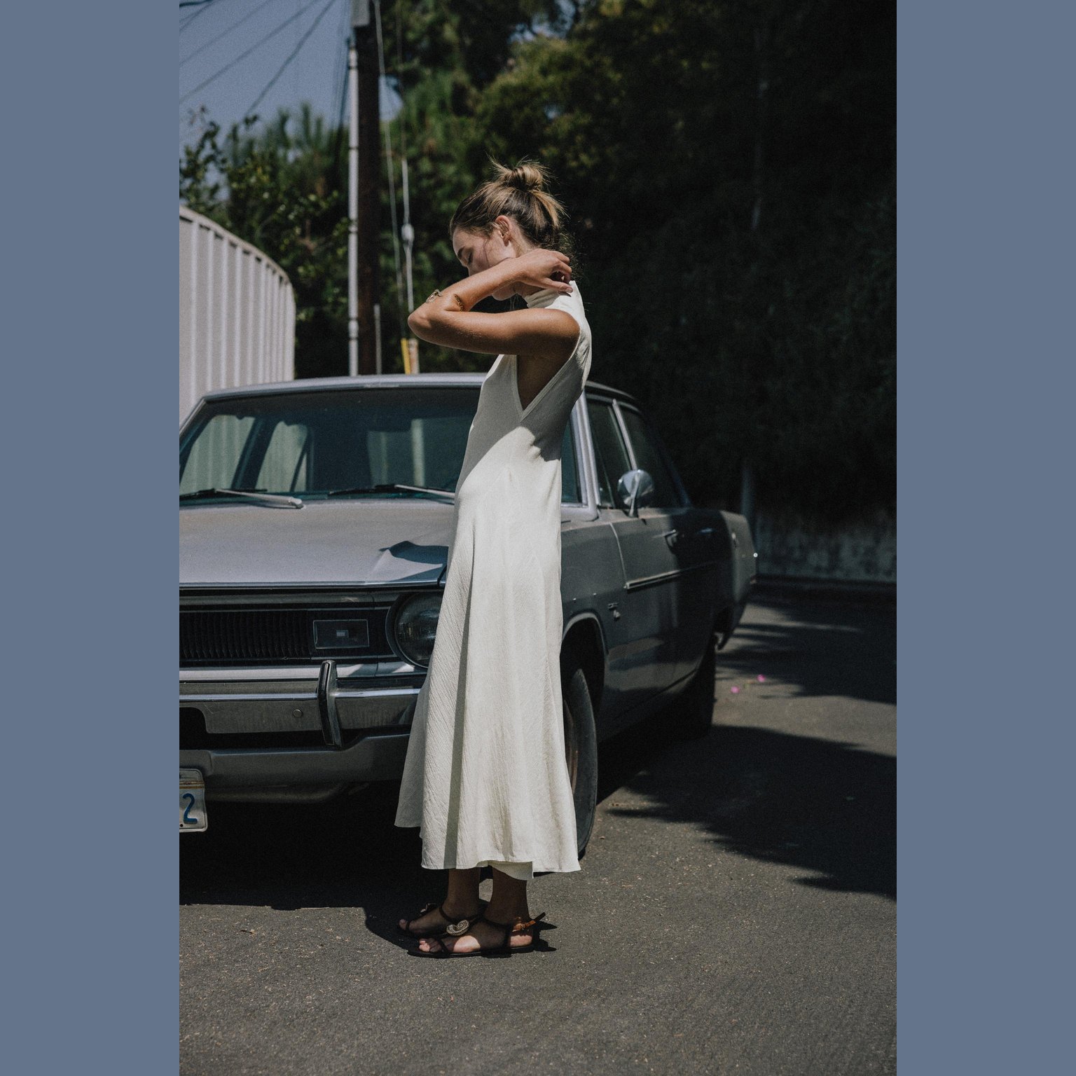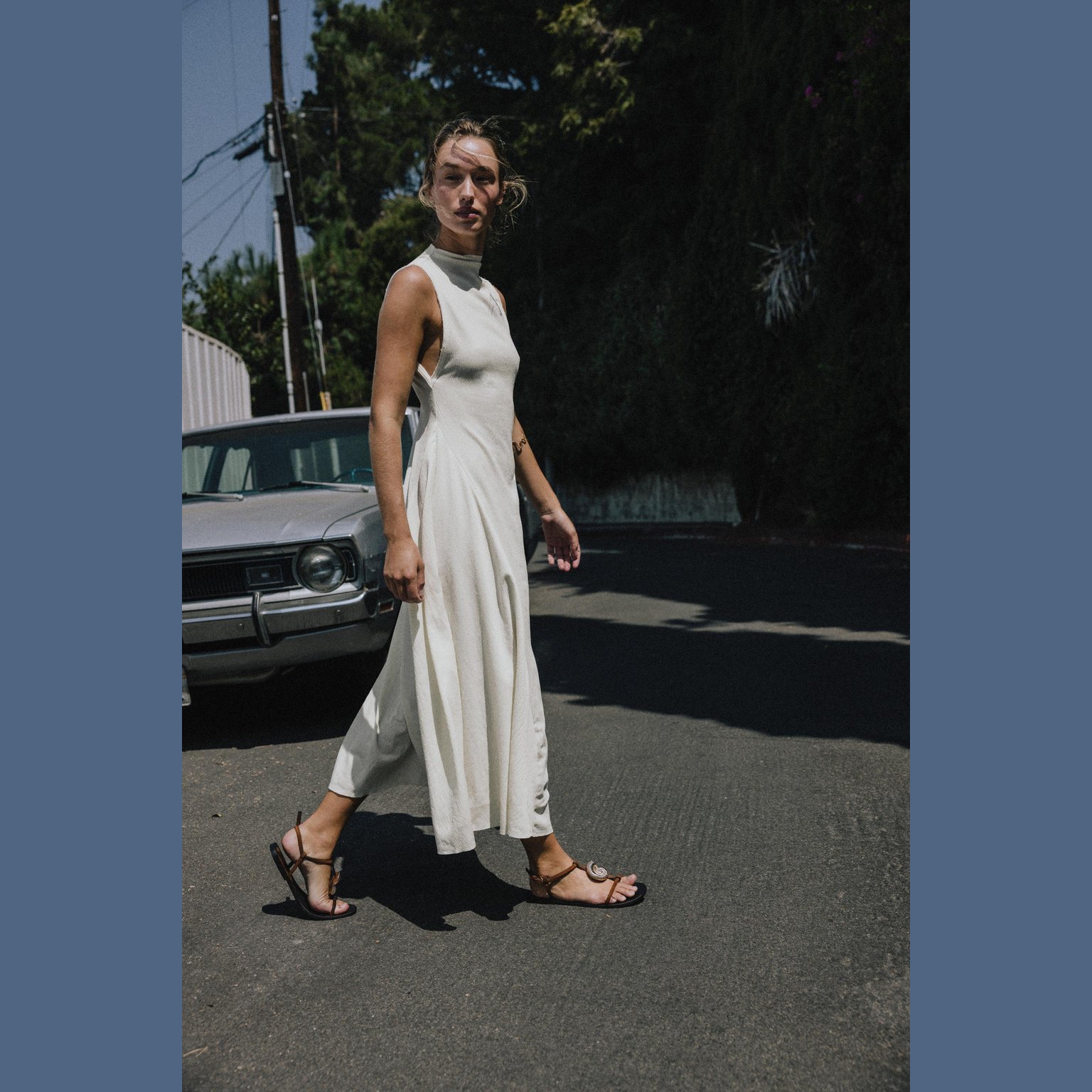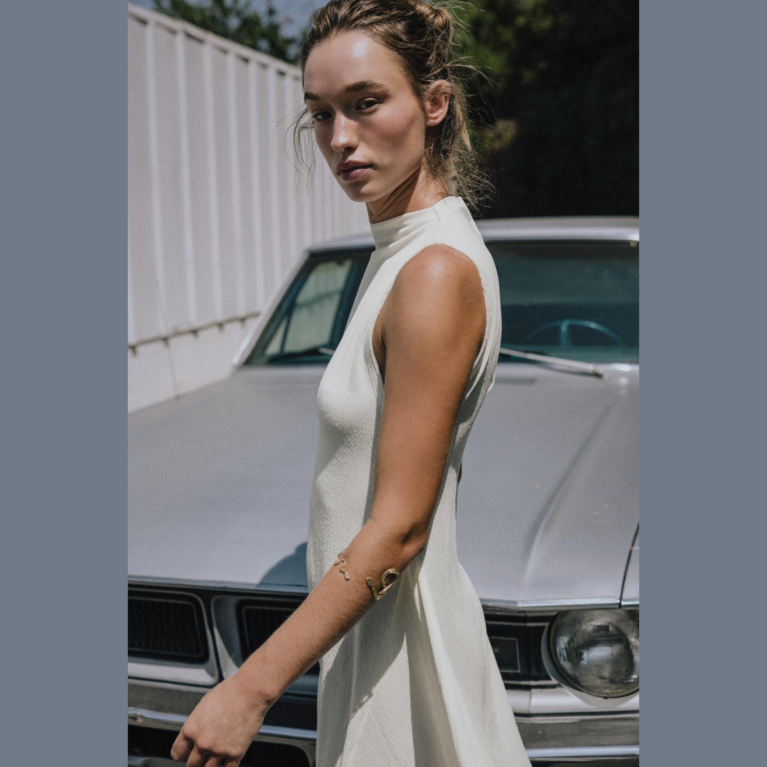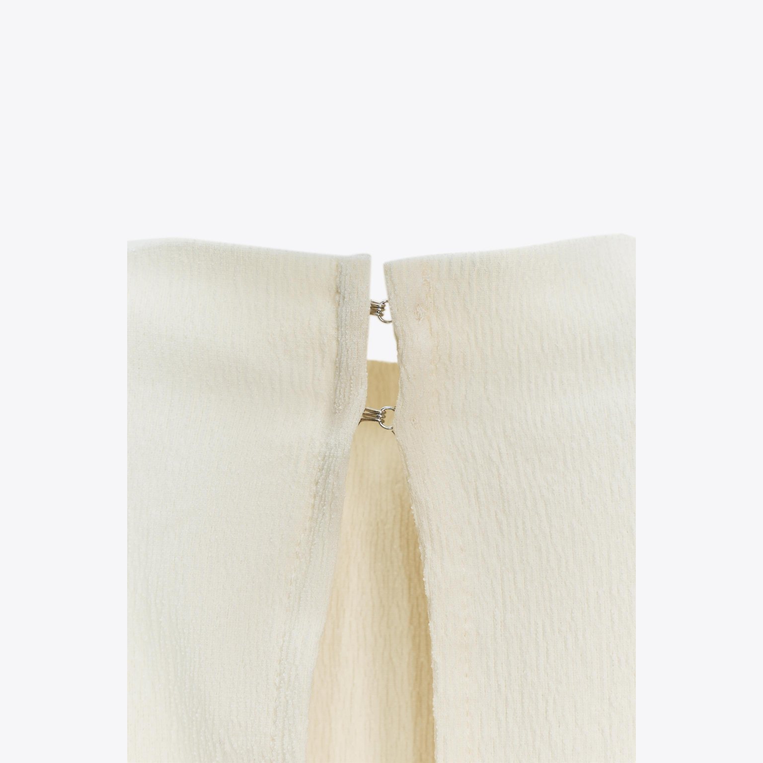 فستان طويل محبوك بخامة مزخرفة – لون طبيعي (أوف وايت) – Ecru (Textured Long Dress) فستان أنيق بلون أوف وايت طبيعي، مصنوع من خامة محبوكة بخليط بوليستر وإيلاستان يمنح مرونة وانسيابية. يتميز بياقة مستديرة بلا أكمام، مع تفاصيل قماش مزخرف وحافة واسعة متدفقة تمنح حركة أنثوية عصرية. الإغلاق خلفي بسحاب مخفي. قطعة مثالية للتنسيقات اليومية الكاجوال الأنيقة أو كإطلالة مسائية راقية.