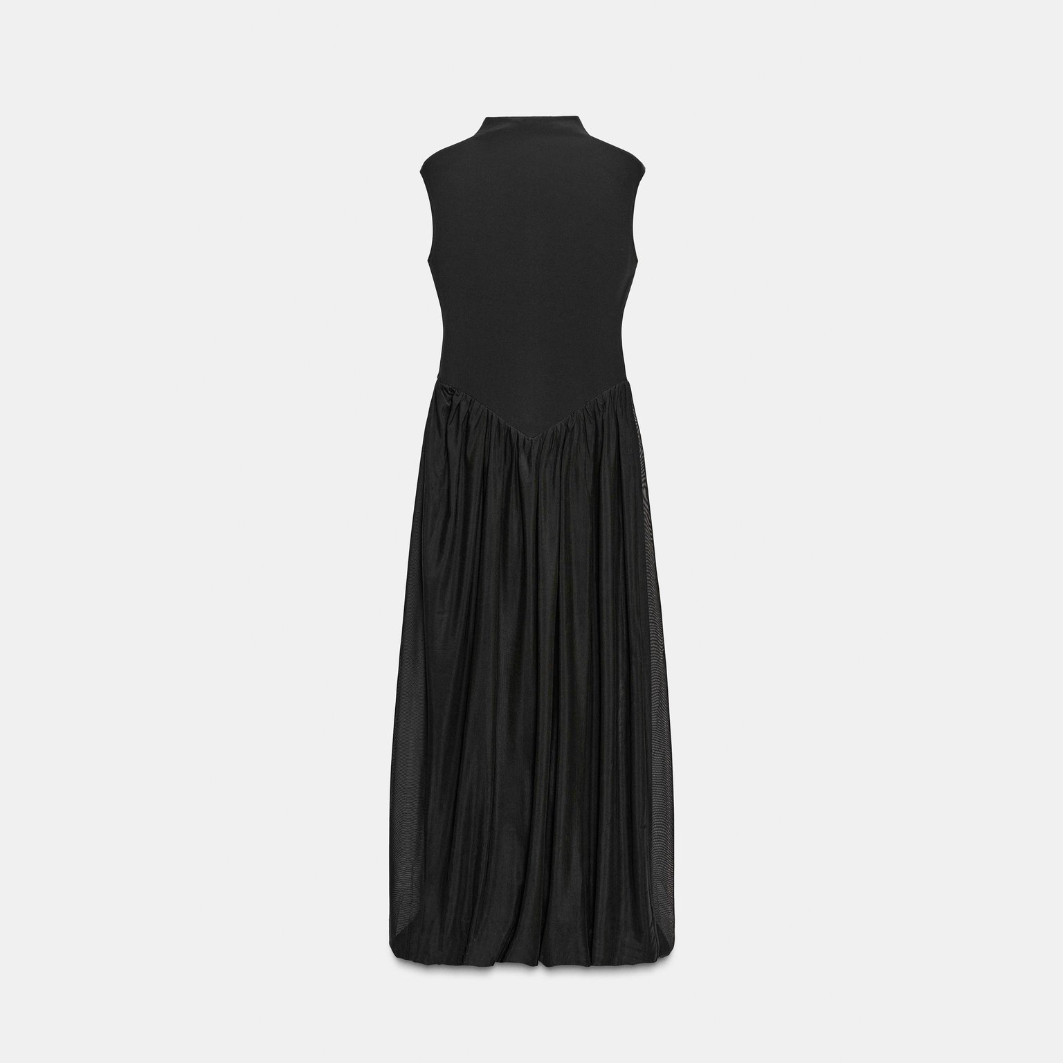 - التصميم: فستان طويل محبوك بتفاصيل تول متباينة (Long Contrast Tulle Dress)