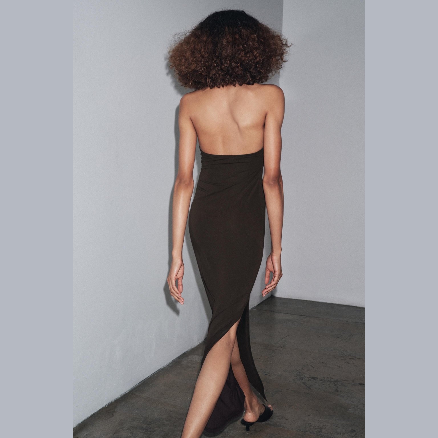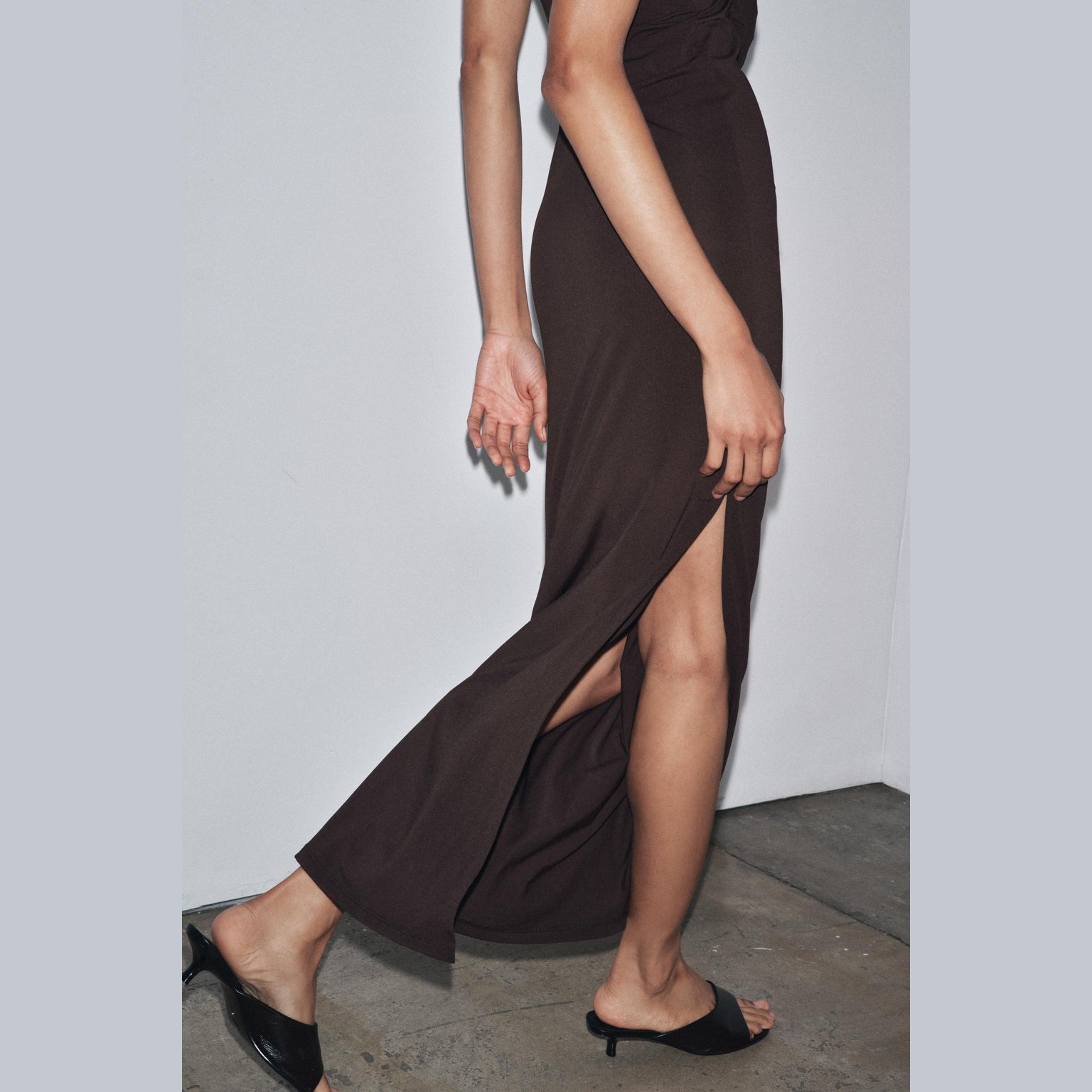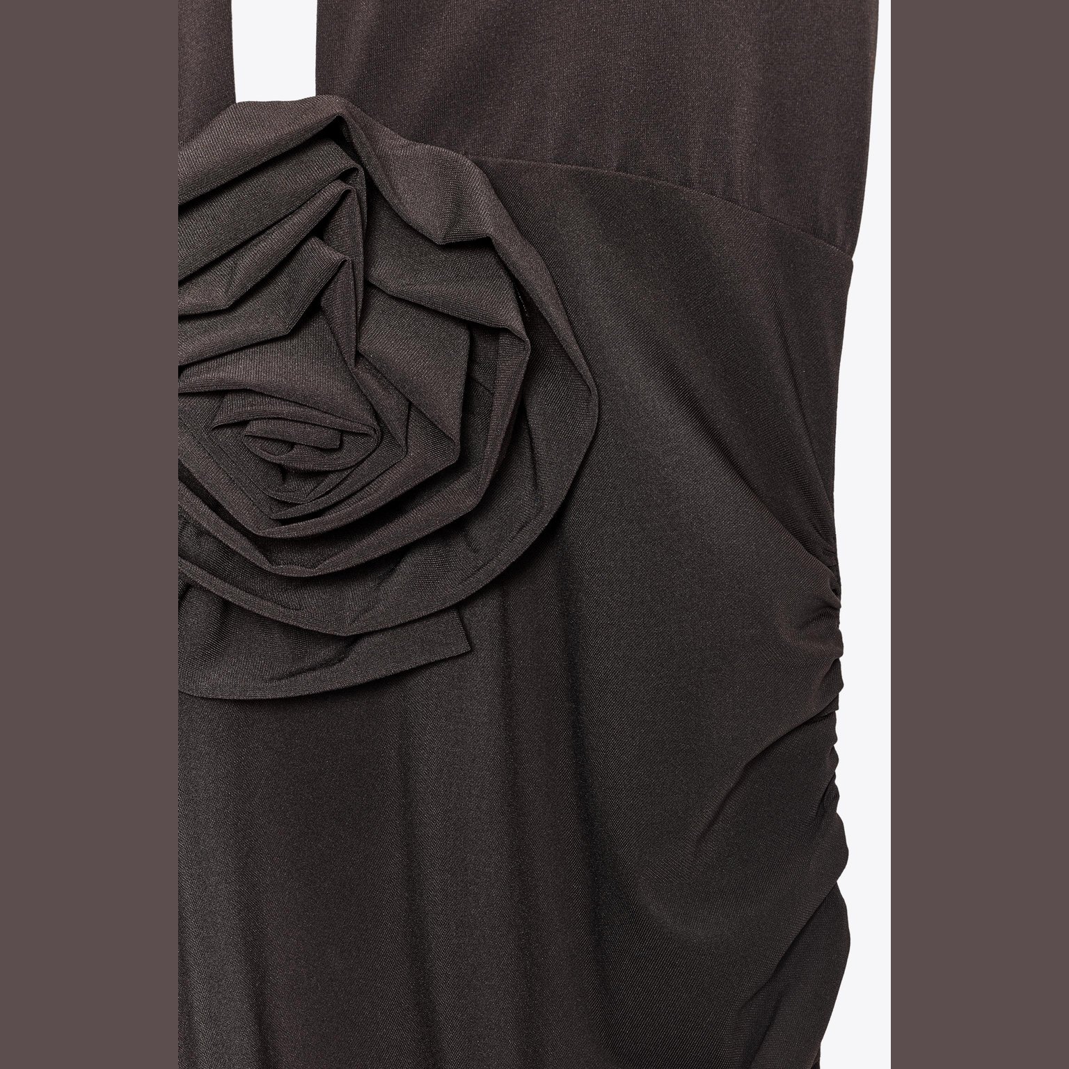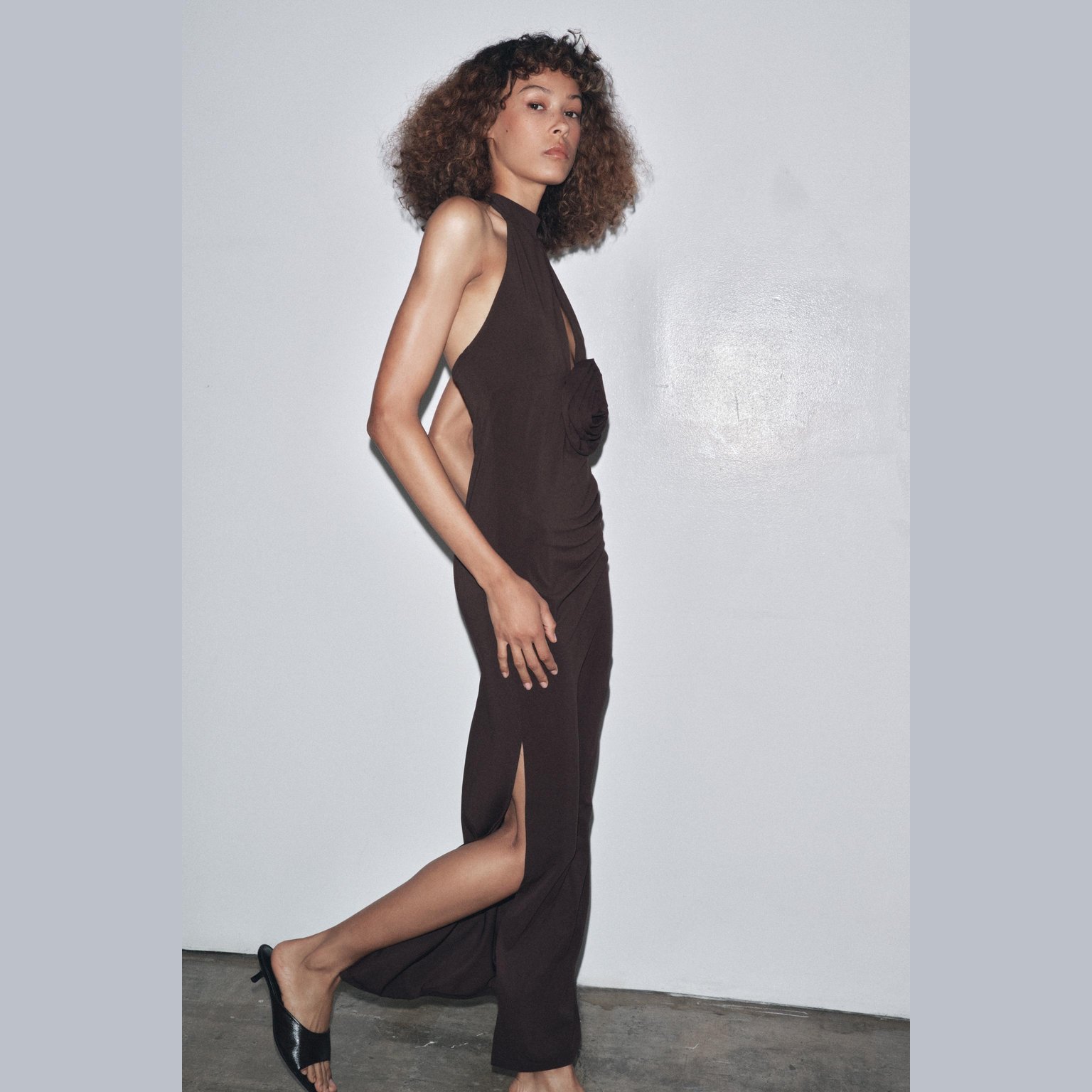 فستان طويل بربطة عنق مع زهرة أمامية – لون طبيعي (بني) – Brown (Halterneck Dress with Flower) فستان أنيق بلون بني طبيعي، مصنوع من خامة محبوكة بخليط بوليستر وإيلاستان يمنح مرونة وانسيابية. يتميز بتصميم بربطة عنق مع ظهر مفتوح، وزهرة بارزة من نفس القماش في الأمام تضيف لمسة أنثوية عصرية. الحافة مستقيمة مع شق جانبي يمنح حركة أنيقة. قطعة مثالية للمناسبات المسائية الأنيقة أو الحفلات الخاصة.