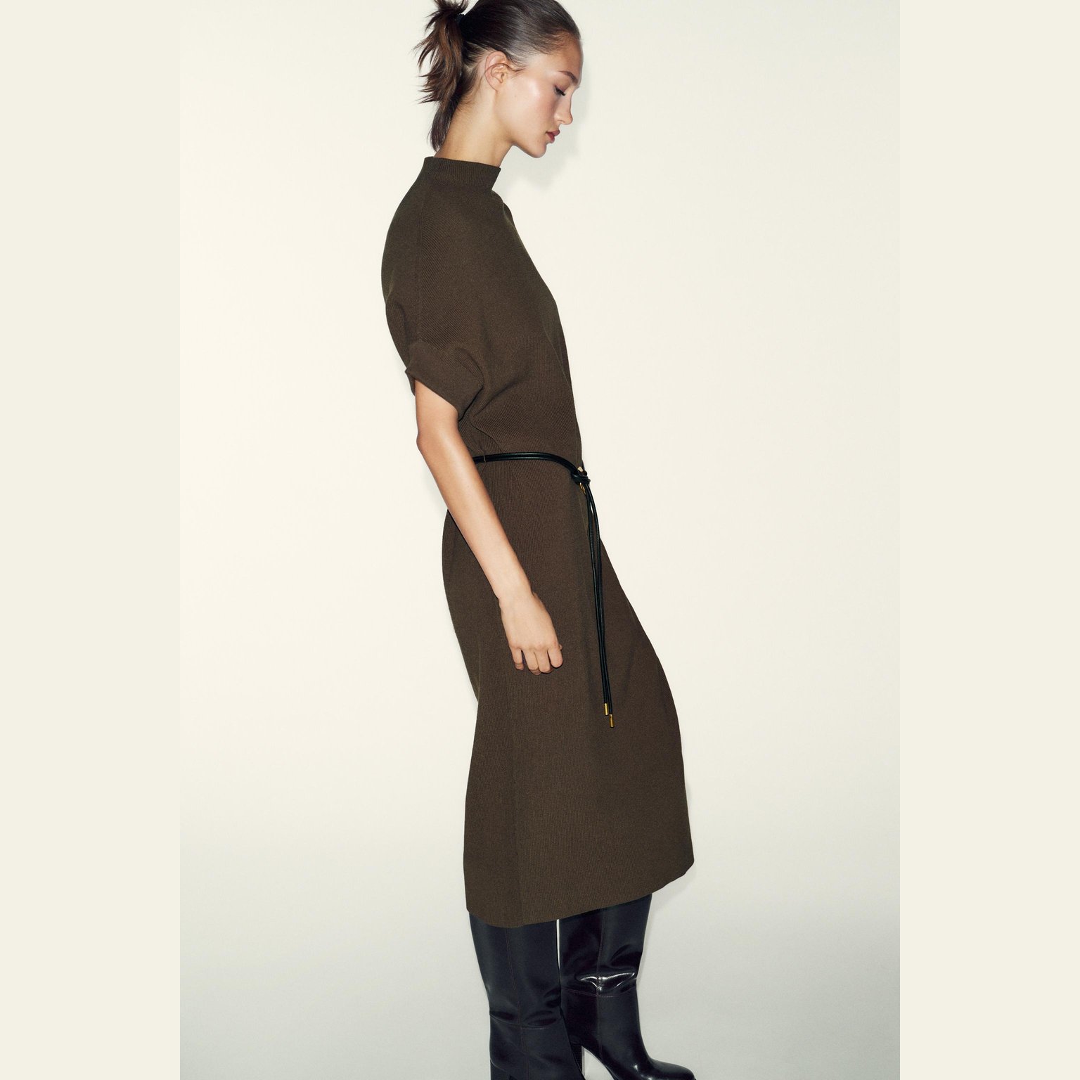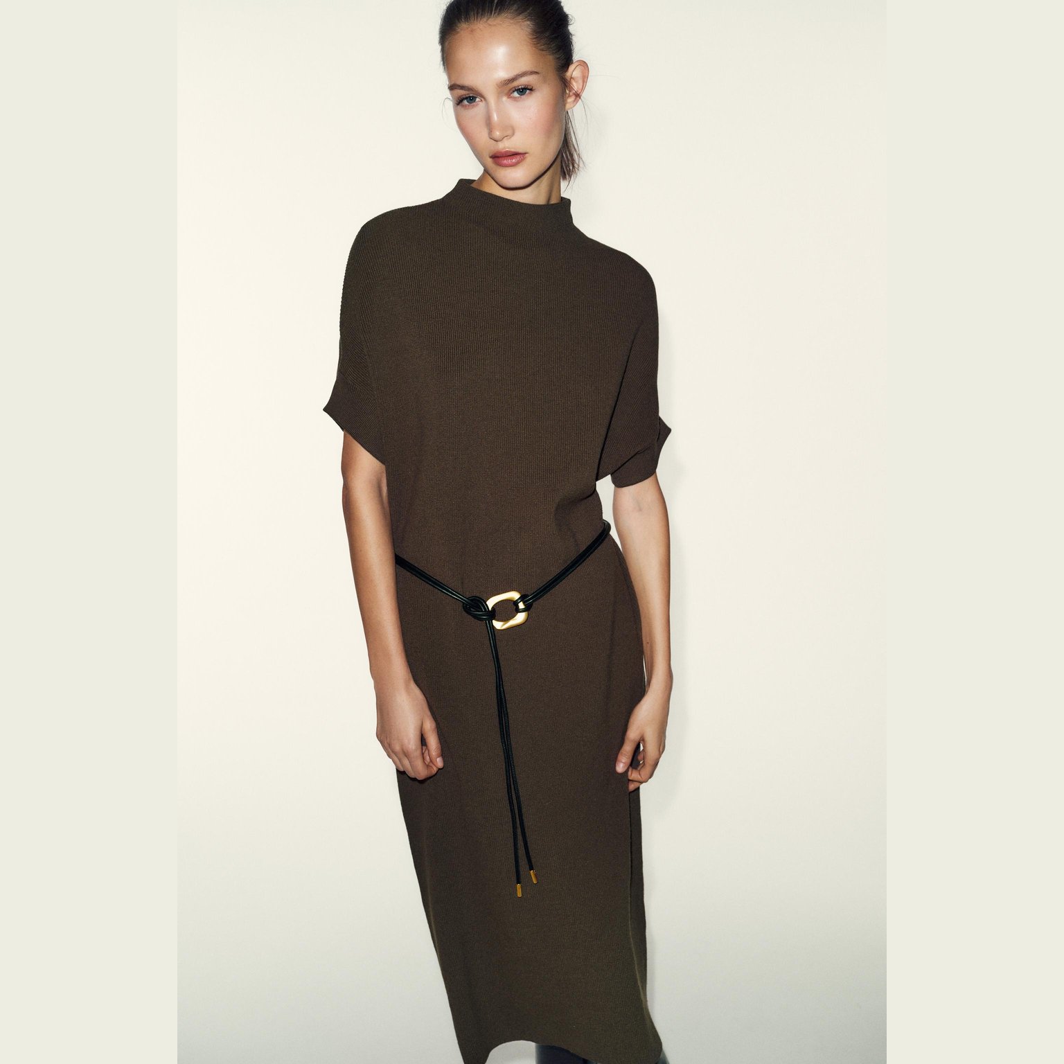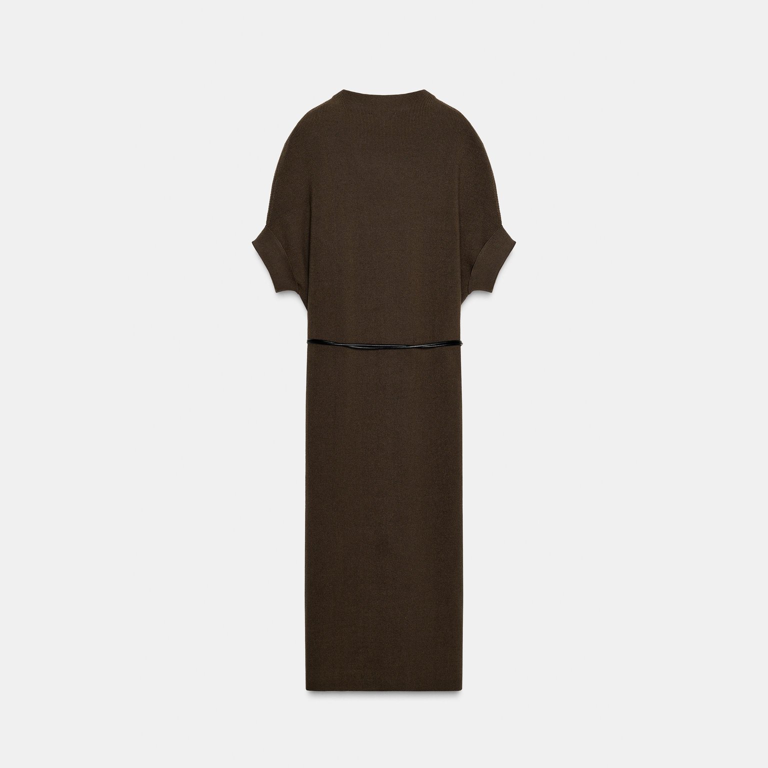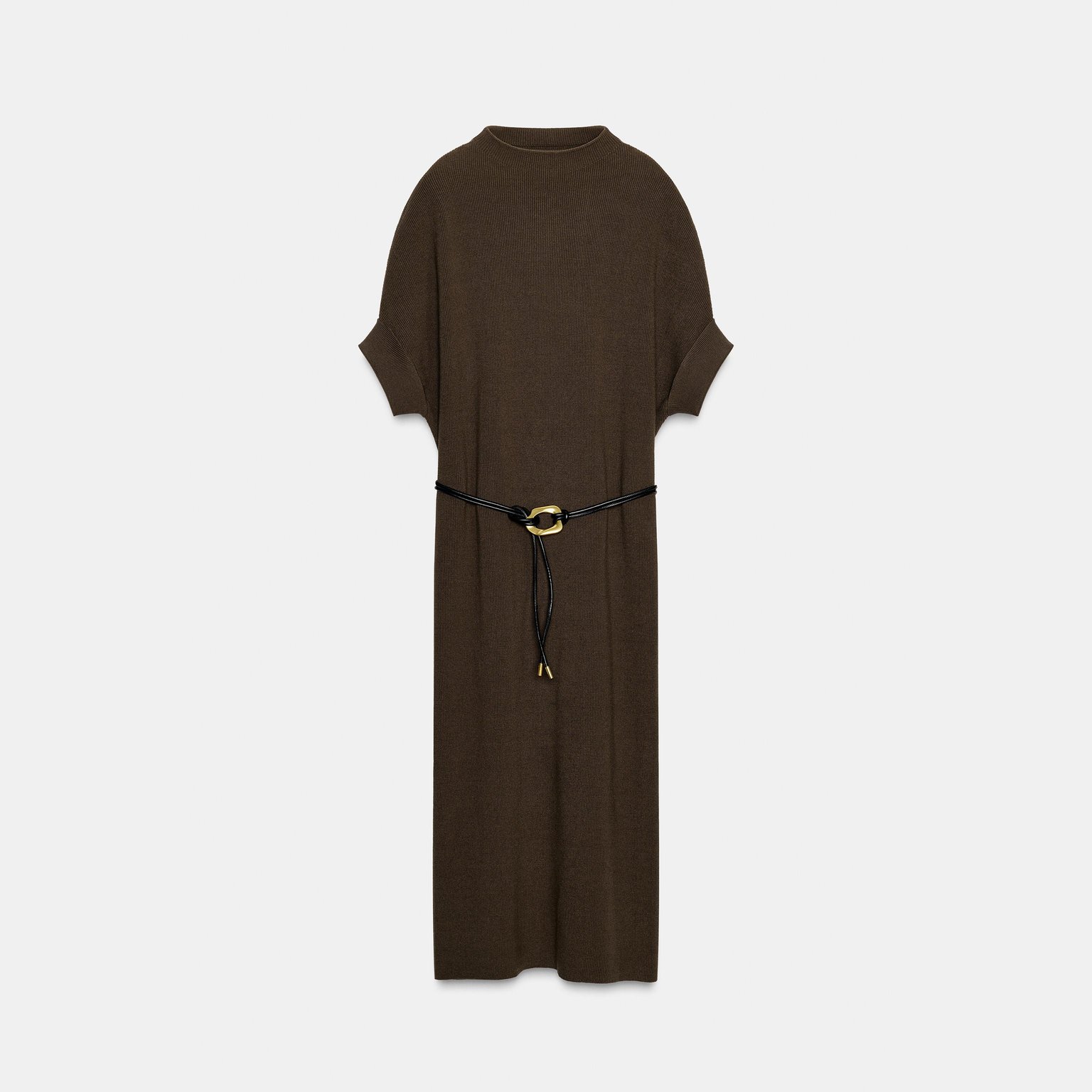 - التصميم: فستان محبوك مع حزام (Knit Dress with Belt)
