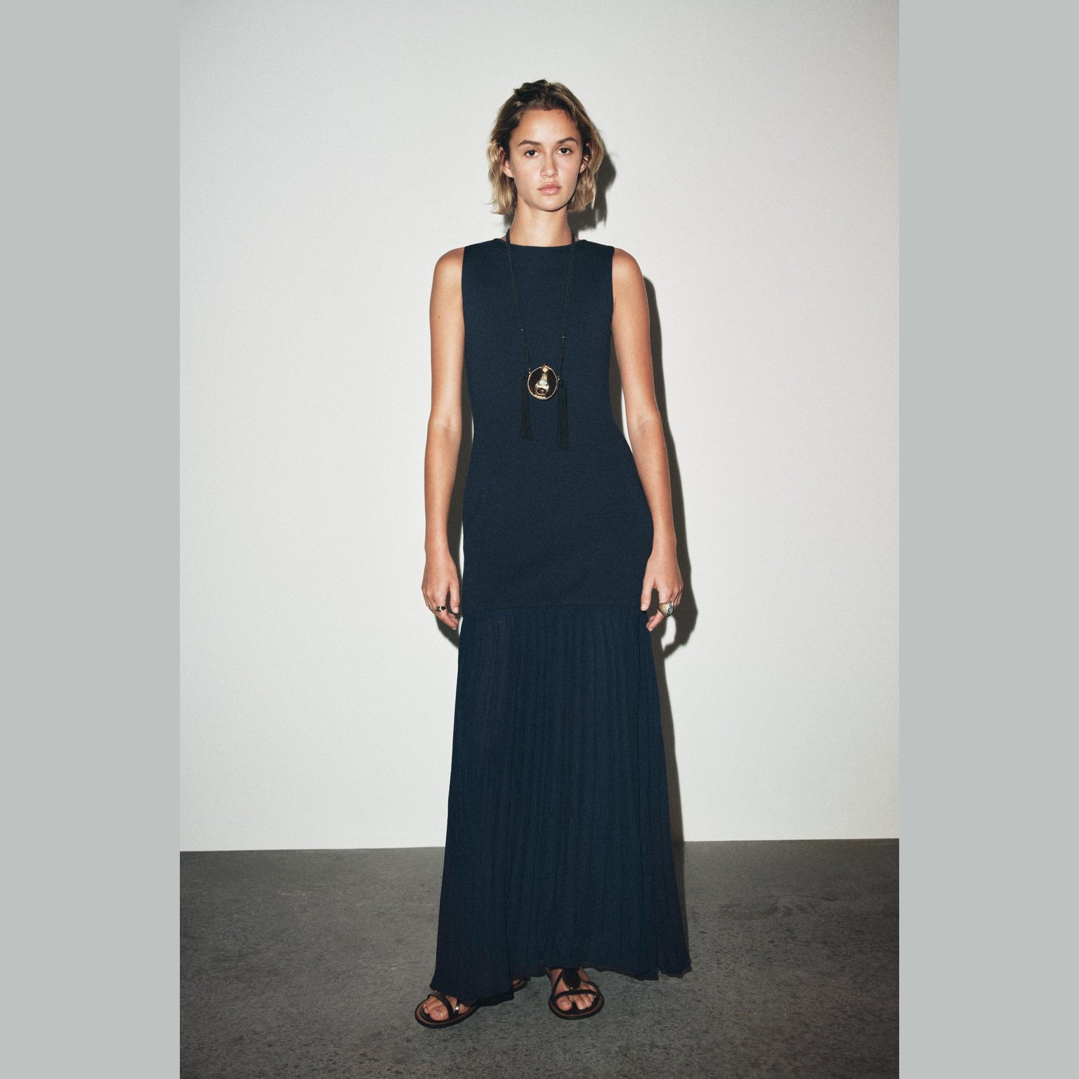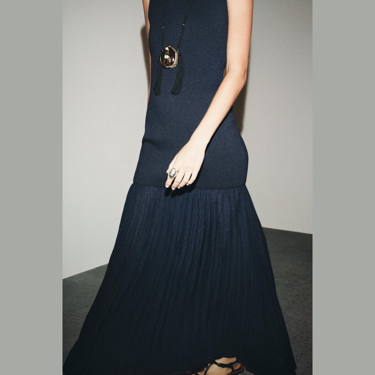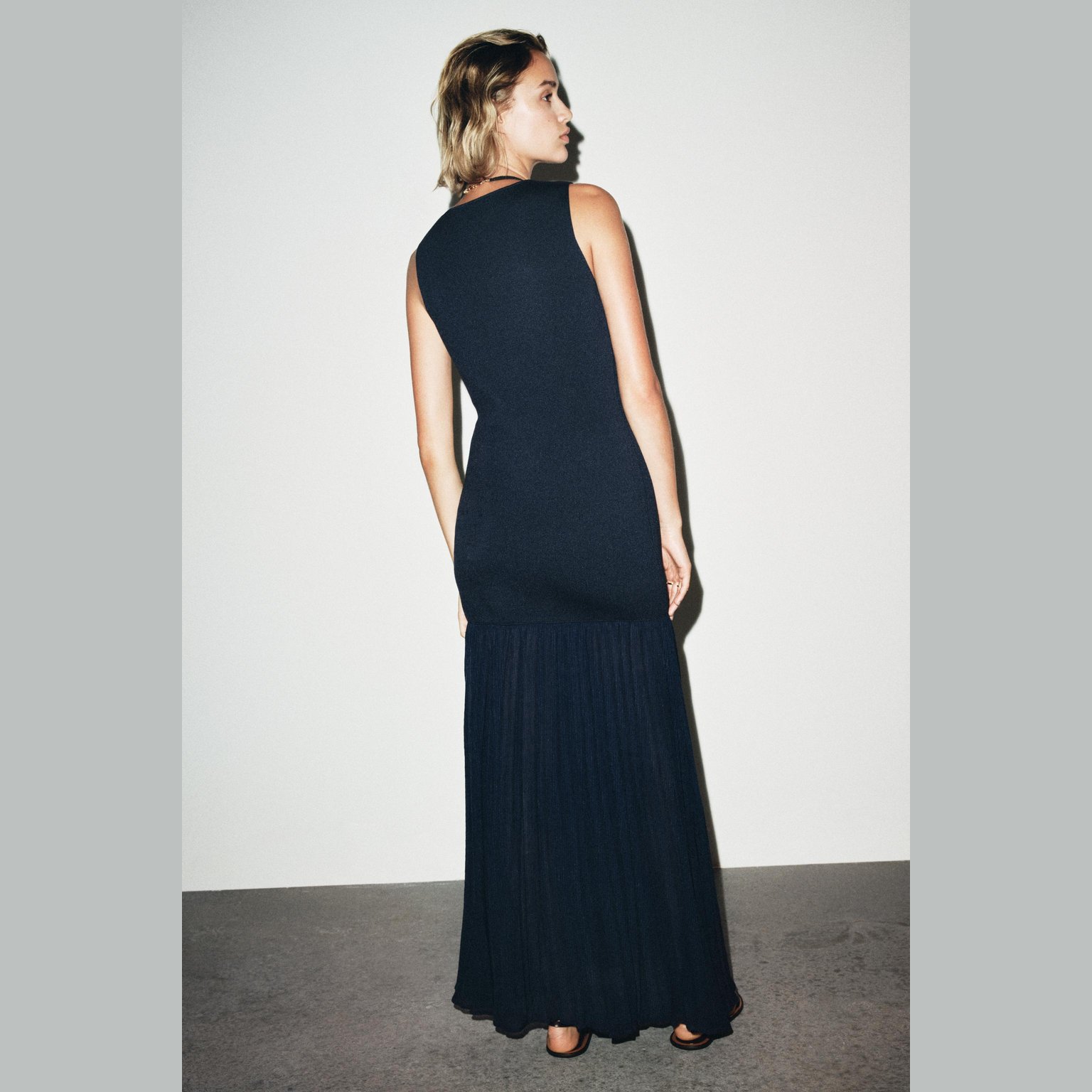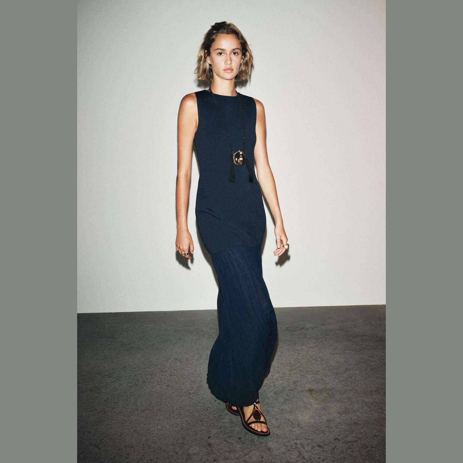 - التصميم: فستان ميدي محبوك (Matching Knit Dress)