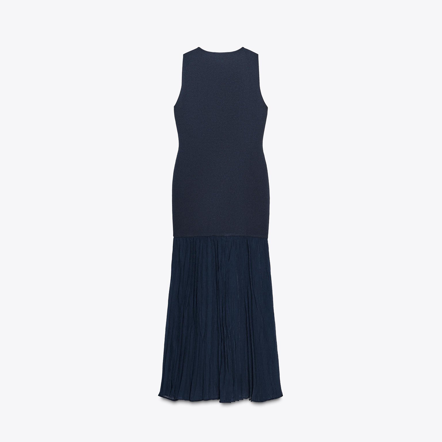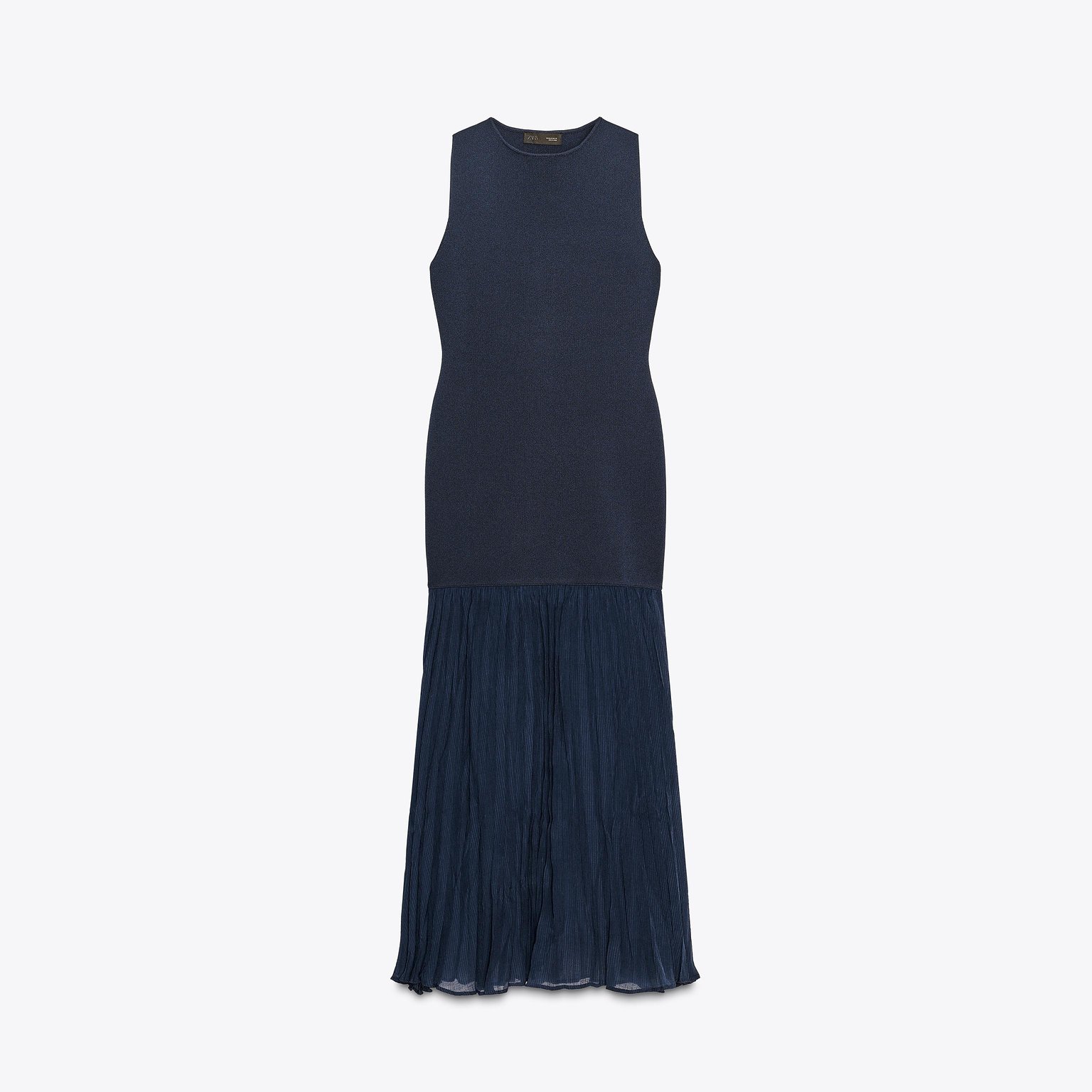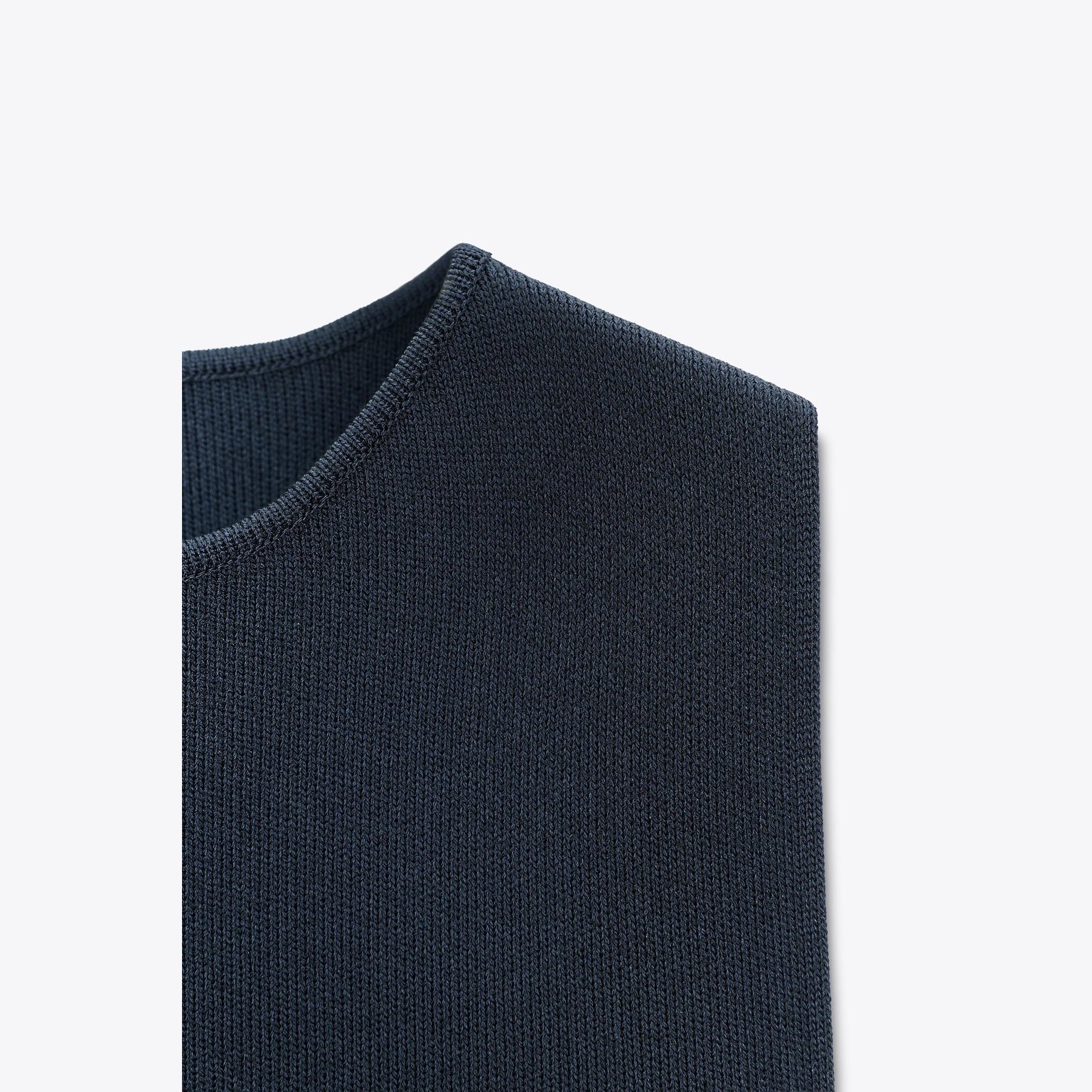 فستان ميدي محبوك – لون طبيعي (أزرق) – Blue (Matching Knit Dress) فستان أنيق بلون أزرق طبيعي، مصنوع من خامة محبوكة بخليط بوليستر، فيسكوز، وبولي أميد يمنح ملمسًا ناعمًا وراحة عملية. يتميز بياقة مستديرة بلا أكمام، مع تفاصيل نسيج متطابق عند الحافة تضيف لمسة عصرية أنثوية. قصة مستقيمة بطول ميدي تمنح إطلالة راقية مثالية للتنسيقات اليومية الكاجوال الأنيقة أو كإطلالة مكتبية.