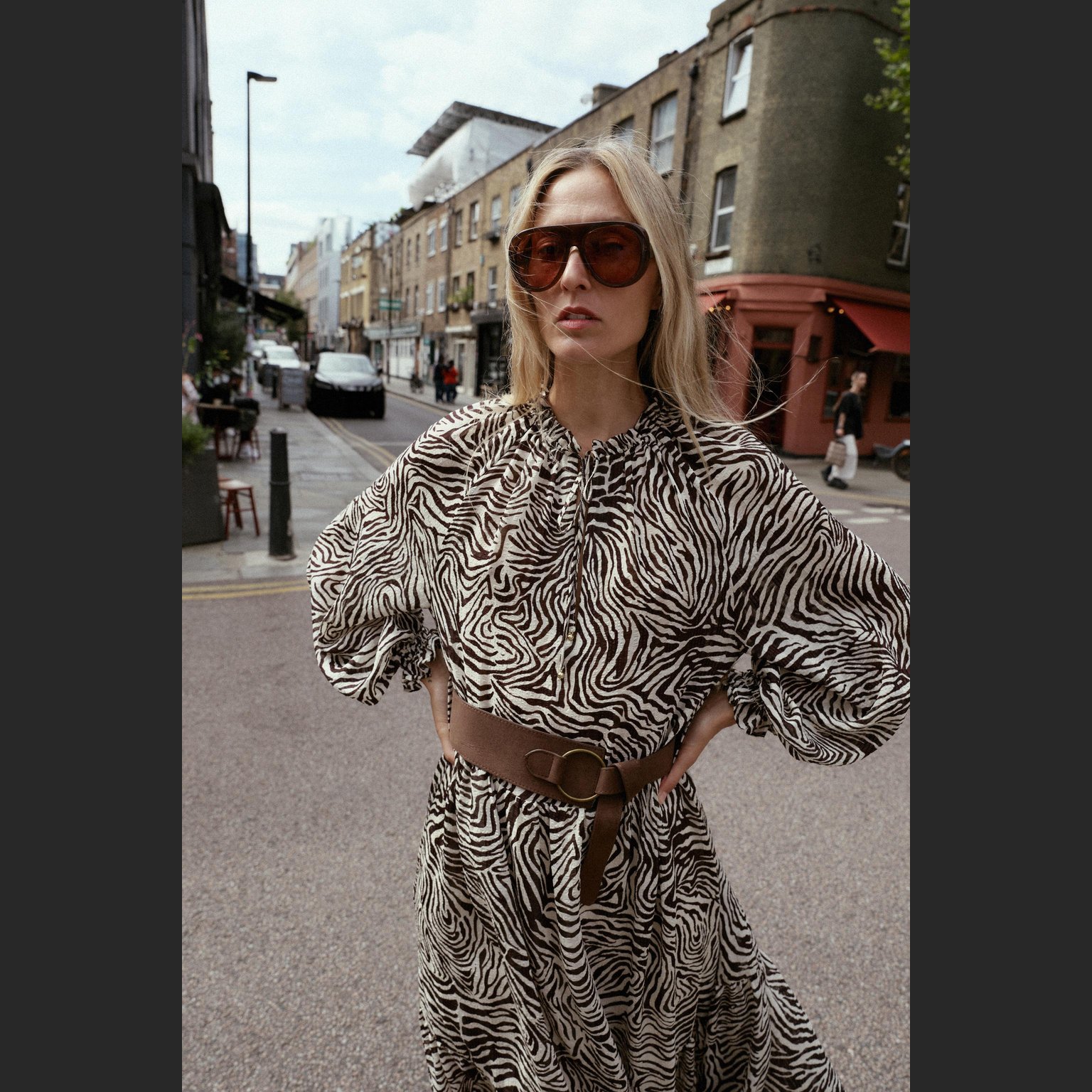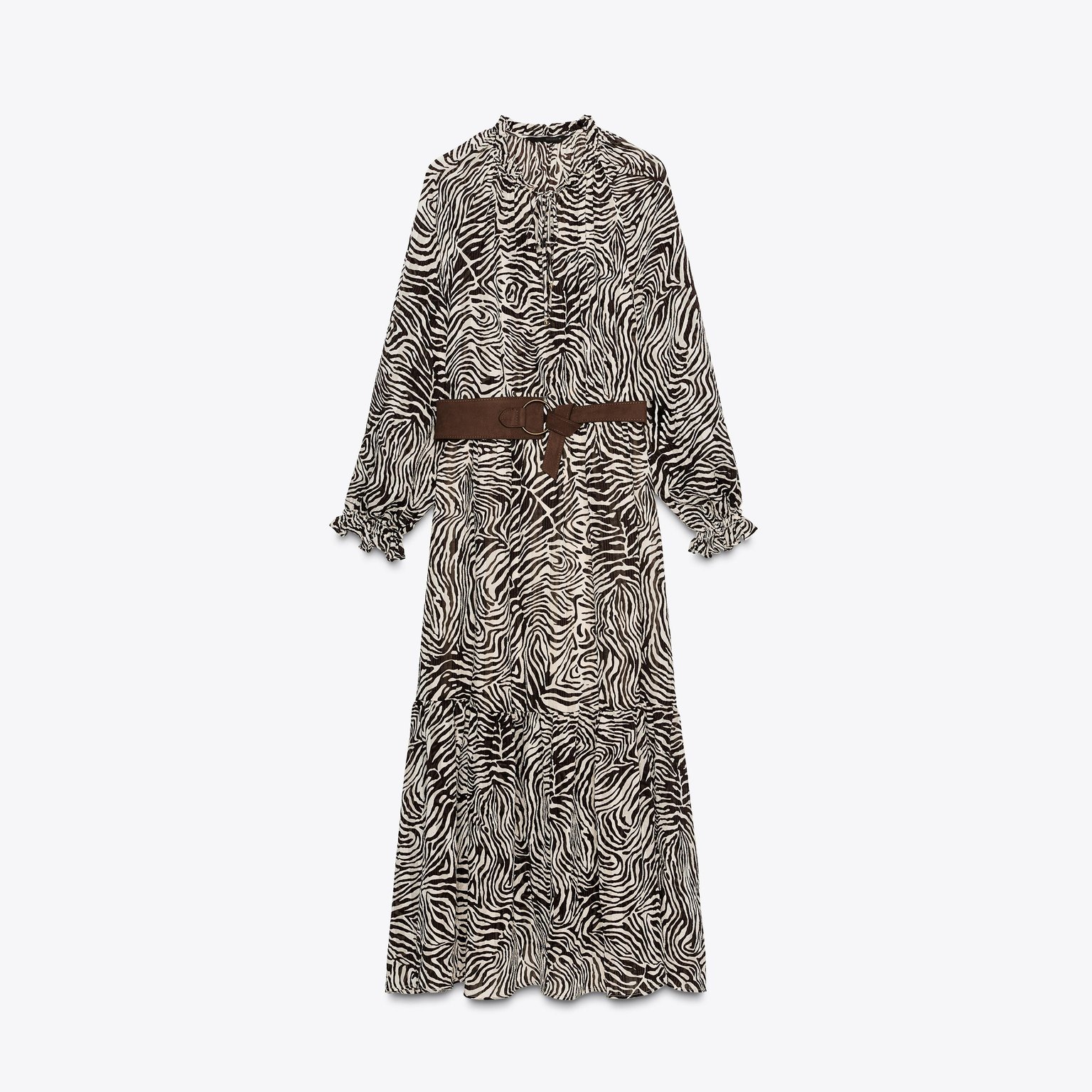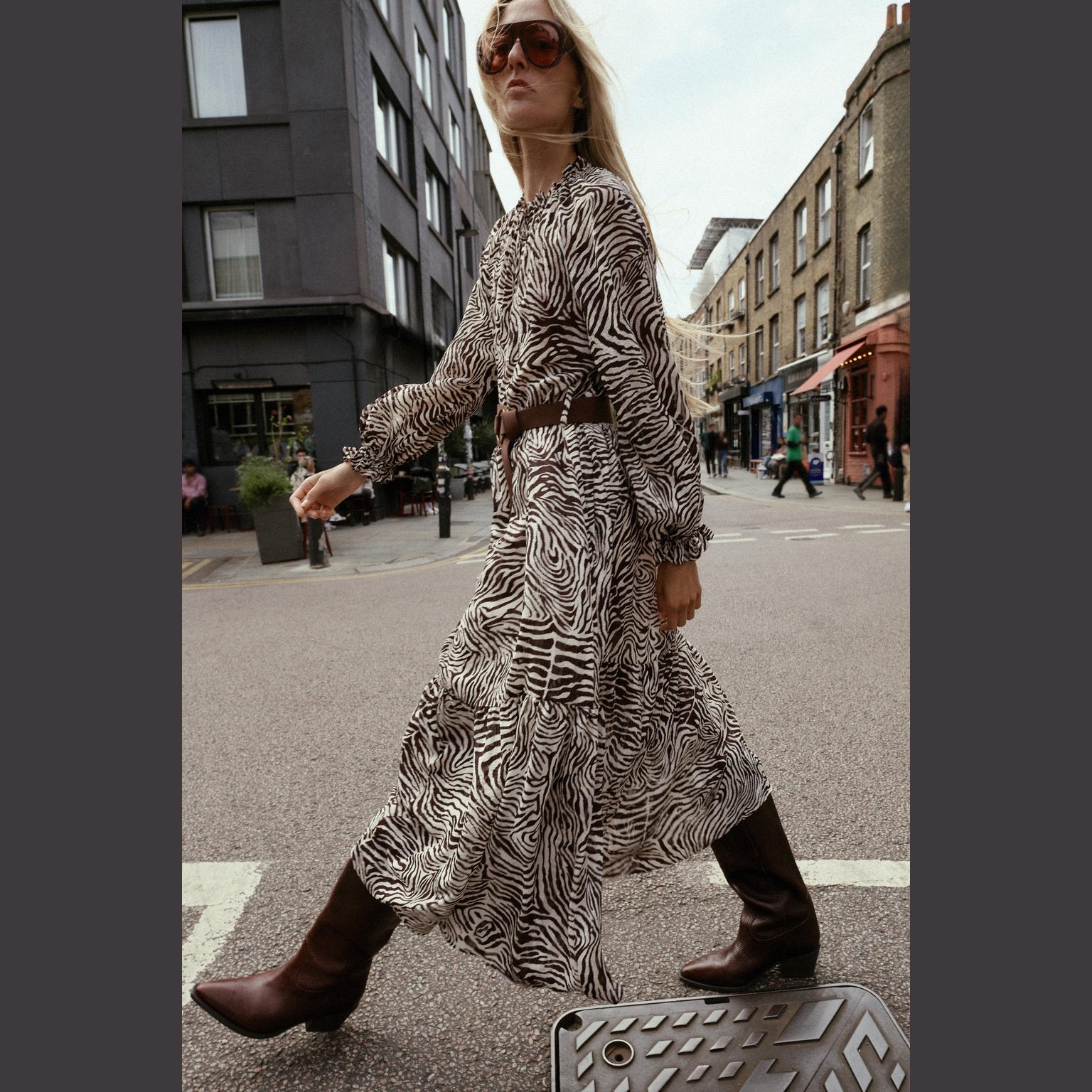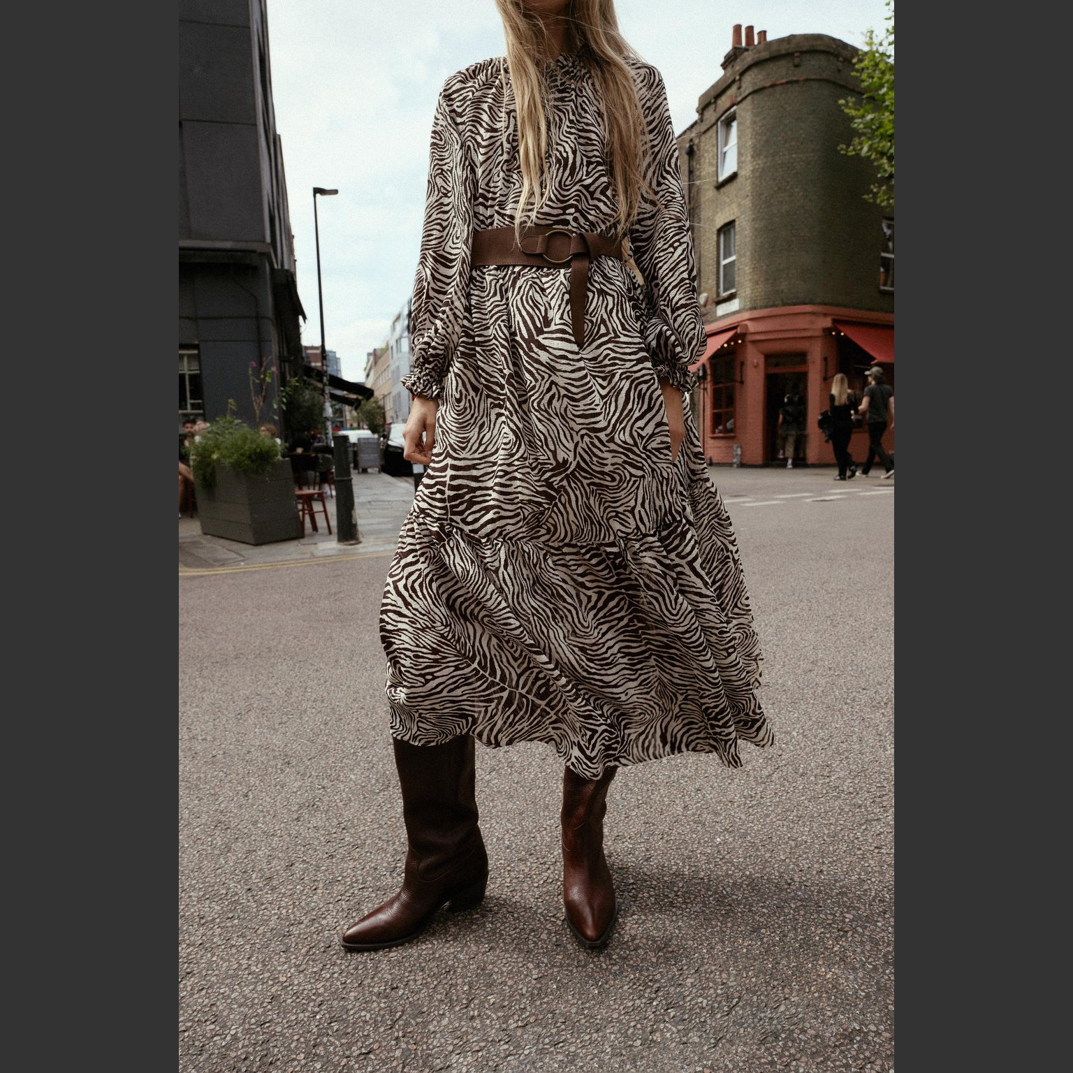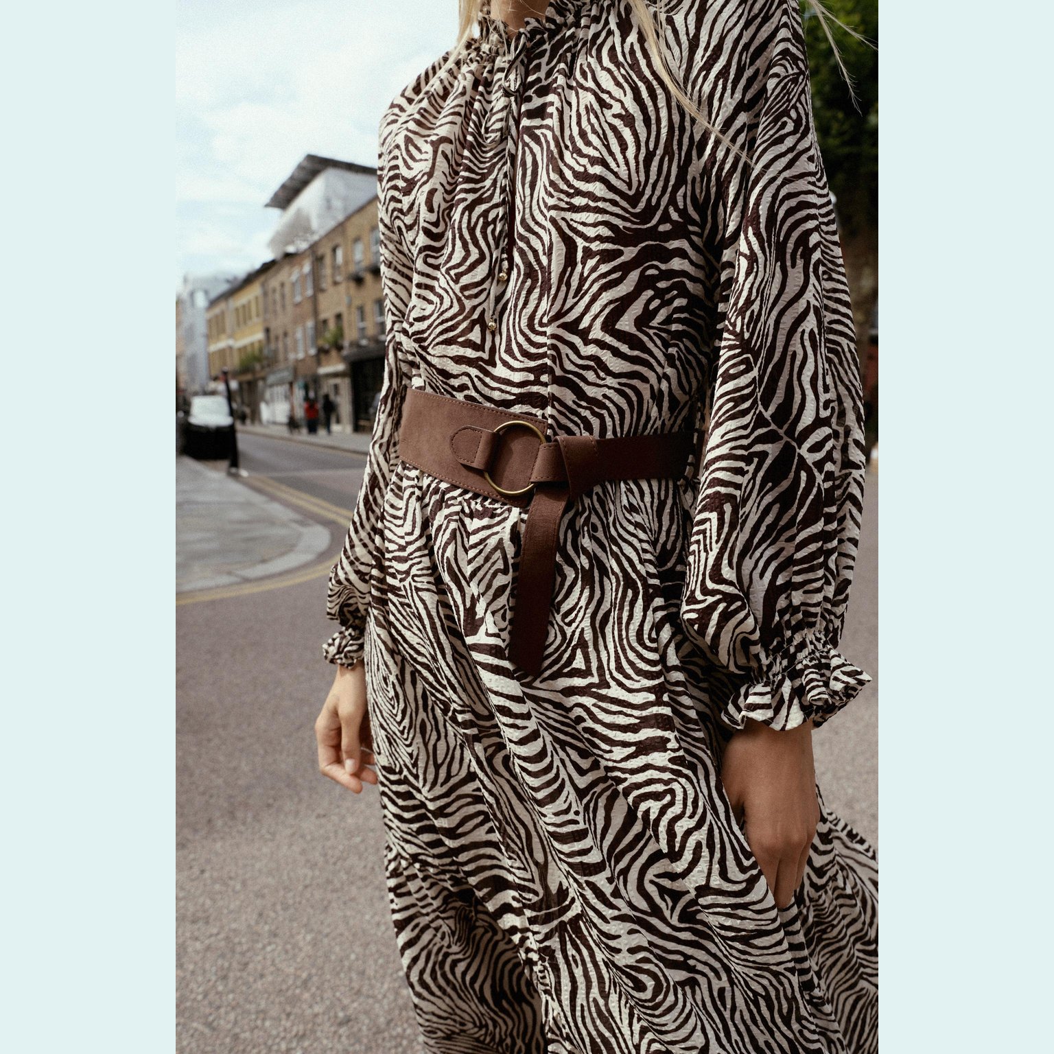 - تصميم ميدي أنثوي أنيق بنقشة زِبرا مميزة