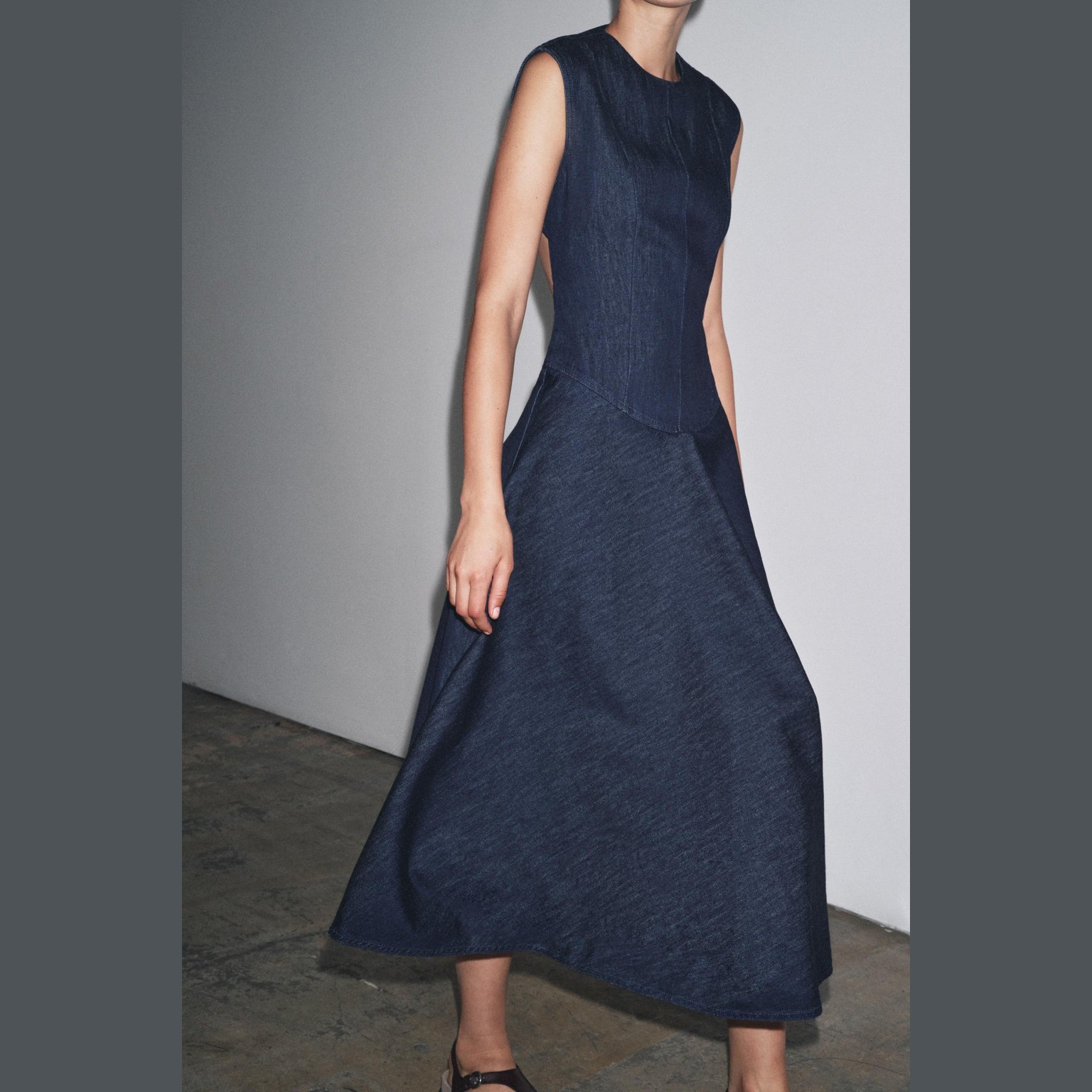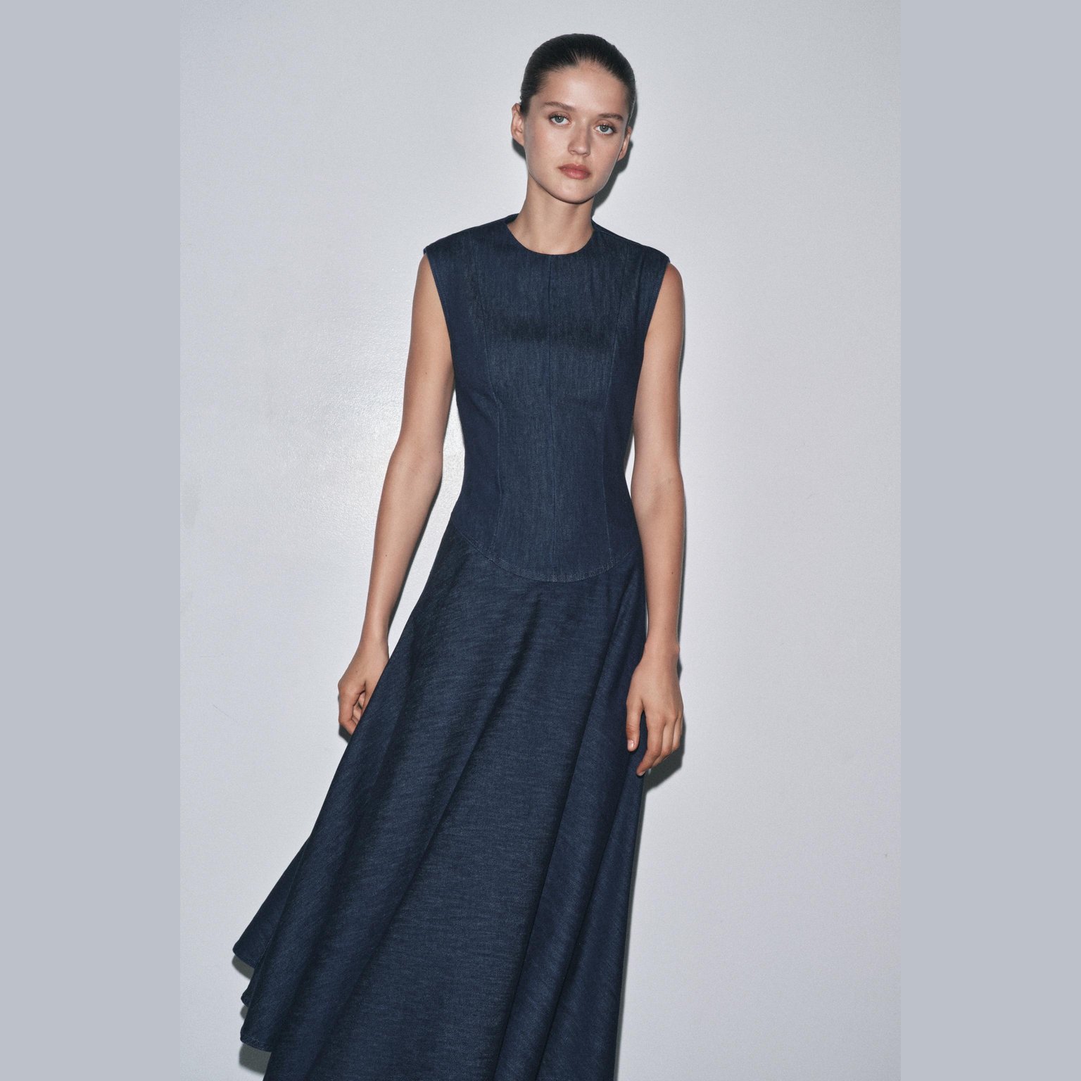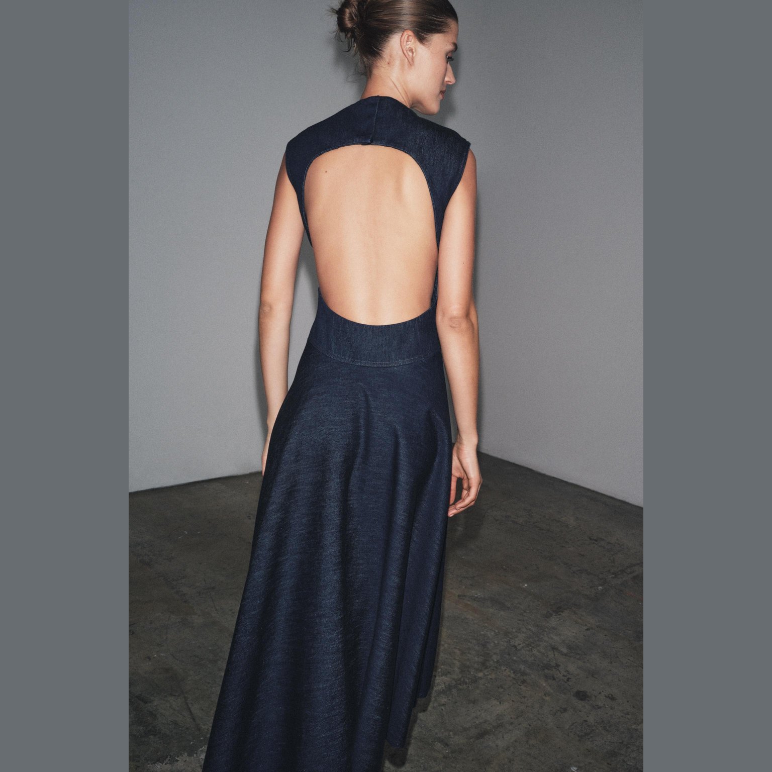 - التصميم: فستان ميدي دنيم (Denim Midi Dress – ZW Collection)