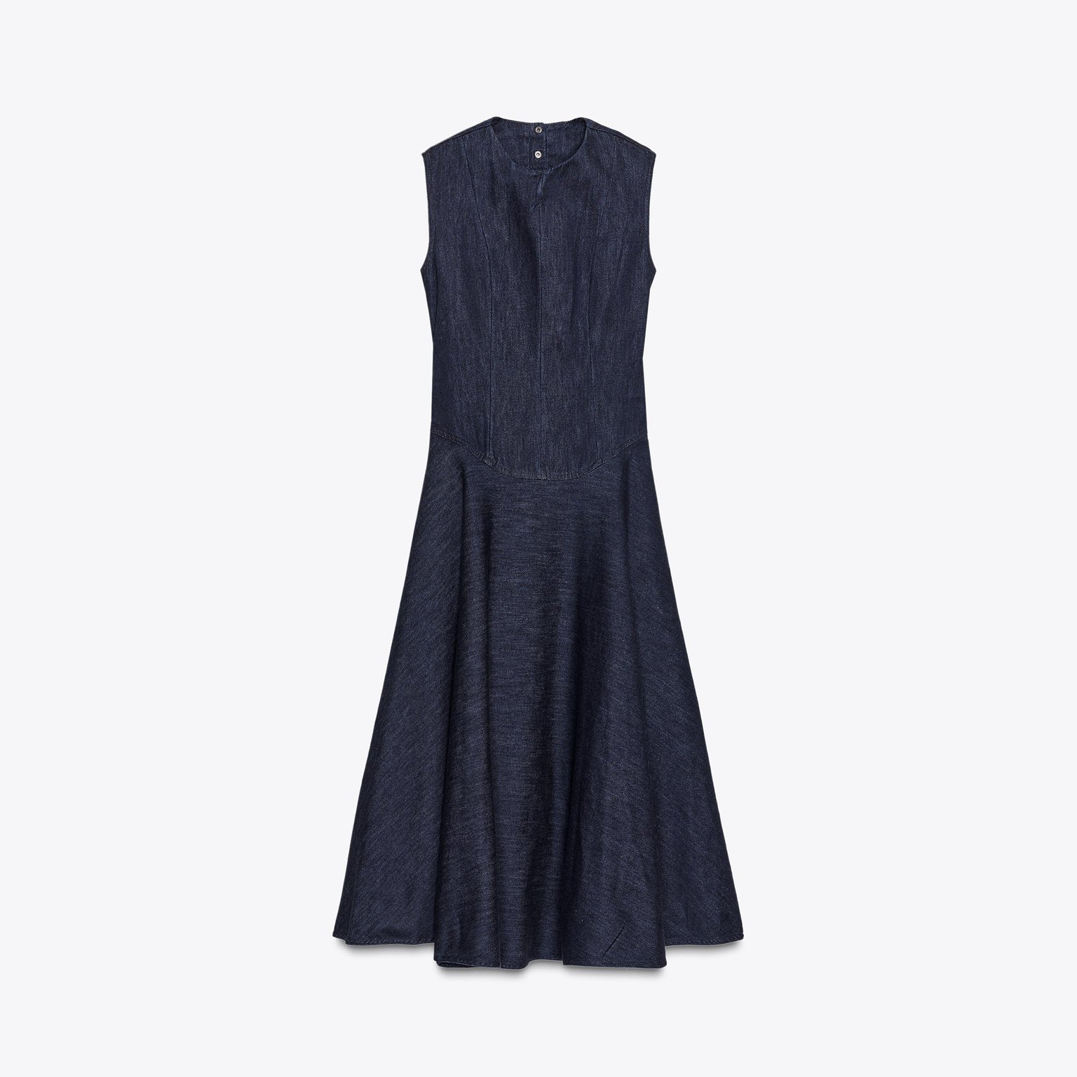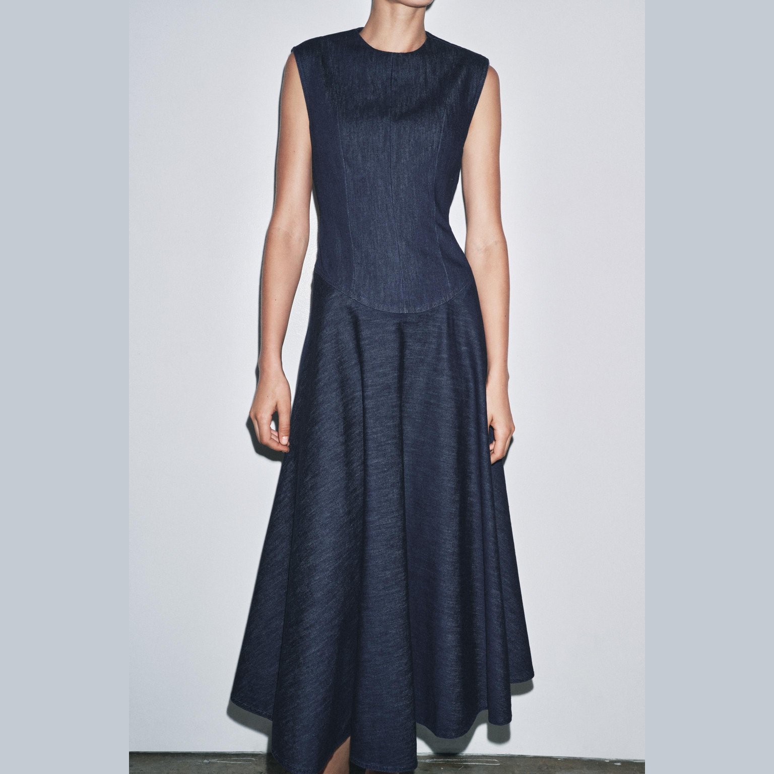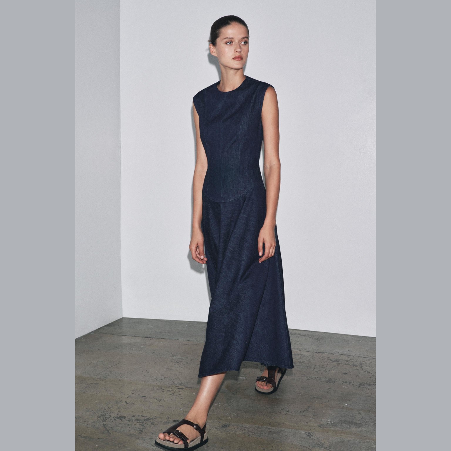 - التصميم: فستان ميدي دنيم (Denim Midi Dress – ZW Collection)